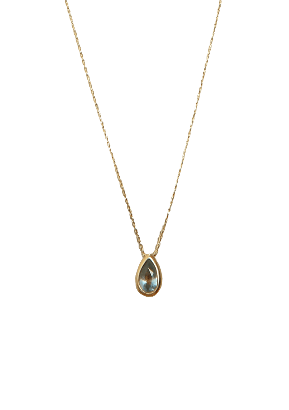 - Ouro amarelo 18k, contendo 1 agua marinha de lapidação gota facetada, cravada à inglesa, peso estimado em aprox. 0.12ct, cor azul médio, grau de pureza SI. Fecho tipo mosquetão;