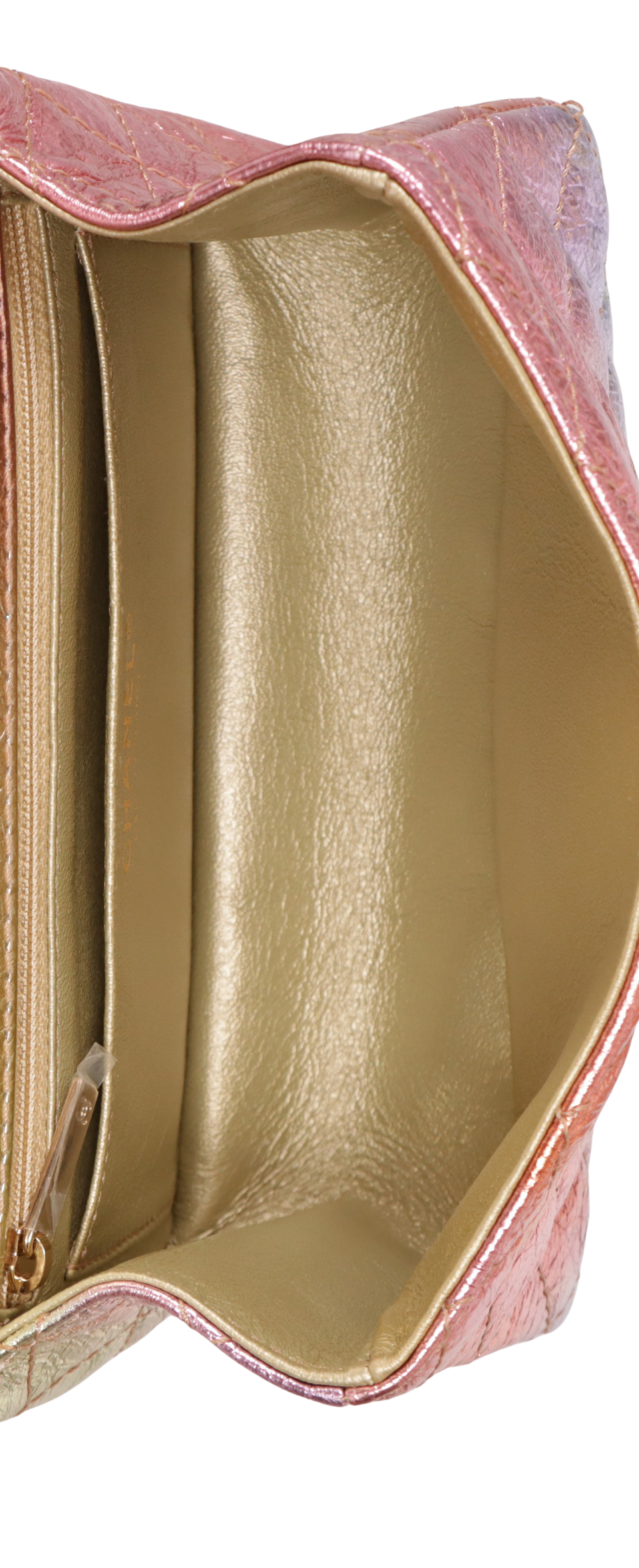 Descrição do Material: Couro lambskin rosa com detalhes em cores variadas e acabamentos craquelado e matelassê