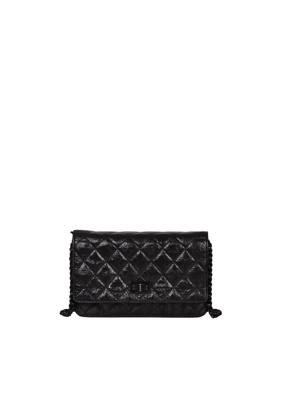 Descrição do Material: Couro lambskin cinza com acabamentos craquelado e matelassê