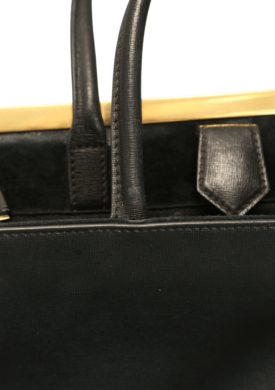Condição: Bom, com aparência de usado. Apresenta deformidade na parte frontal, alças descascando, riscos nas ferragens e pequenas manchas esbranquiçadas no suede interno.