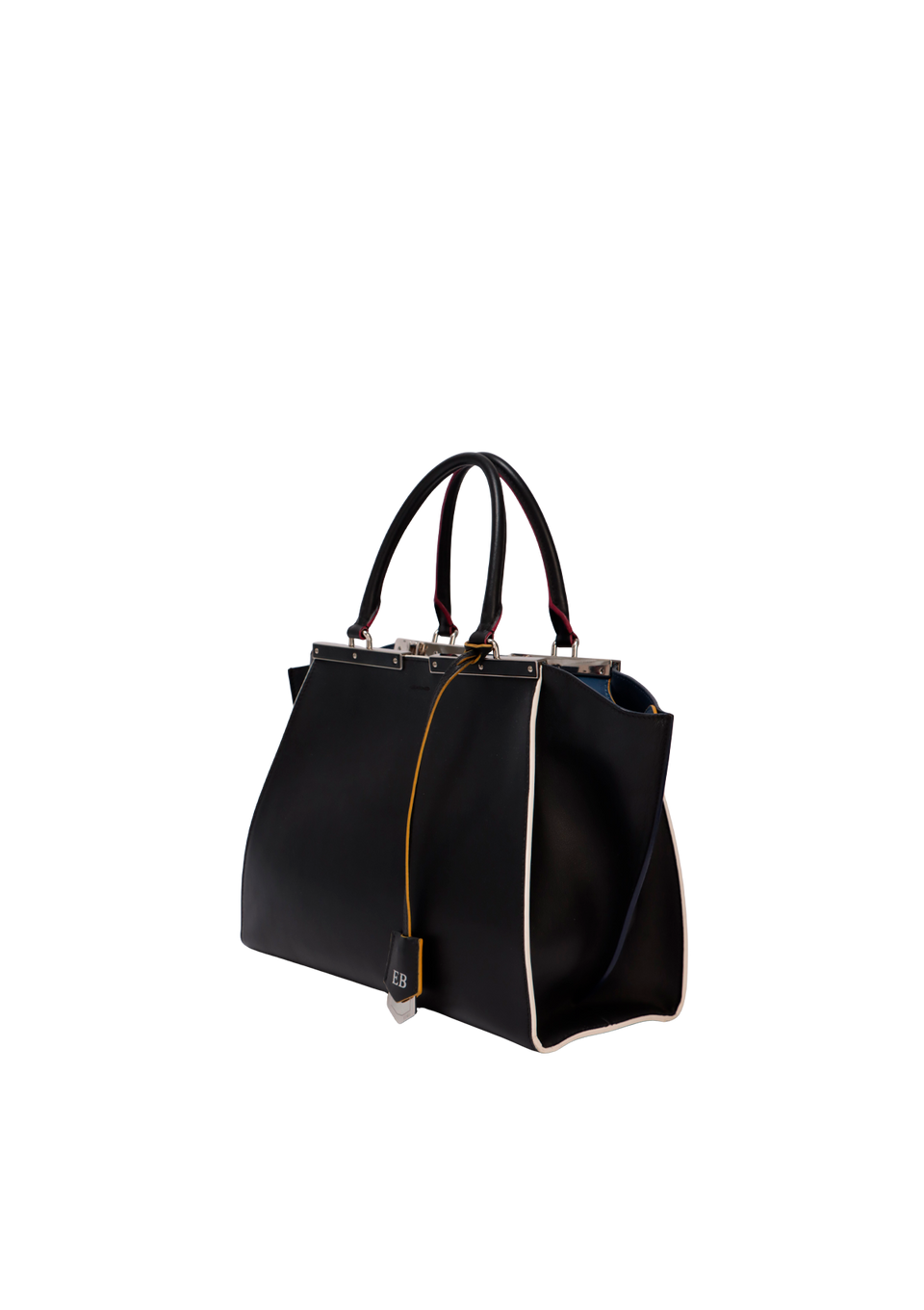 Descrição do Material: Couro calfskin preto com detalhes em azul, rosa, off white, vermelho e amarelo