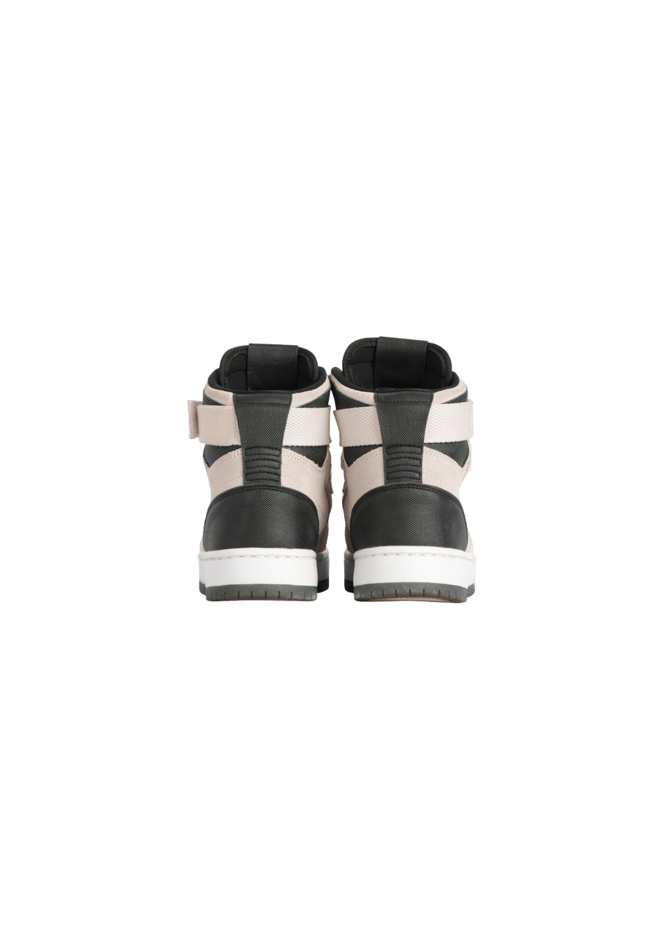 - Camurça rosa claro, tecido preto e borracha cinza e branca;