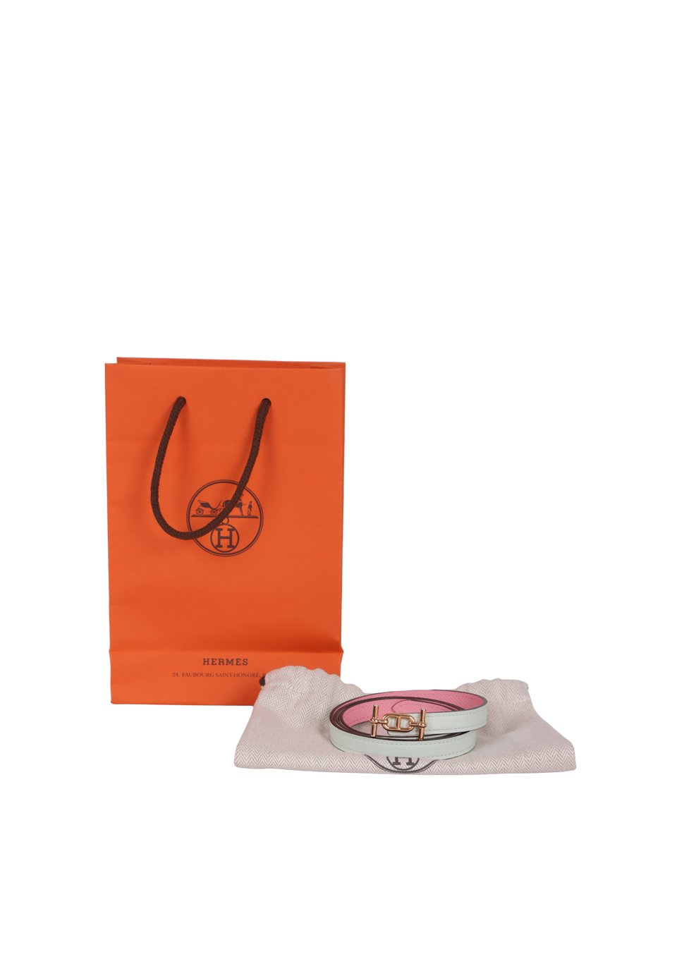 Descrição do Material: Couro Swift verde e couro Epsom rosa