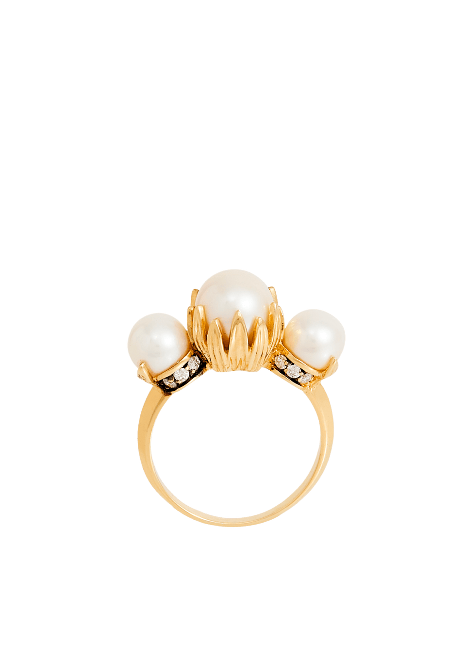 Descrição do Material: Ouro 18K amarelo com três pérolas e diamantes