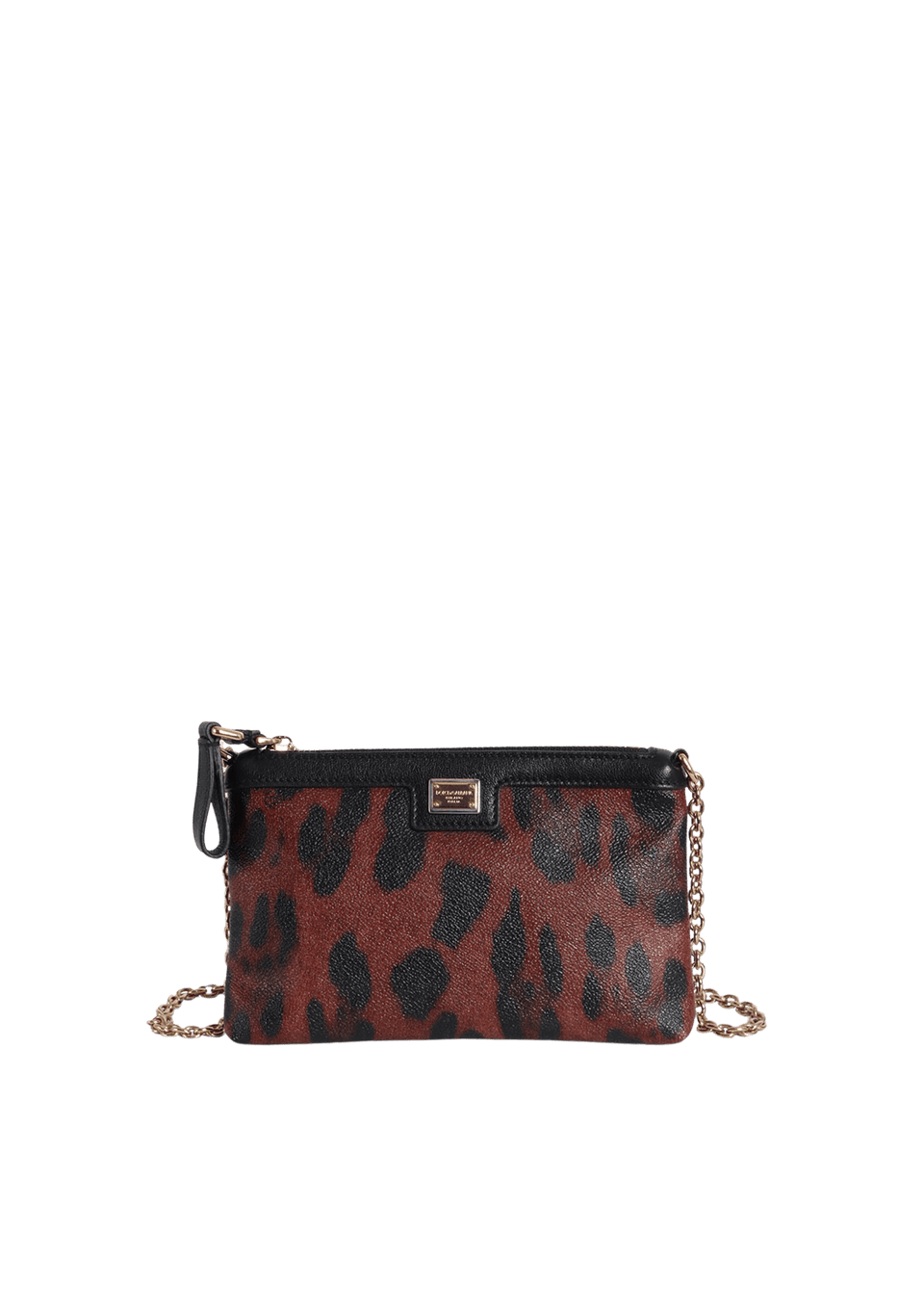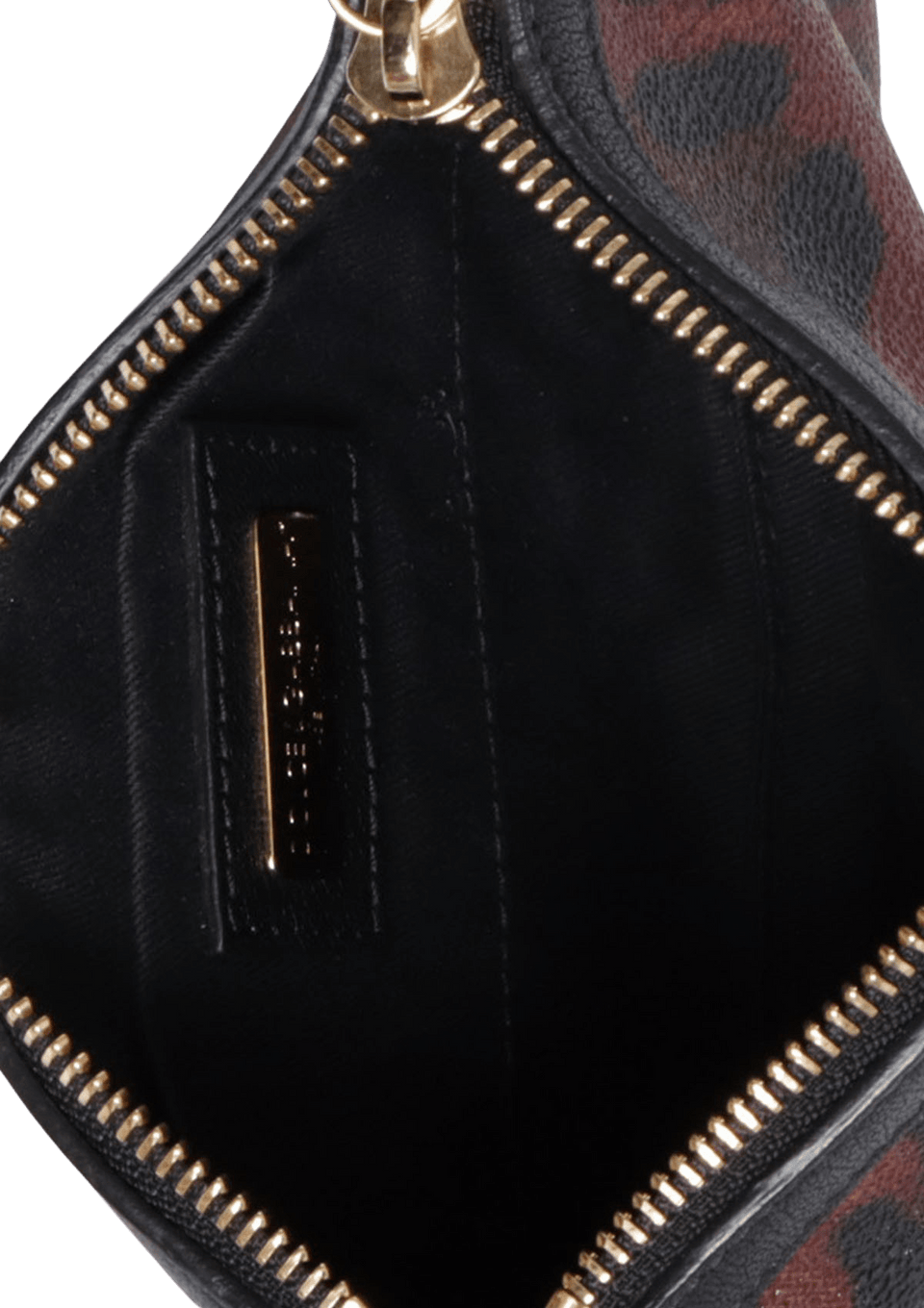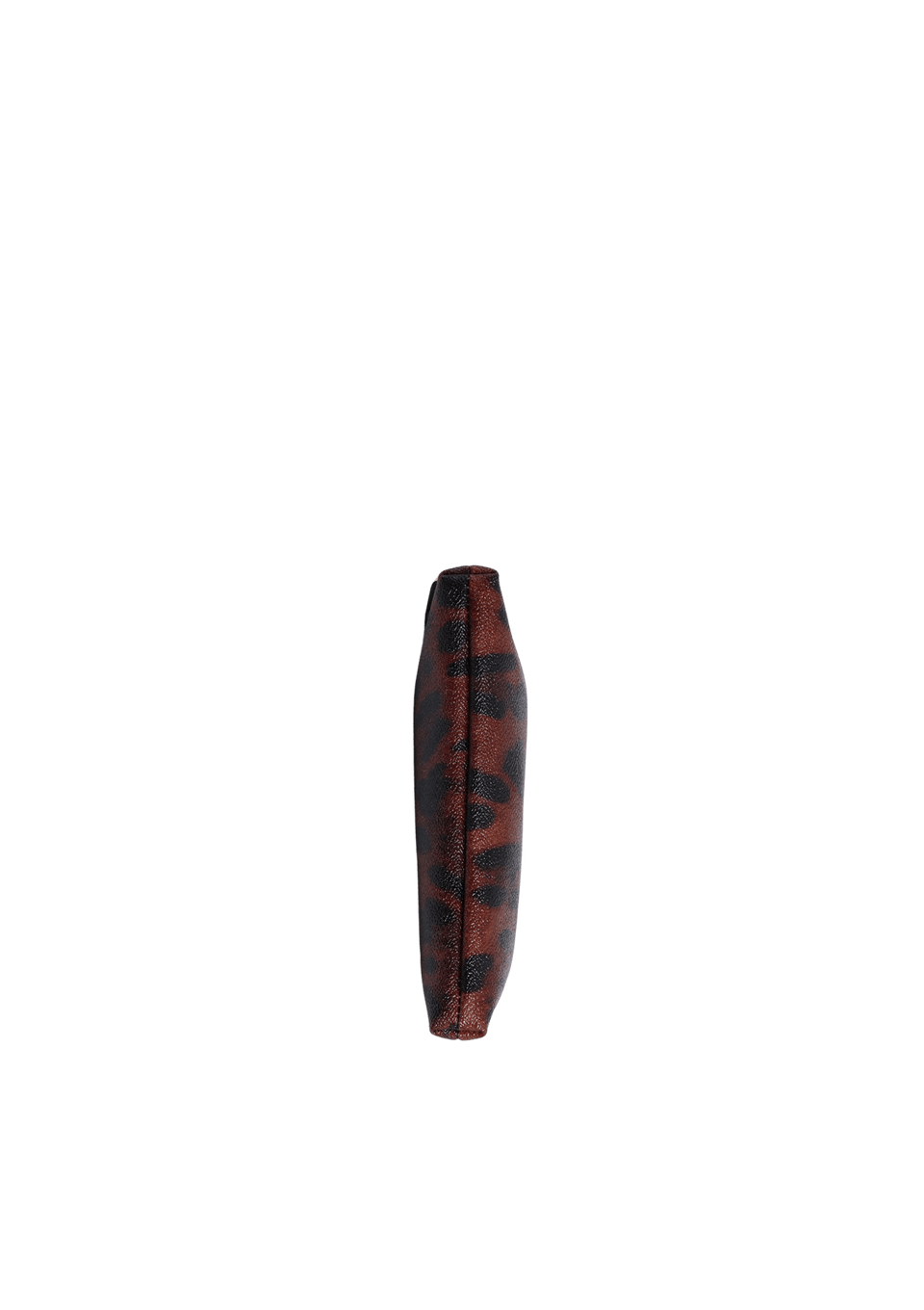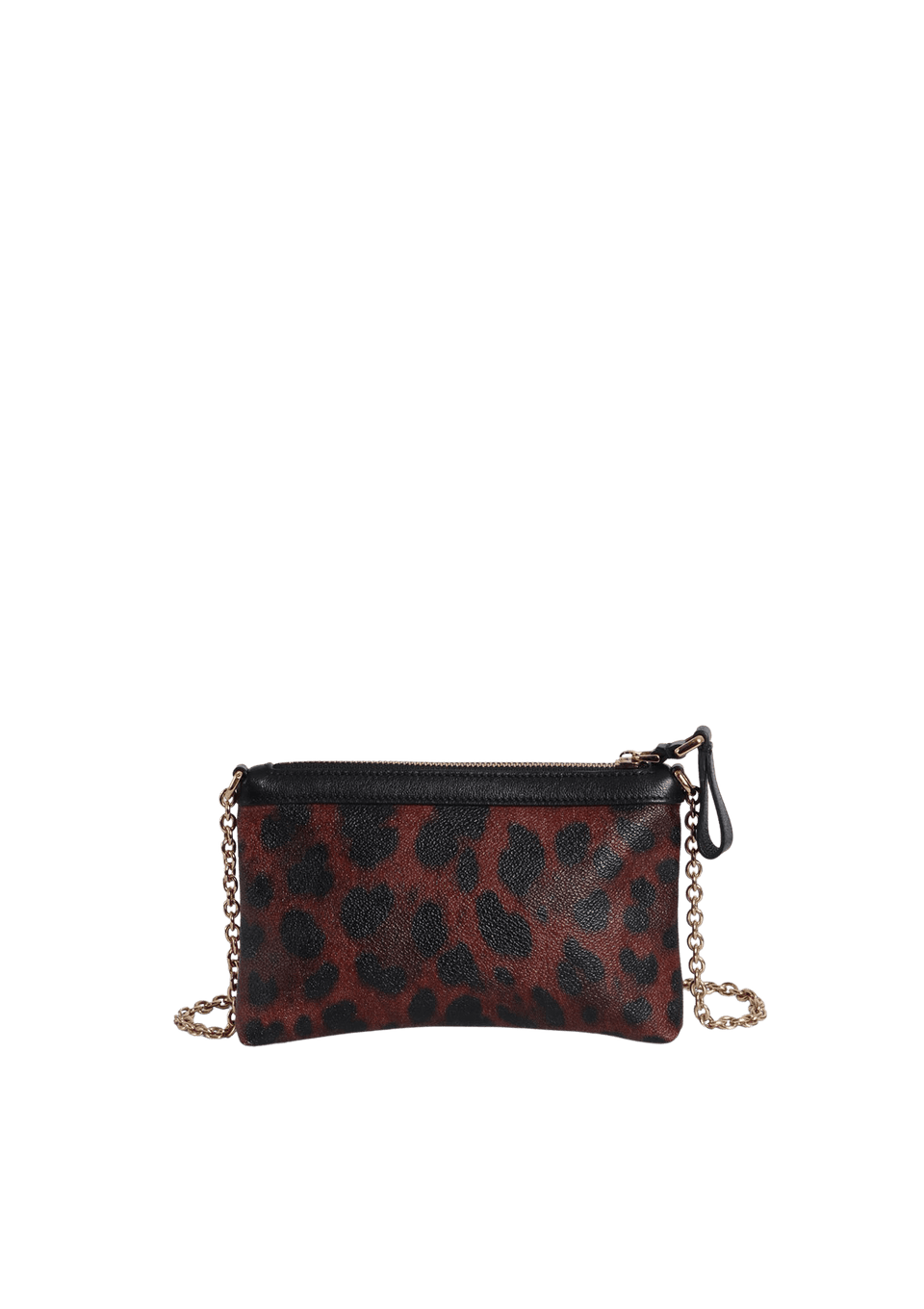 - Canvas com estampa animal print marrom e detalhes em couro calfskin preto;