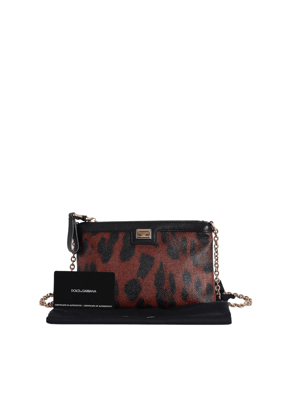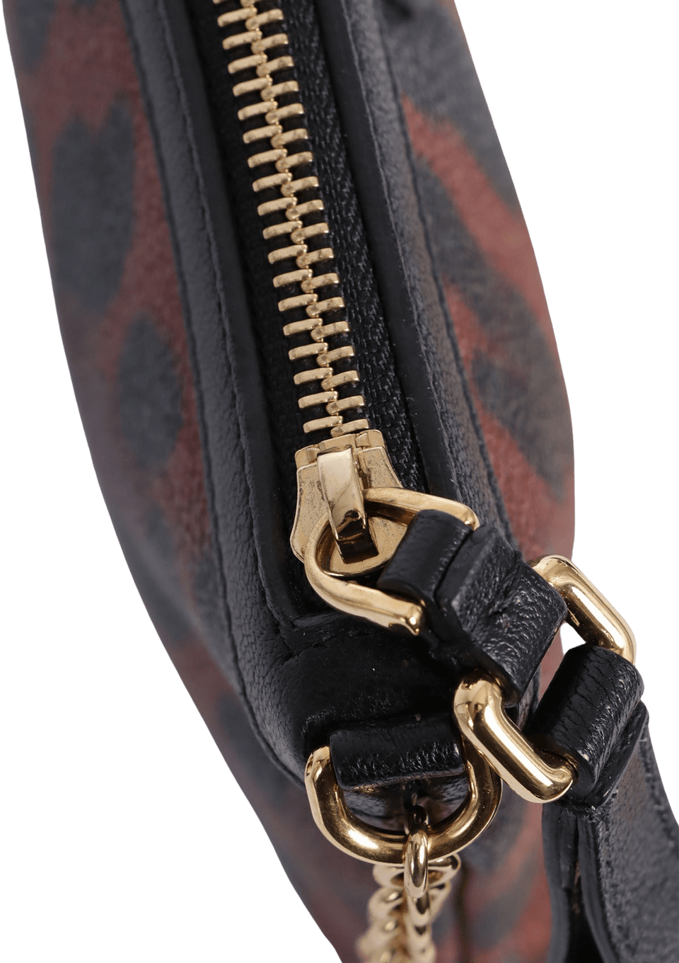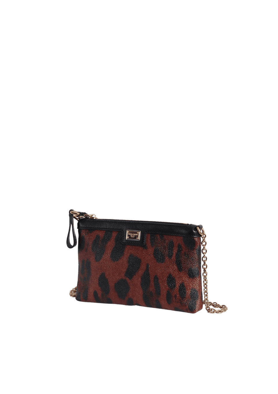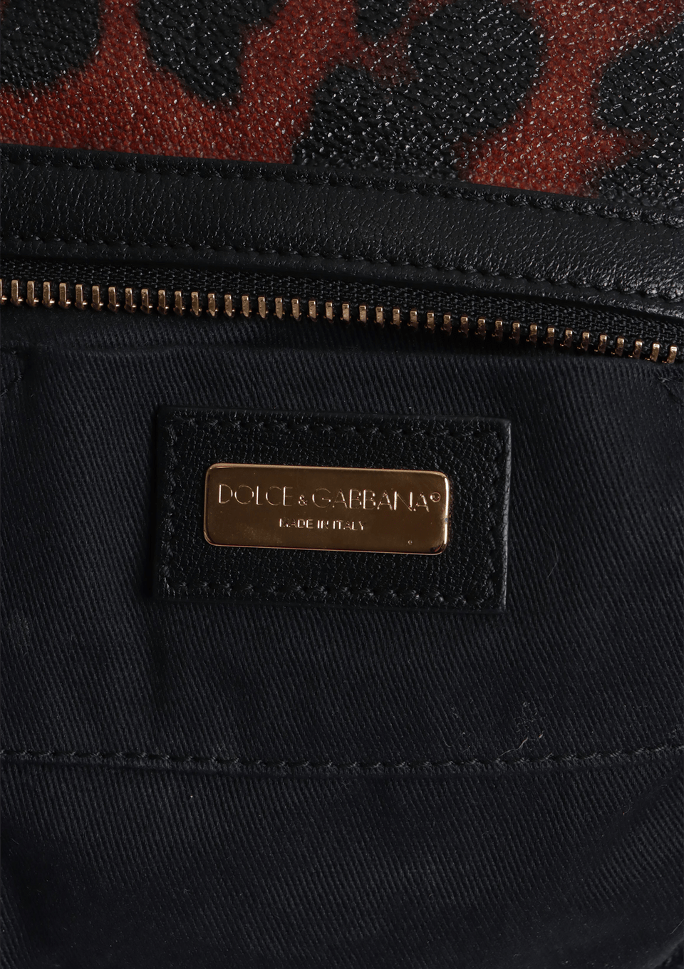 - Canvas com estampa animal print marrom e detalhes em couro calfskin preto;