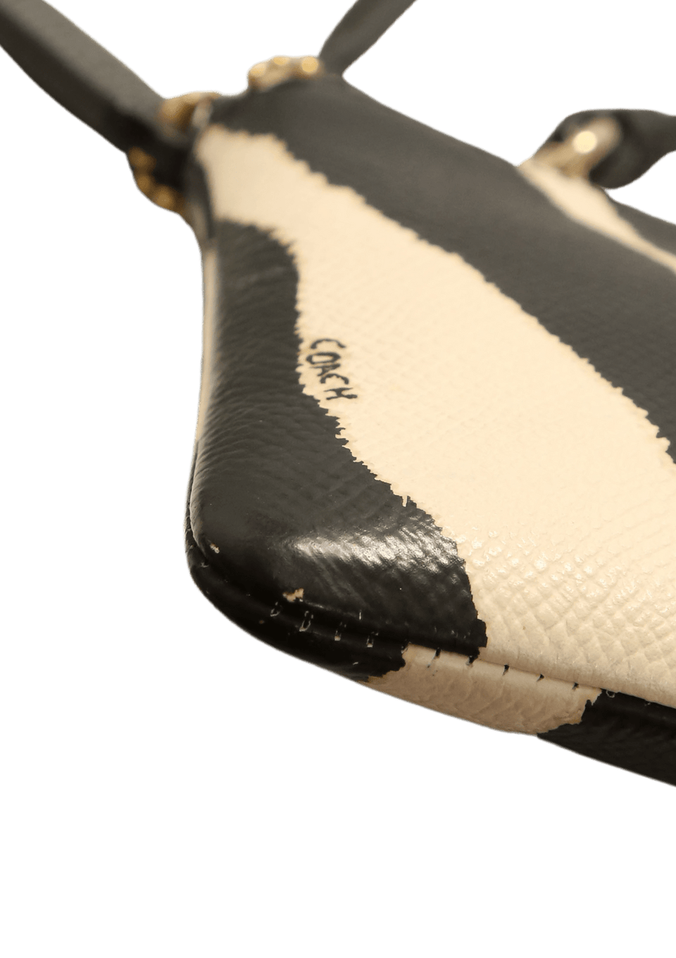 - Canvas estampado e couro preto;