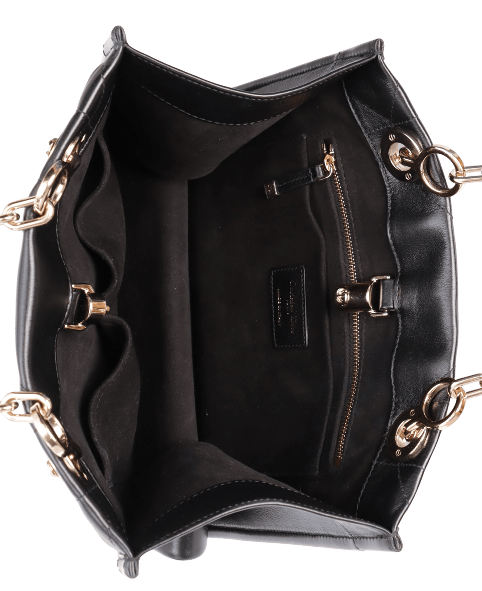 Descrição do Material: Couro calfskin nappa preto com acabamento matelassê