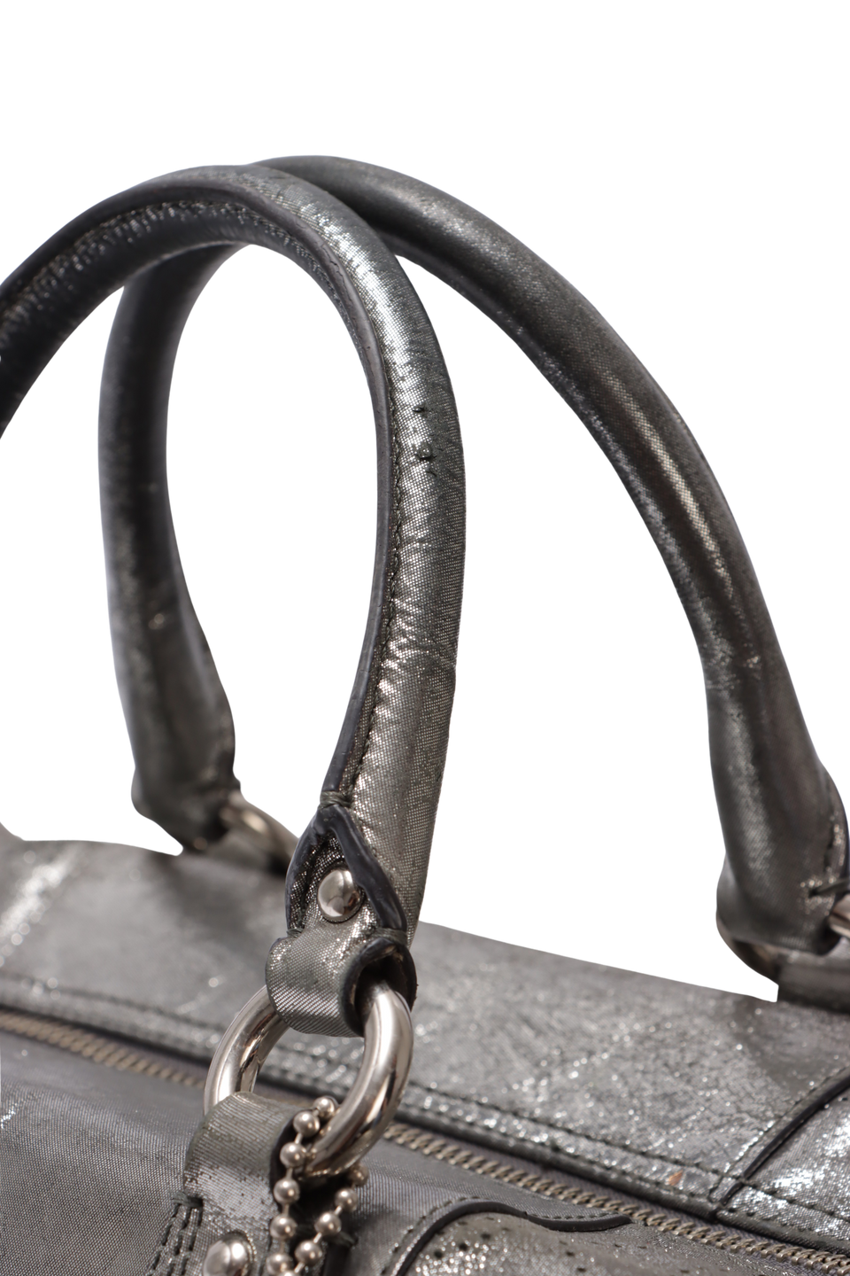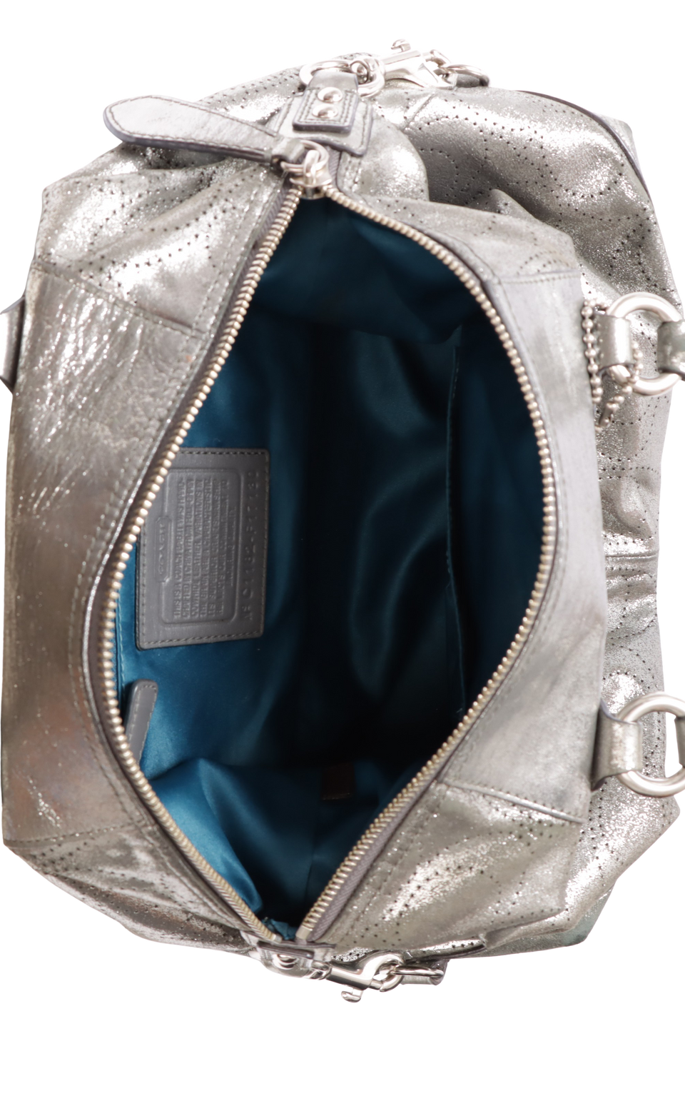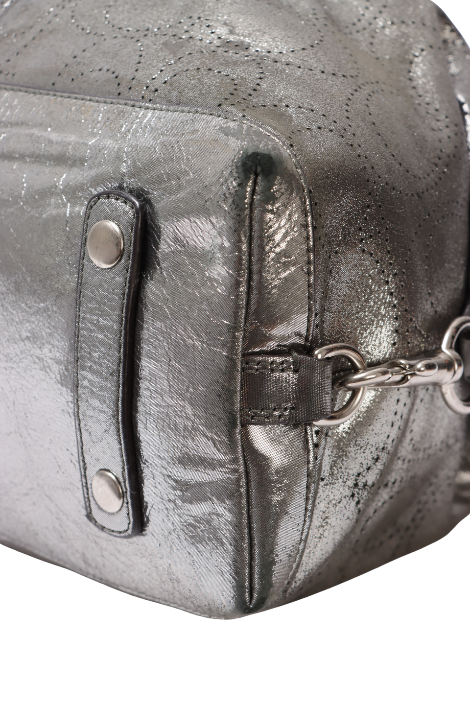 Bom, com aparência de usado. Apresenta leves desgastes, marcas de uso, perda de brilho e material pelo tecido, especialmente nas alças, na parte frontal inferior e nas extremidades inferiores, pequenas fissuras e desgastes nas selagens, principalmente nos acabamentos das alças, leves marcas de uso e descolorações nas ferragens, pequenas manchas nos acabamentos superiores e nas laterais inferiores, pequenos desgastes nos acabamentos do cursor e leves desgastes e manchas no forro, especialmente nos acabamentos superiores.