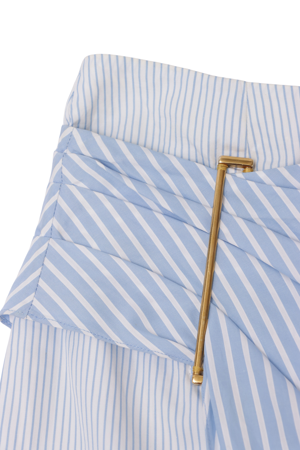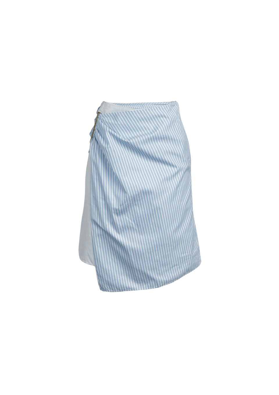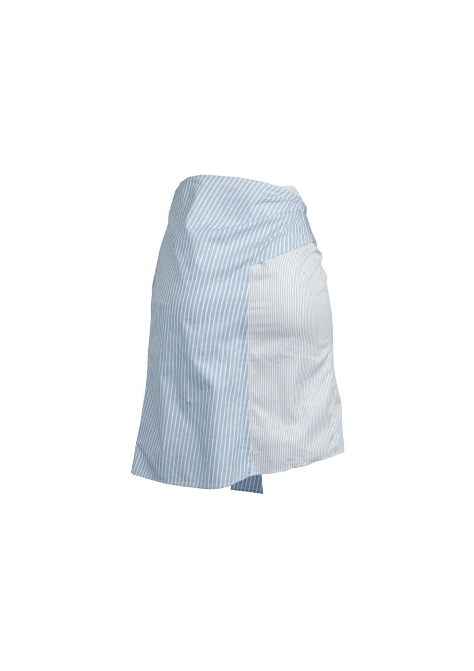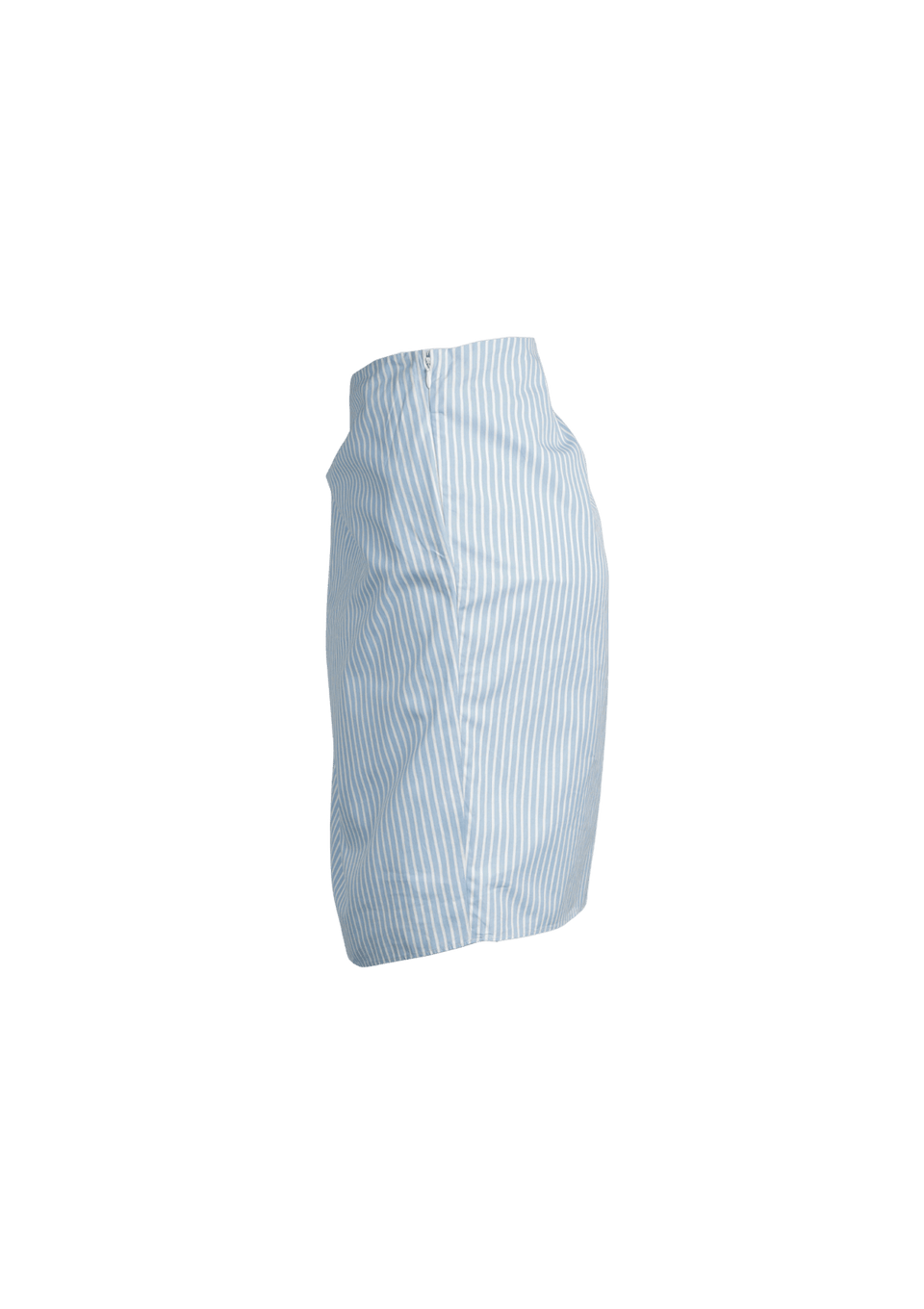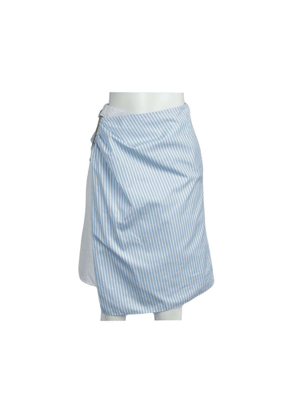 Descrição do Material: Tecido azul com padronagem listrada branca