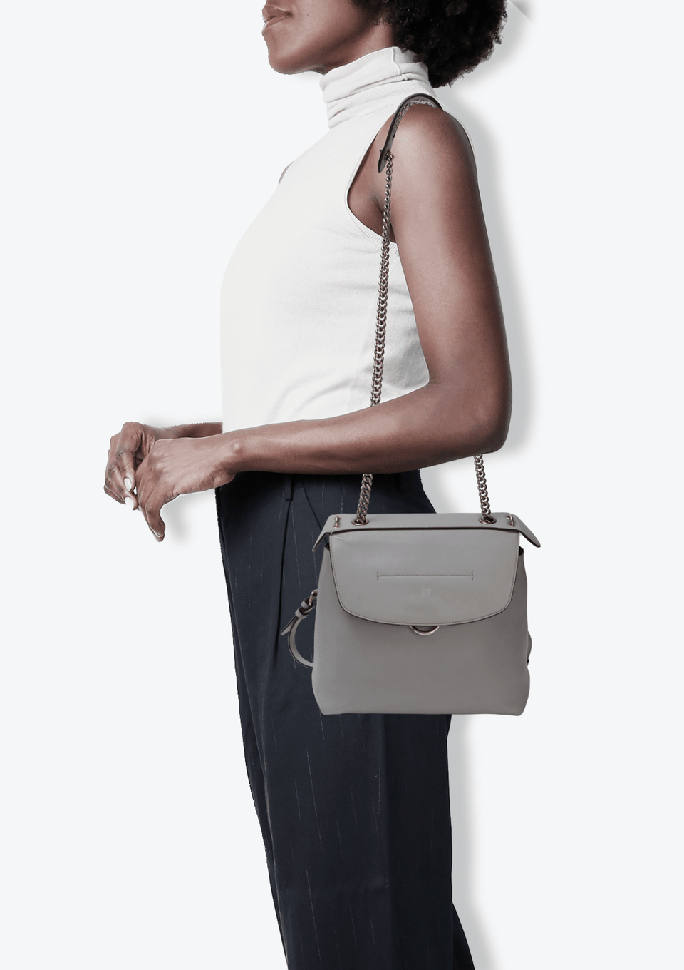 Descrição do Material: Couro calfskin cinza