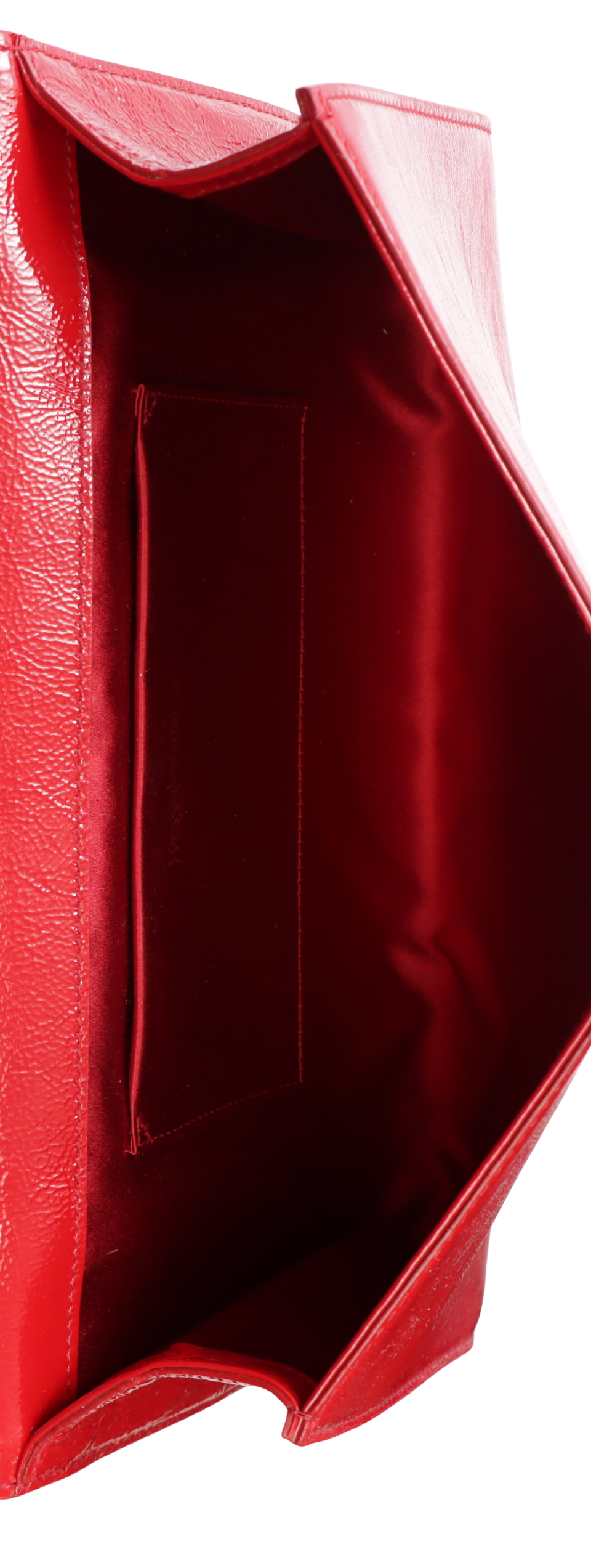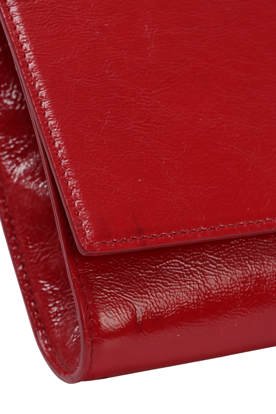 Descrição do Material: Couro calfskin vermelho marinho com acabamento envernizado