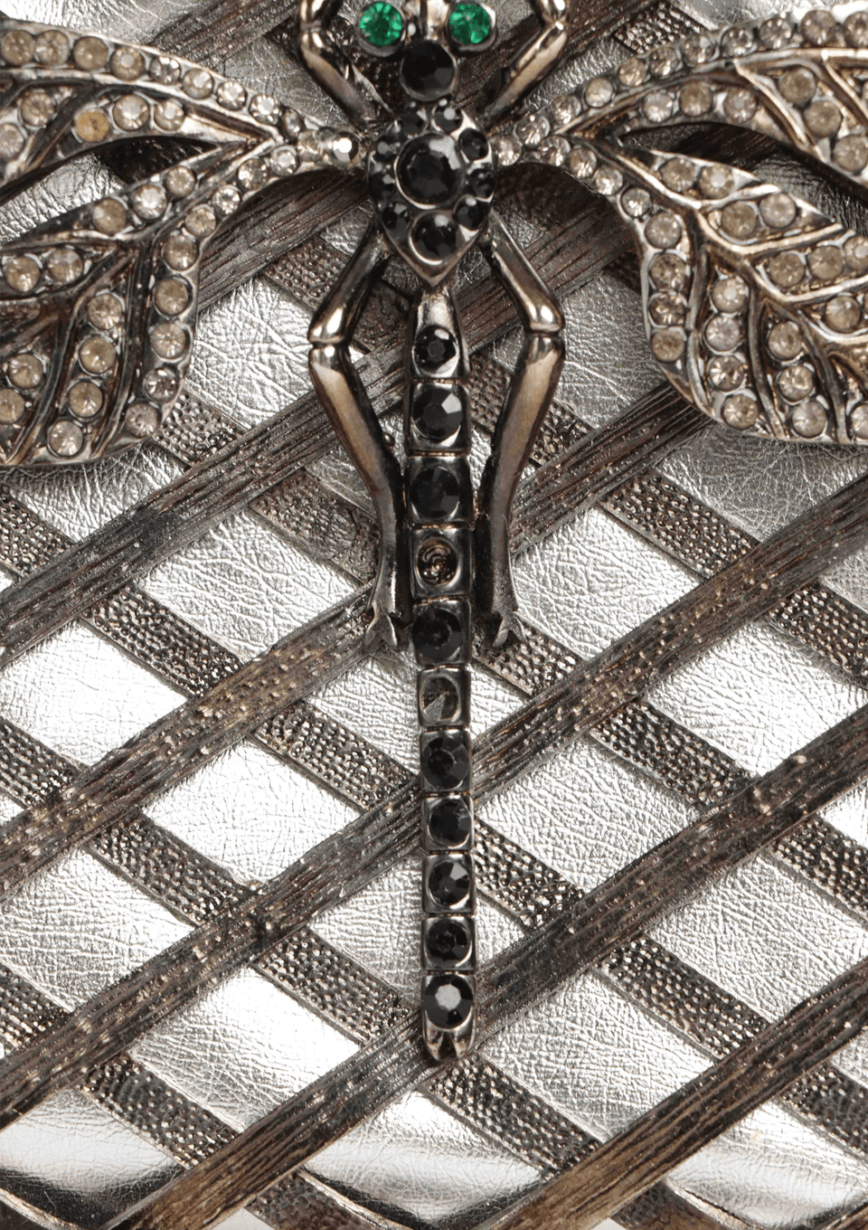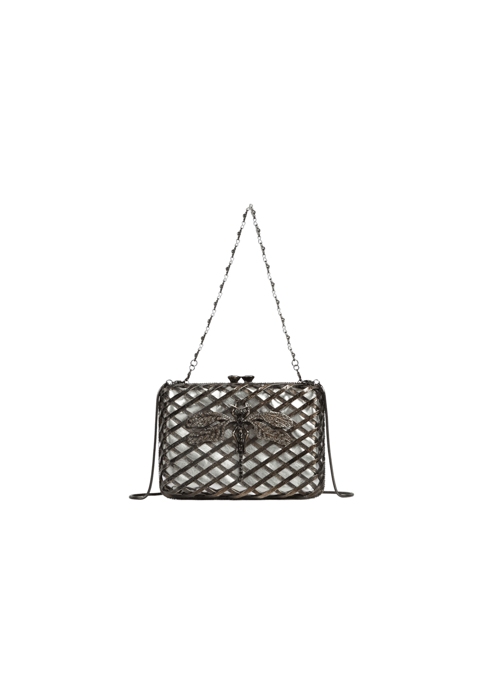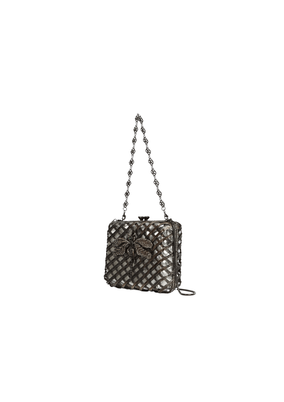 BOLSA CLUTCH METAL TRAMA COM BORBOLETAS EM CRISTAIS