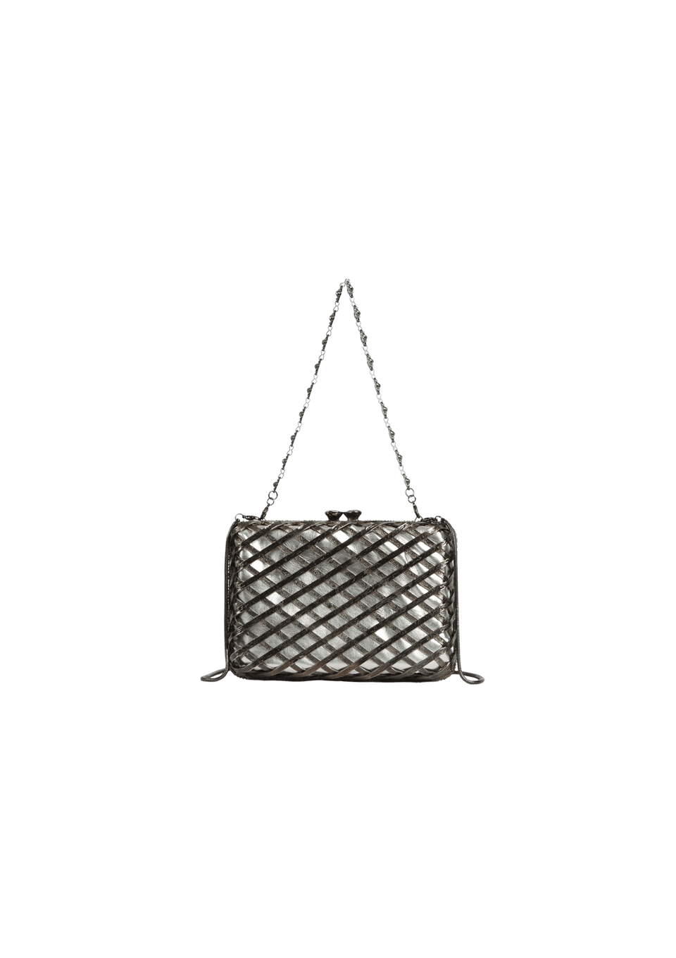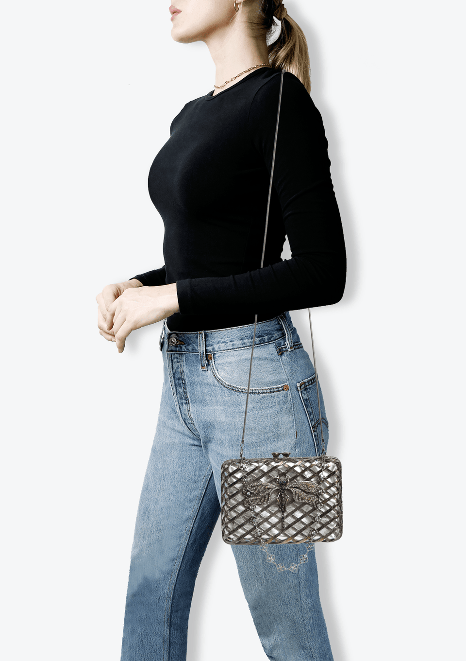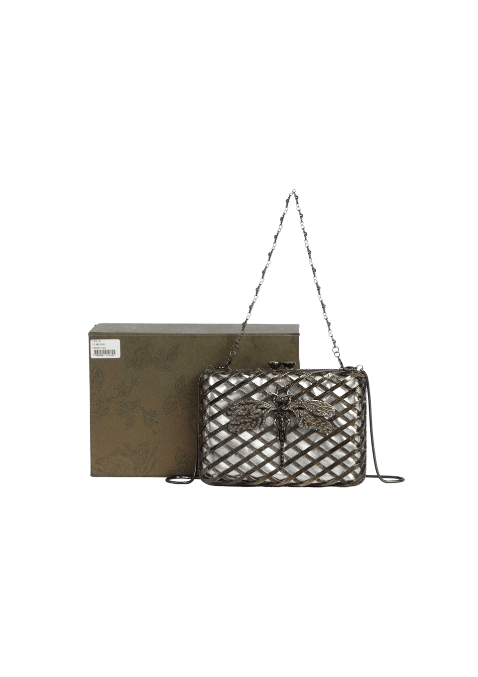 BOLSA CLUTCH METAL TRAMA COM BORBOLETAS EM CRISTAIS