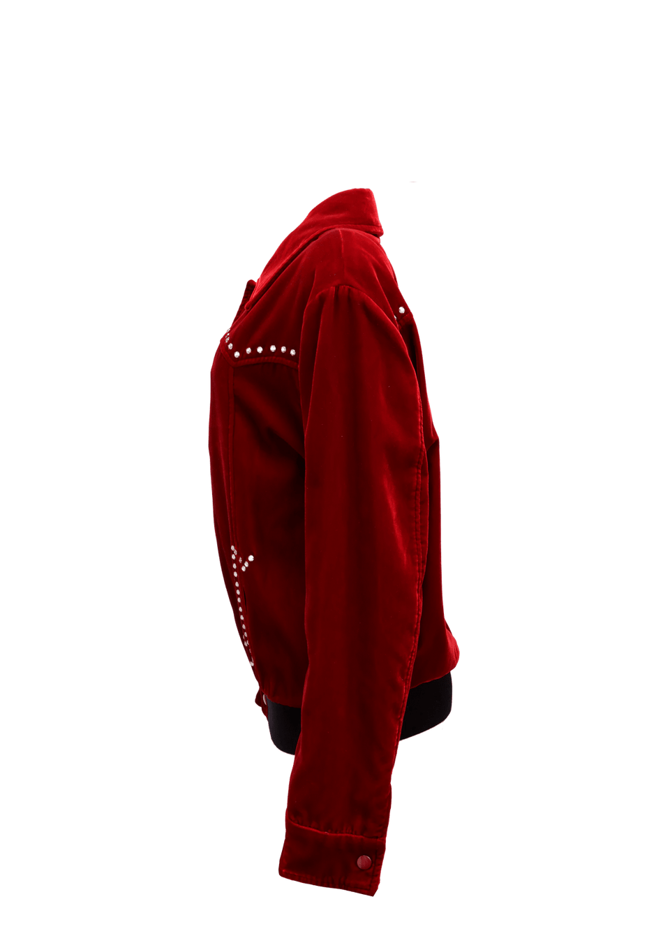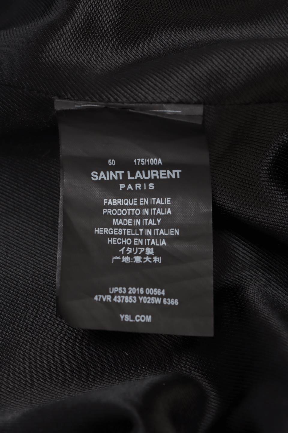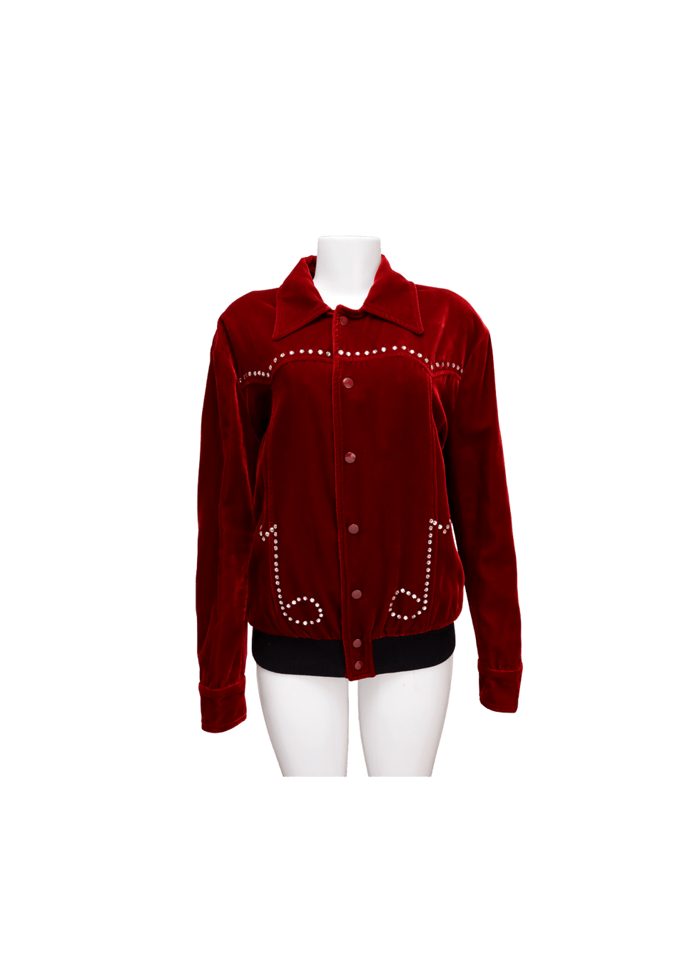 Bom, com aparência de usado. Apresenta perda das aplicações na parte posterior, leves marcas de uso, manchas e desgastes pelo tecido, especialmente na parte frontal do lado direito e nas partes frontais das mangas, pequenos desgastes e manchas na barra e leves fios repuxados no forro.