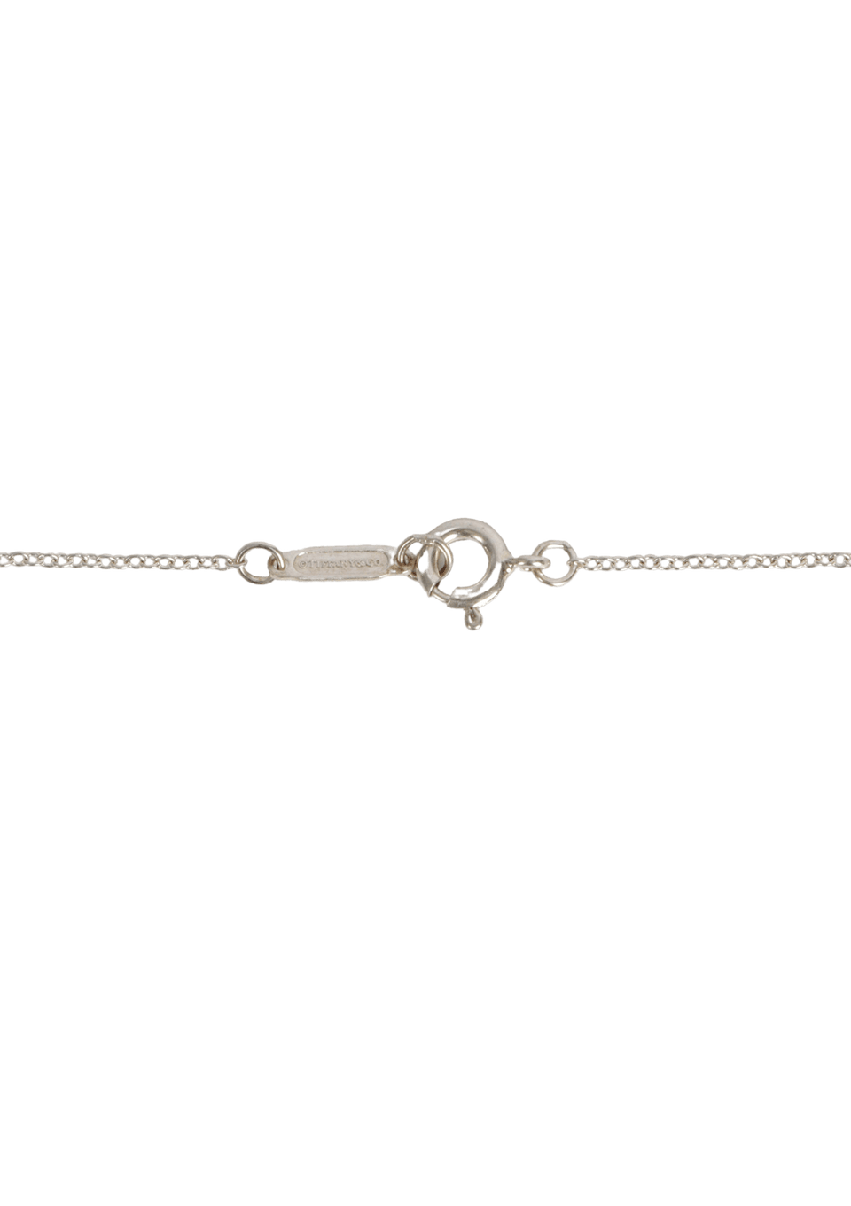 - Marcas e contrastes: tag superior próximo ao fecho contendo de um lado © e a assinatura da marca “Tiffany & Co” e do outro apresenta o teor de metal (Prata) 925, fecho mola contém teor de metal 925. Pendente borboleta apresenta © e a abreviação da marca “T&Co” seguido do teor de metal 925.