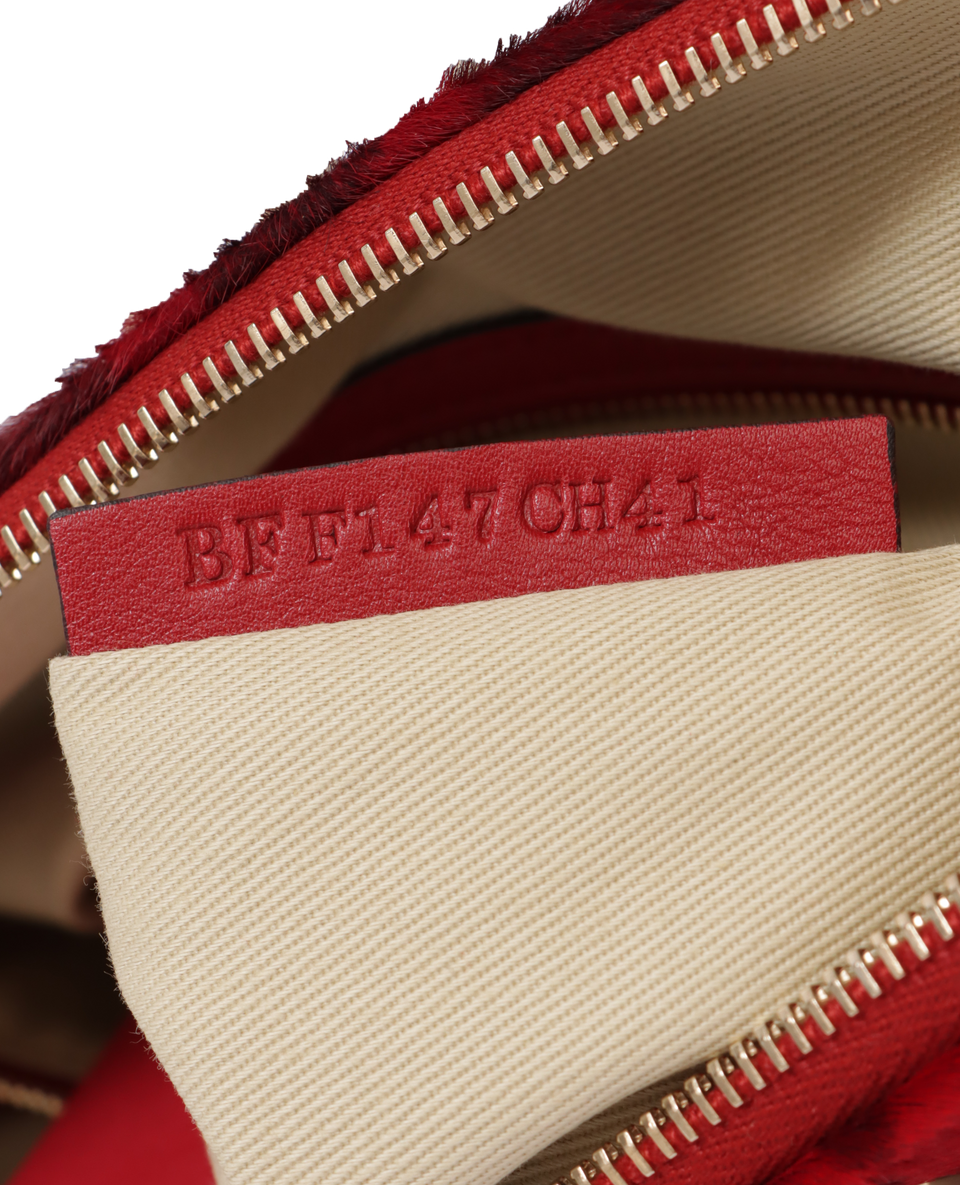 Descrição do Material: Couro calfskin vermelho revestido por pony hair com padronagem animal print