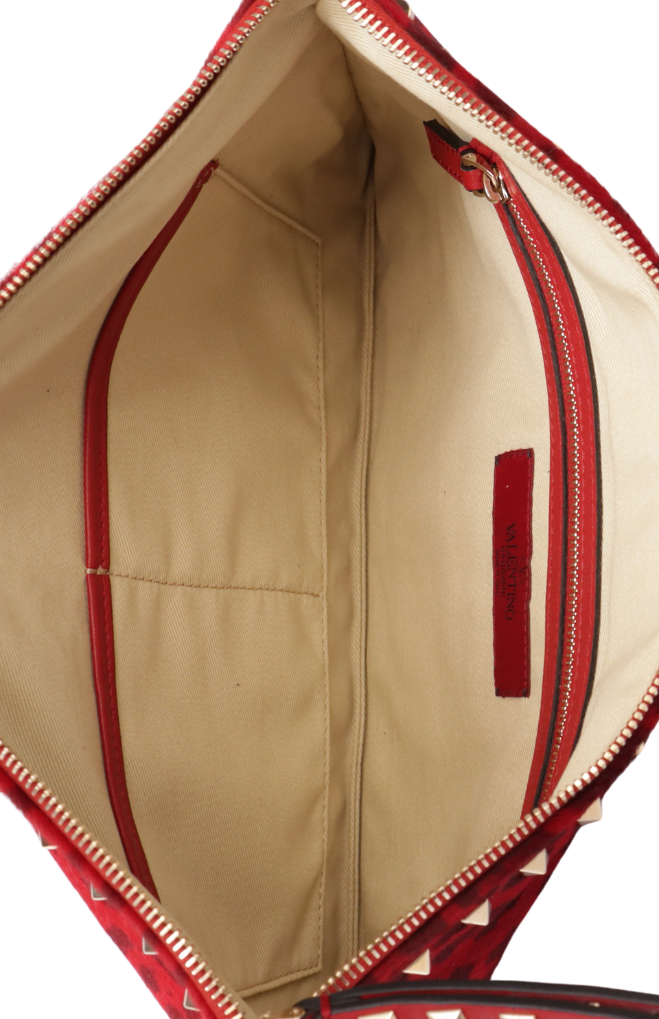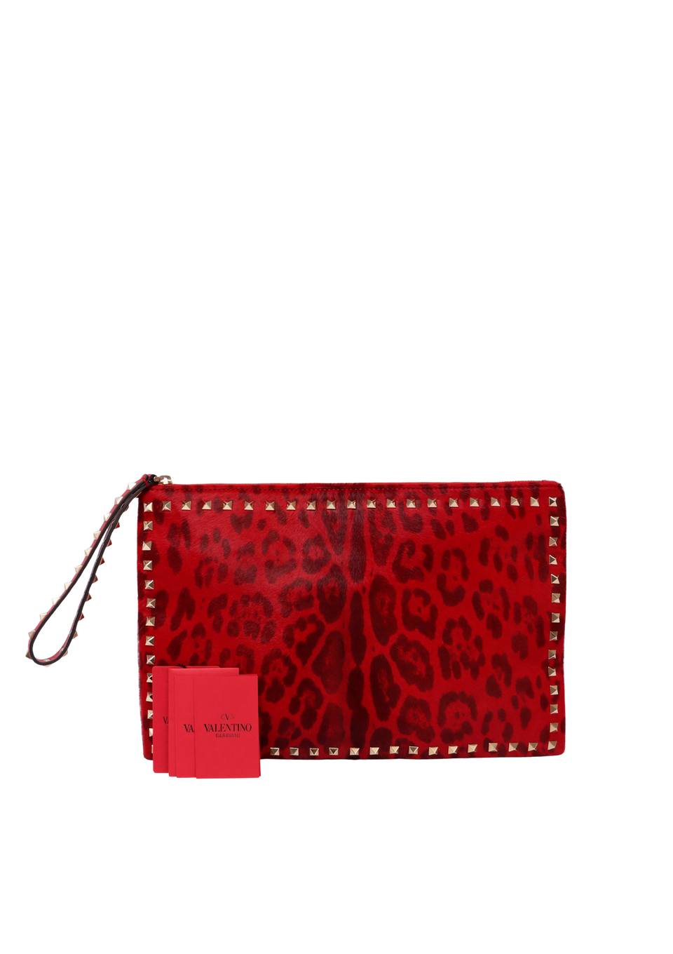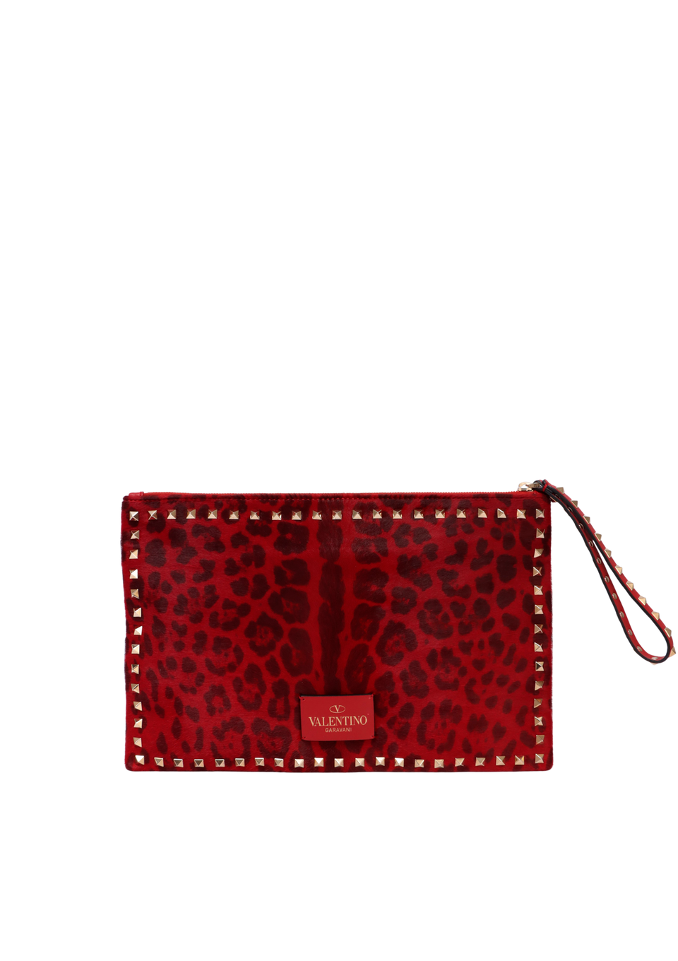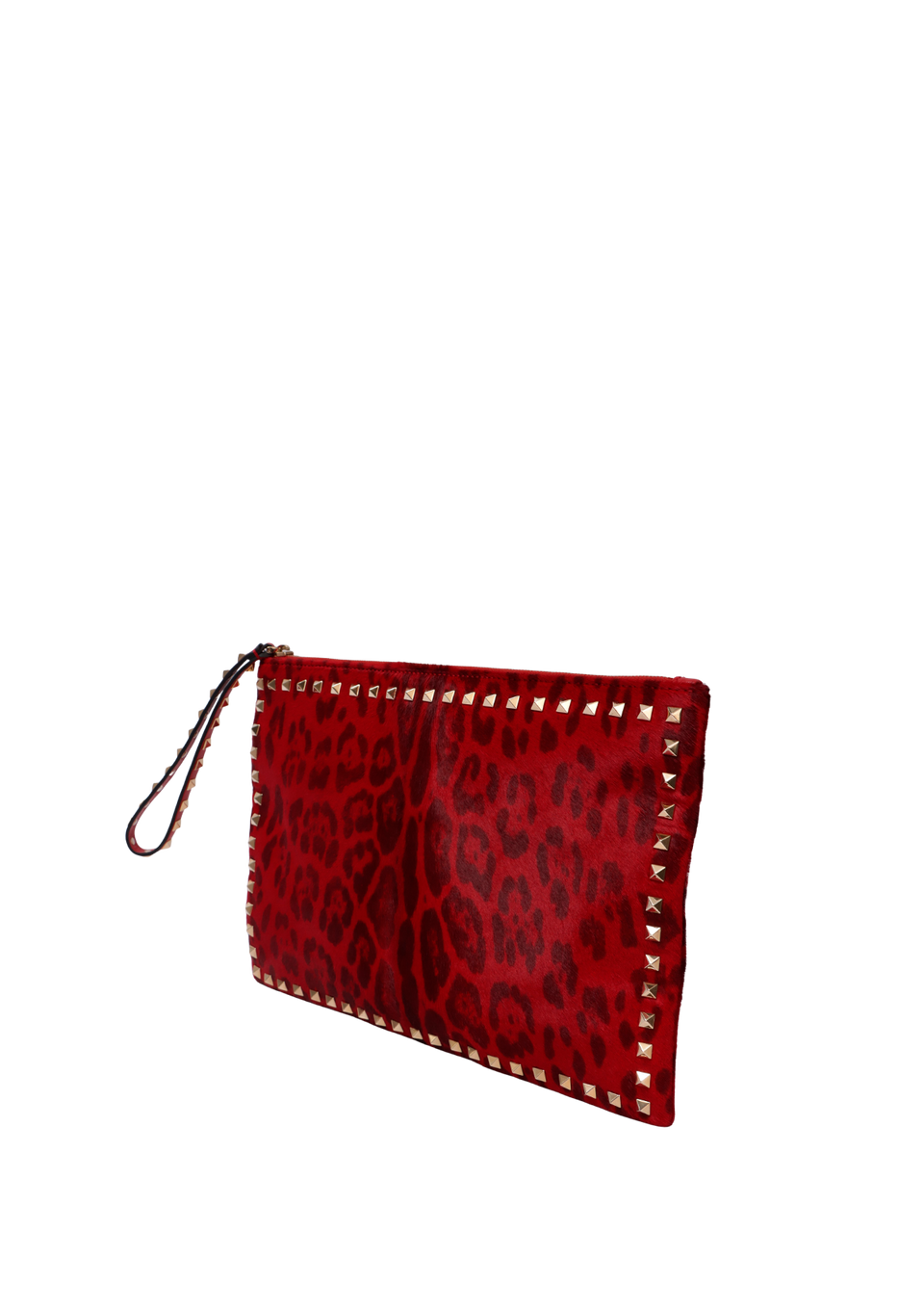 CALF HAIR LEOPARD ROCKSTUD WRISTLET CLUTCH
