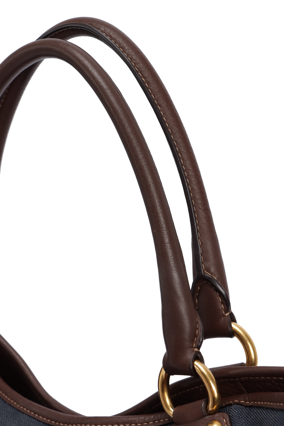 Descrição do Material: Denim azul com detalhes em couro calfskin marrom