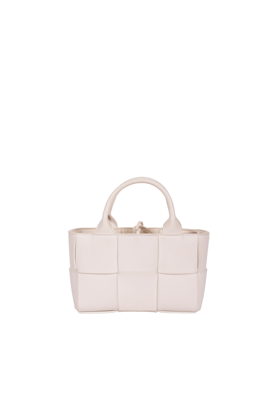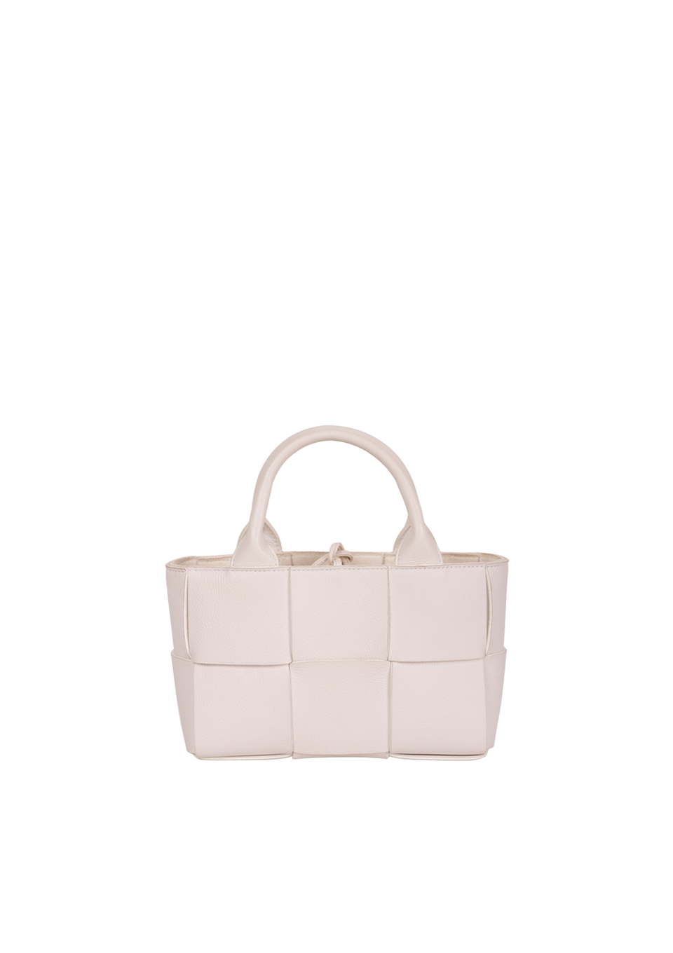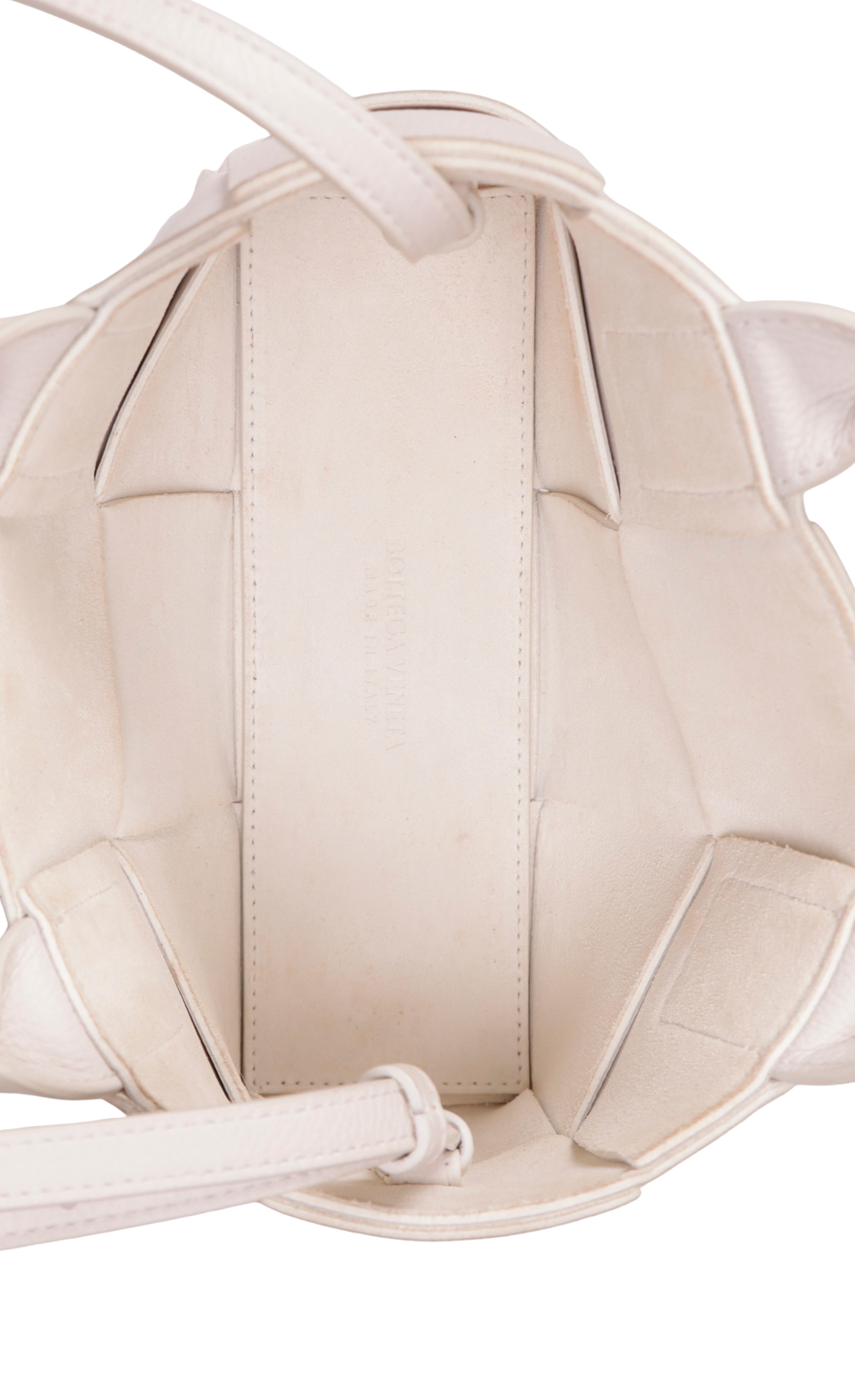 Descrição do Material: Couro calfskin off white com acabamento Intreccio