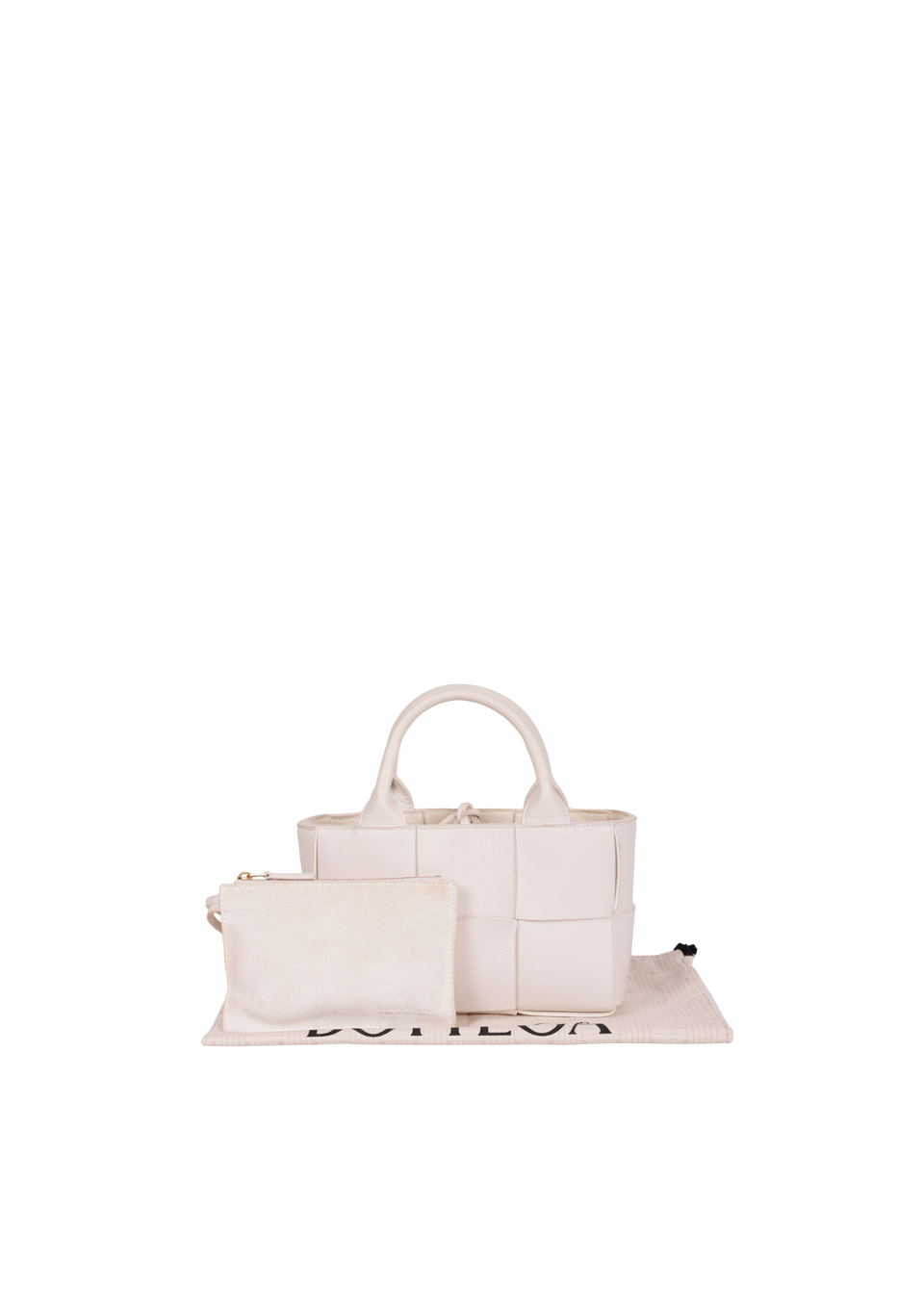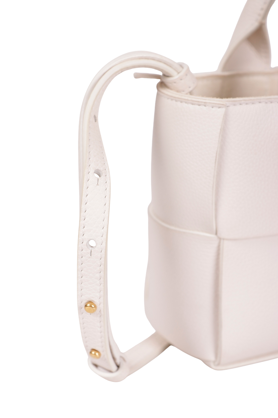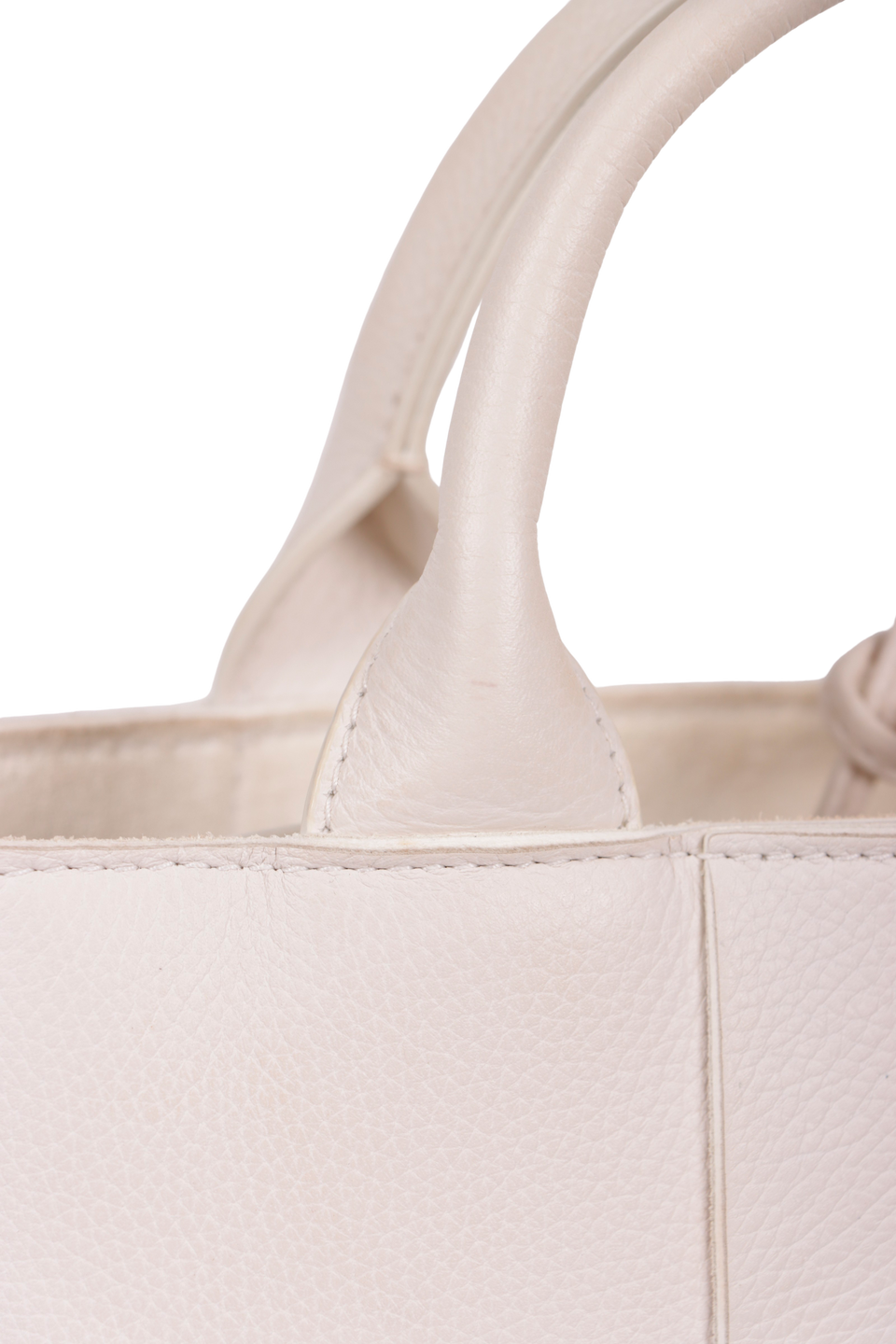 Descrição do Material: Couro calfskin off white com acabamento Intreccio