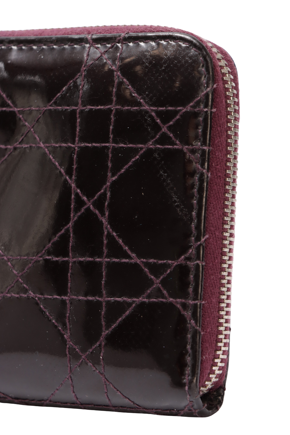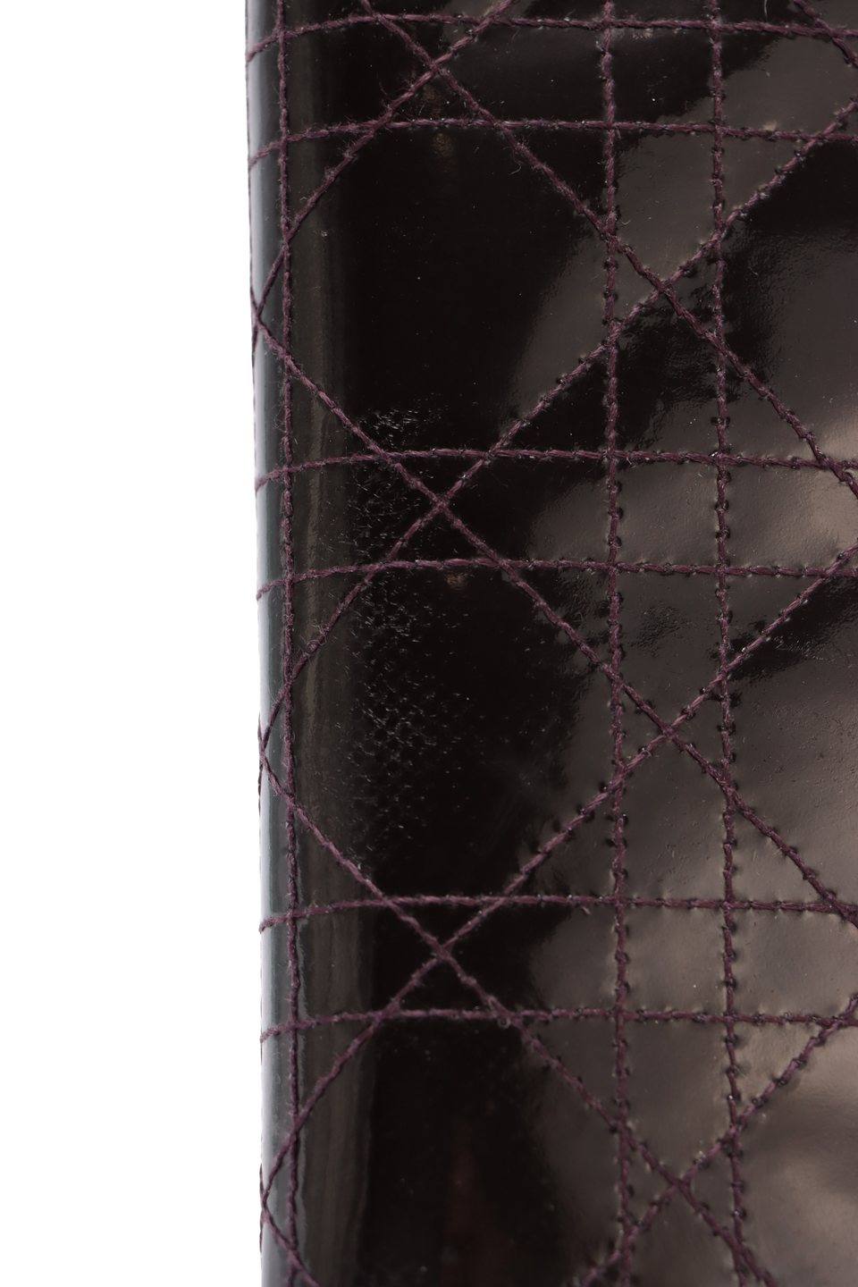 Descrição do Material: Couro calfskin roxo revestido por verniz com acabamento matelassê Cannage