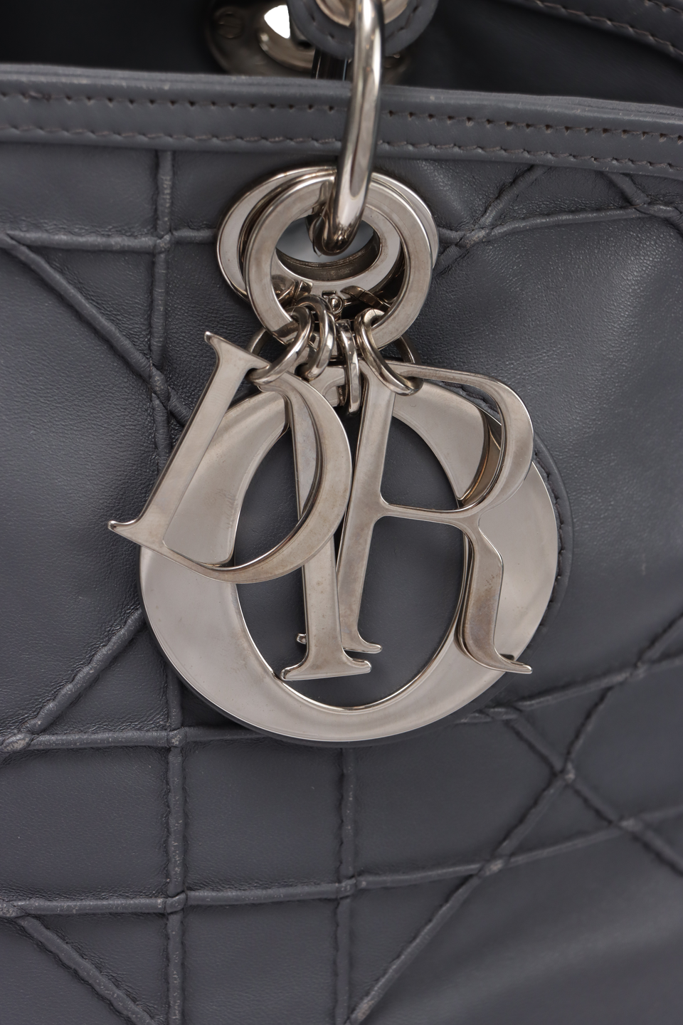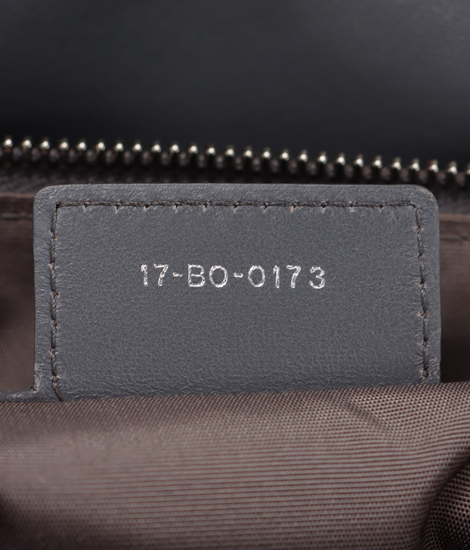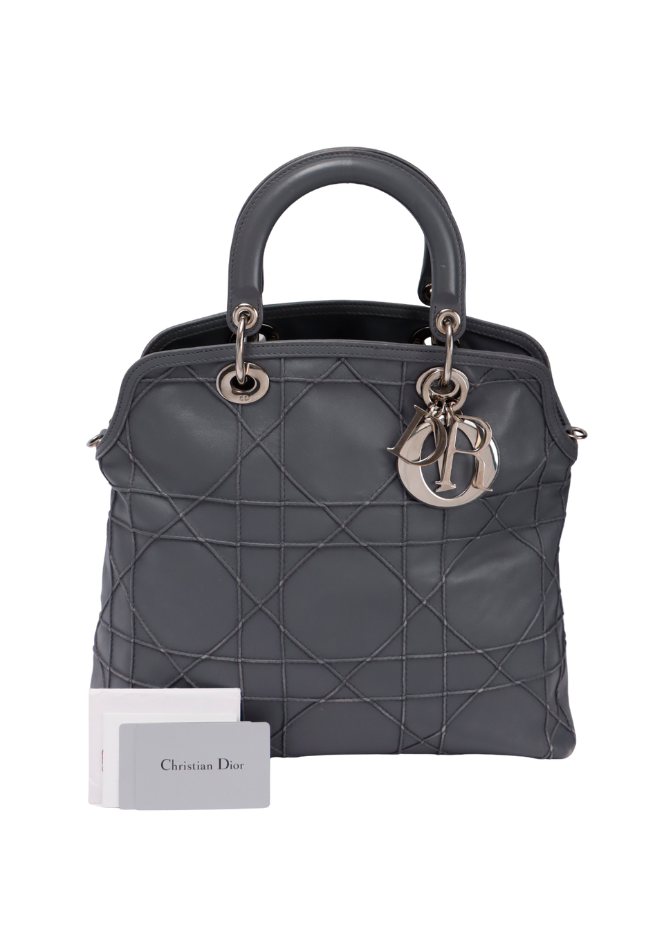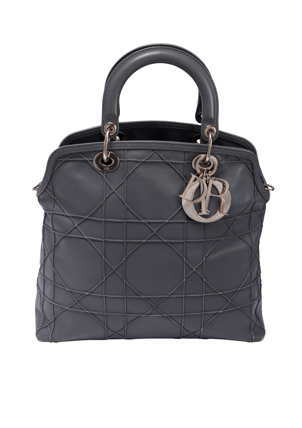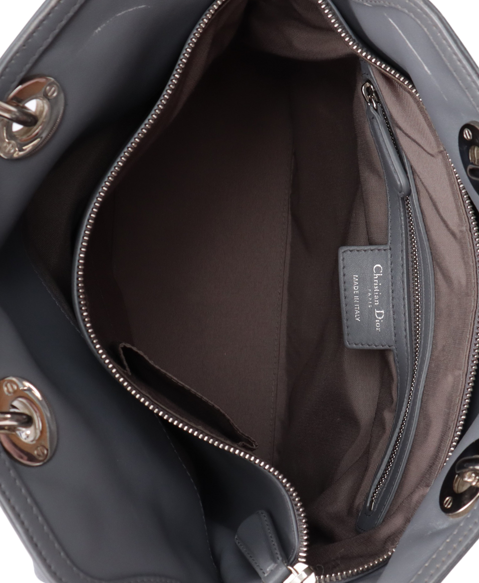 Descrição do Material: Couro lambskin cinza com acabamento Cannage
