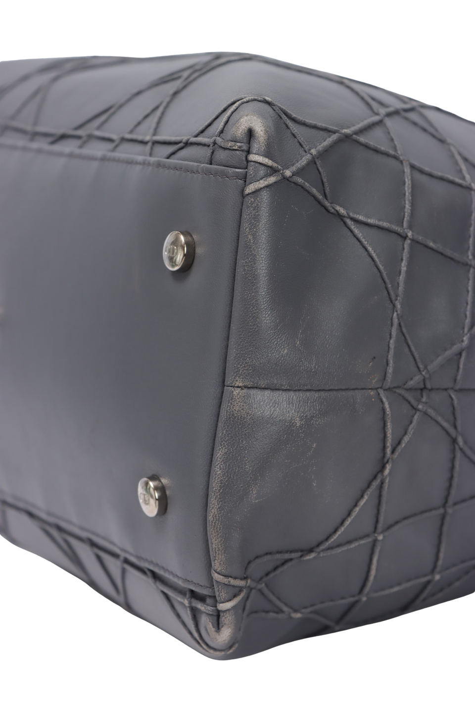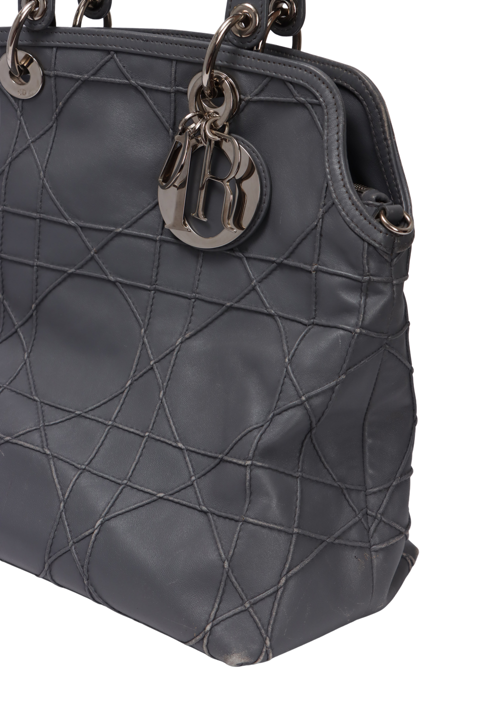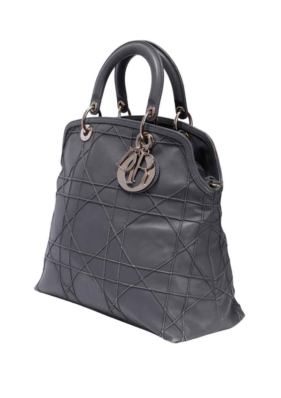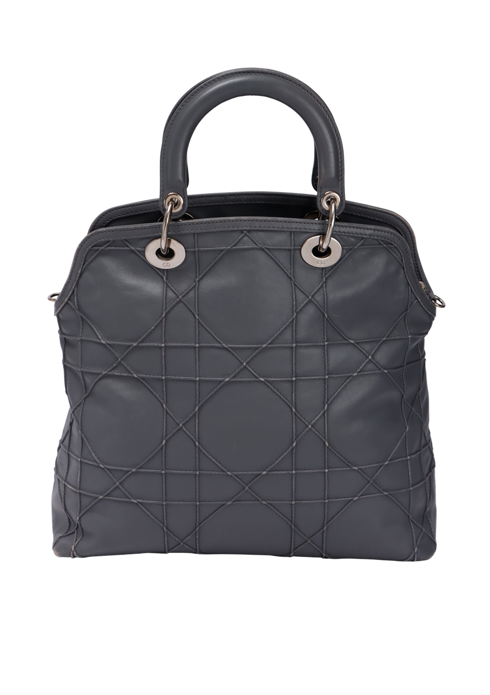 Descrição do Material: Couro lambskin cinza com acabamento Cannage