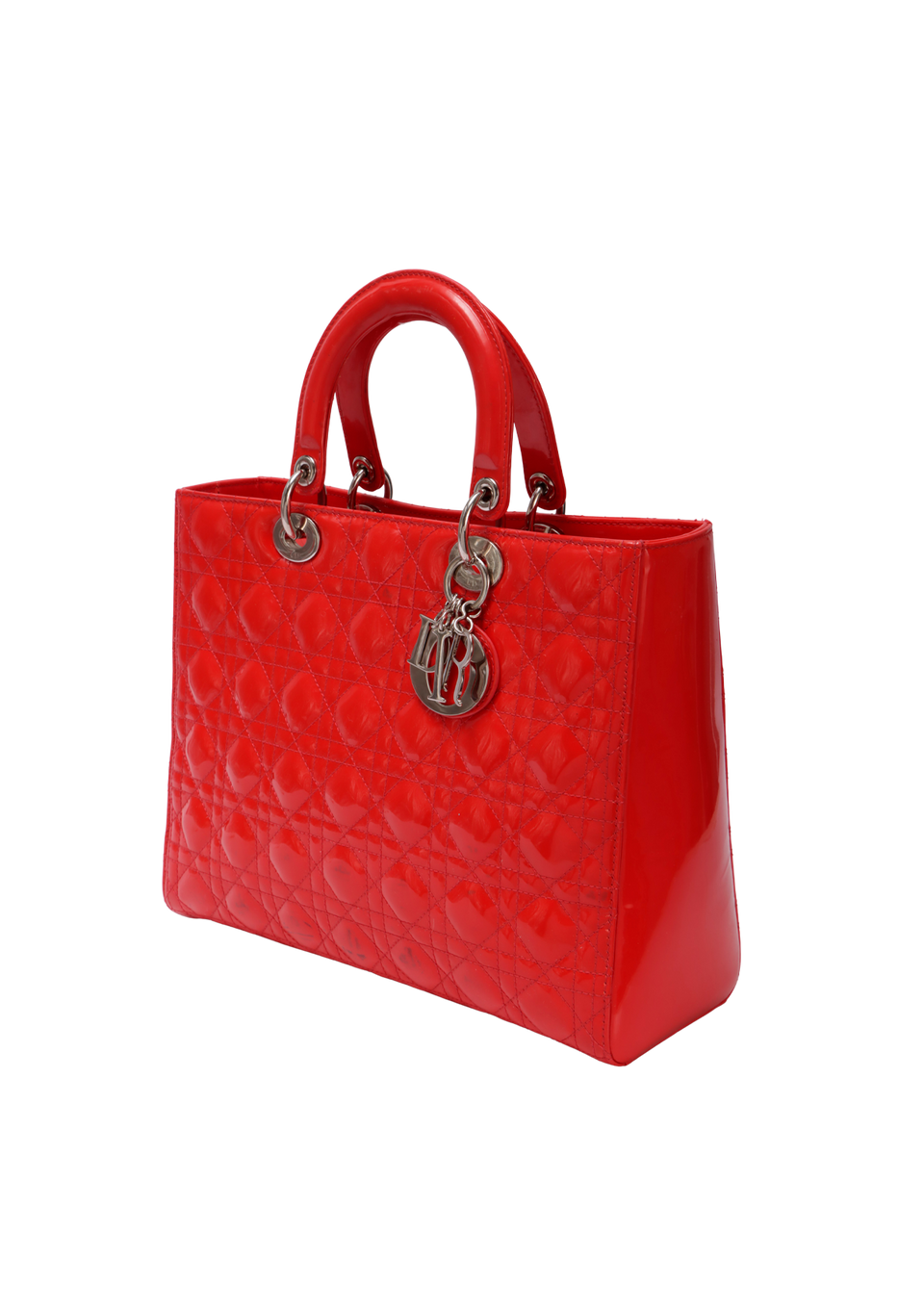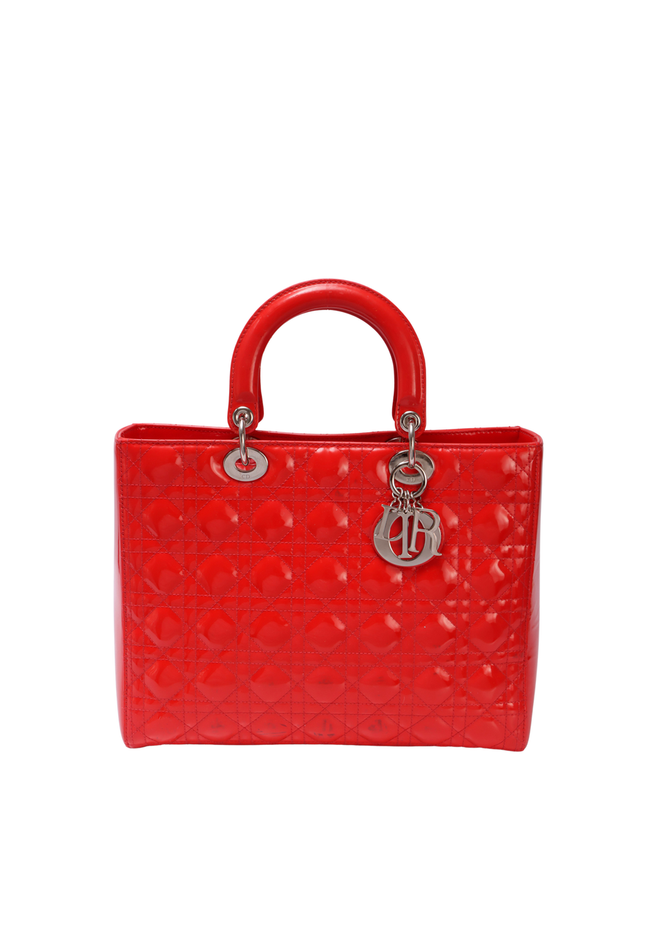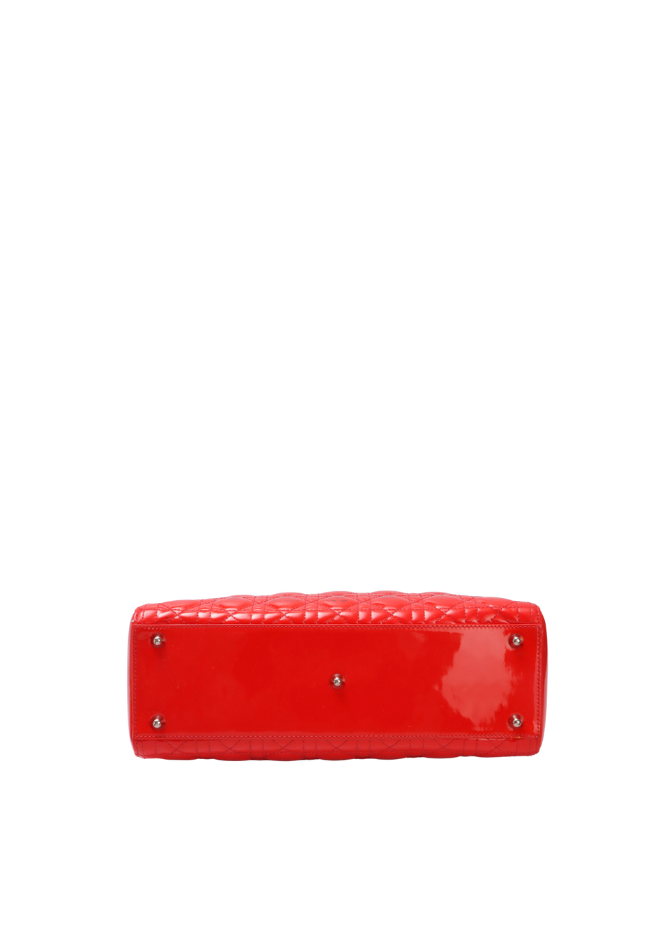 Descrição do Material: Couro calfskin vermelho com acabamentos Cannage e verniz