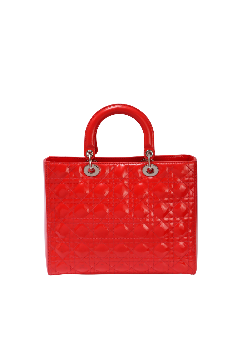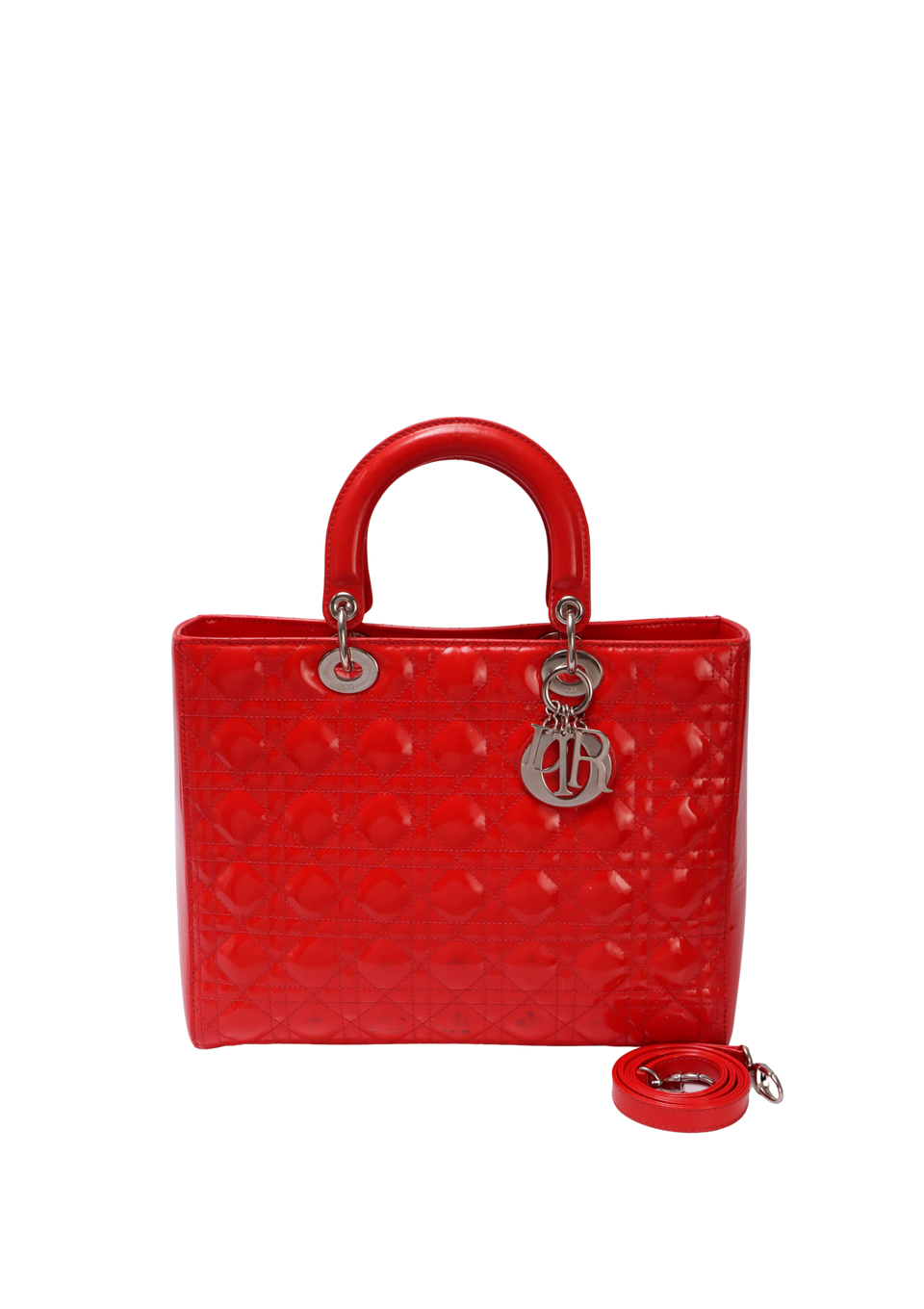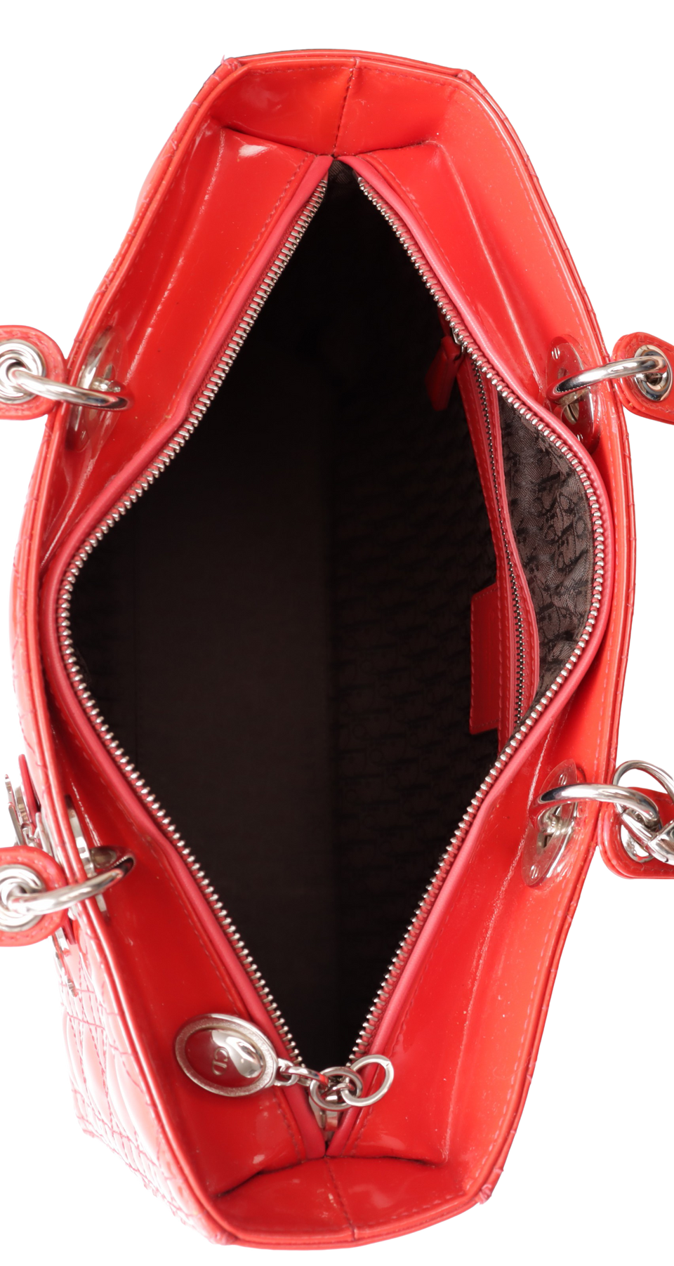 Descrição do Material: Couro calfskin vermelho com acabamentos Cannage e verniz