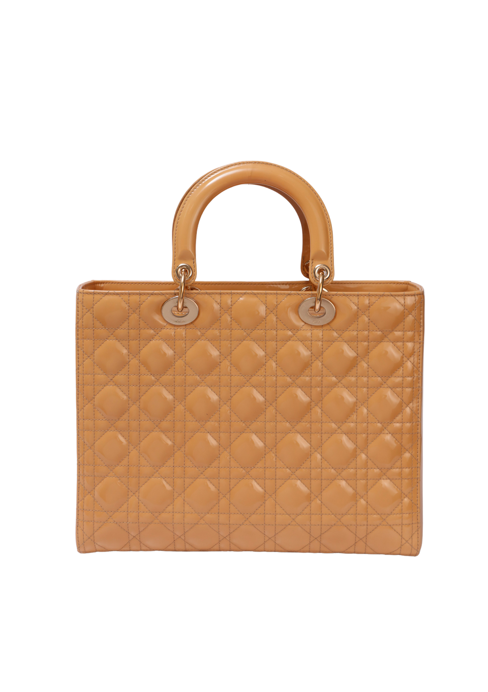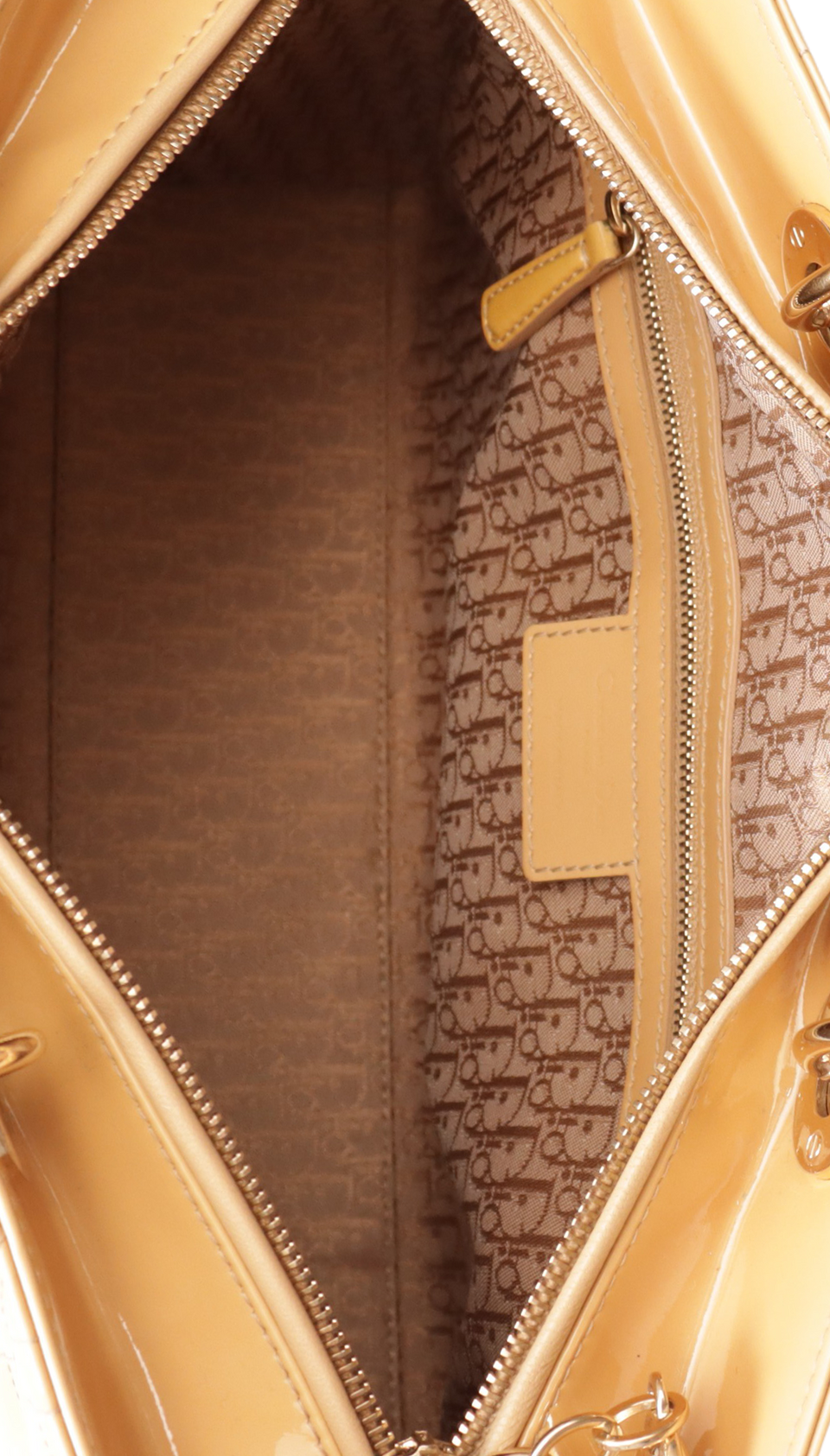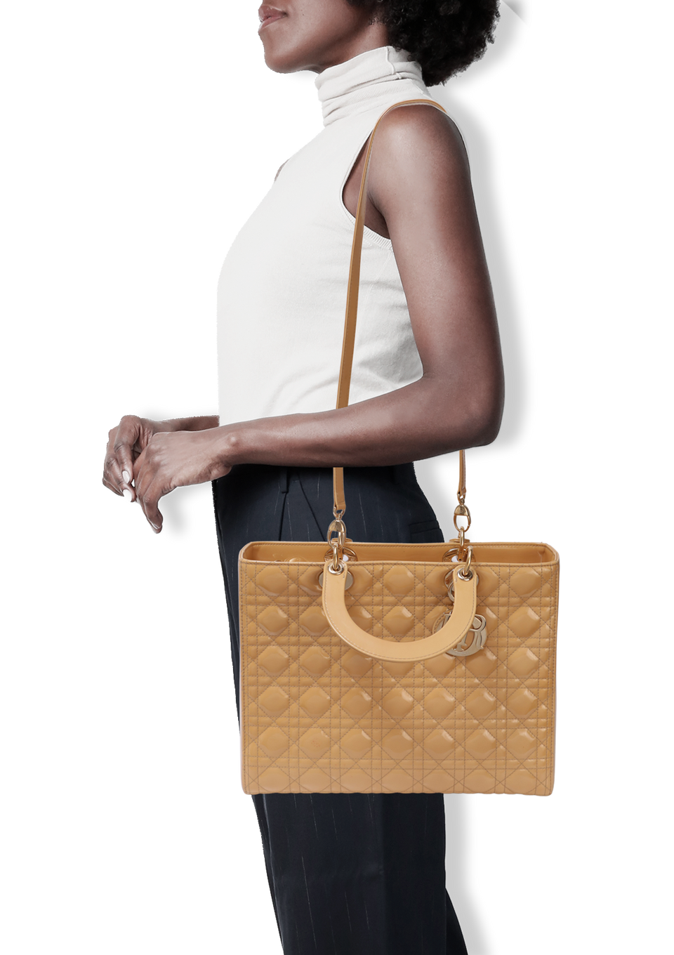Descrição do Material: Couro calfskin bege envernizado com acabamento Cannage