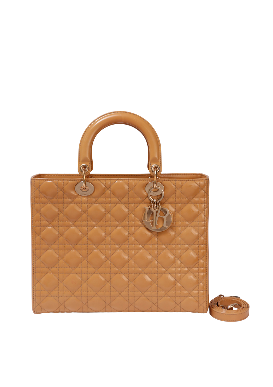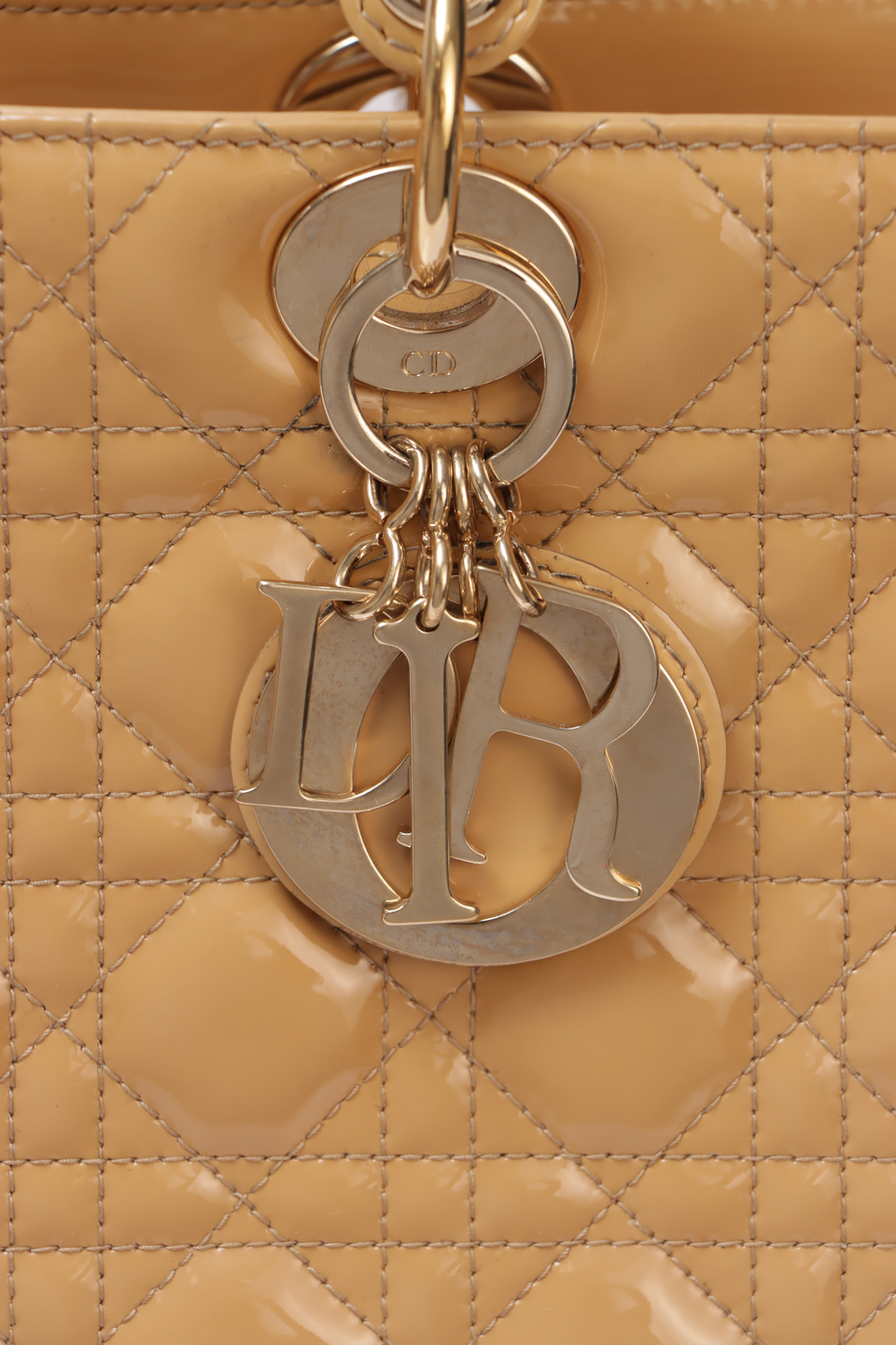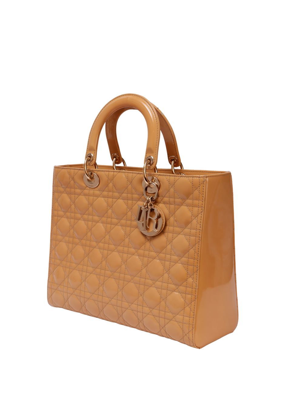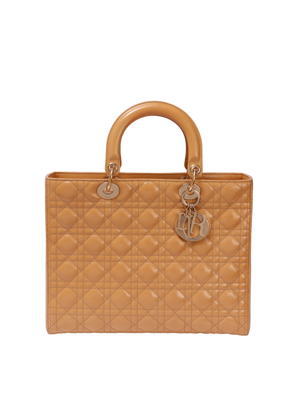 Descrição do Material: Couro calfskin bege envernizado com acabamento Cannage