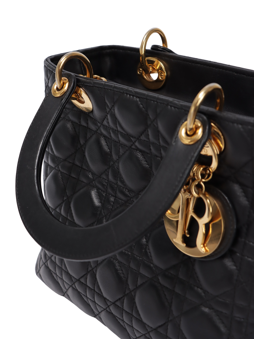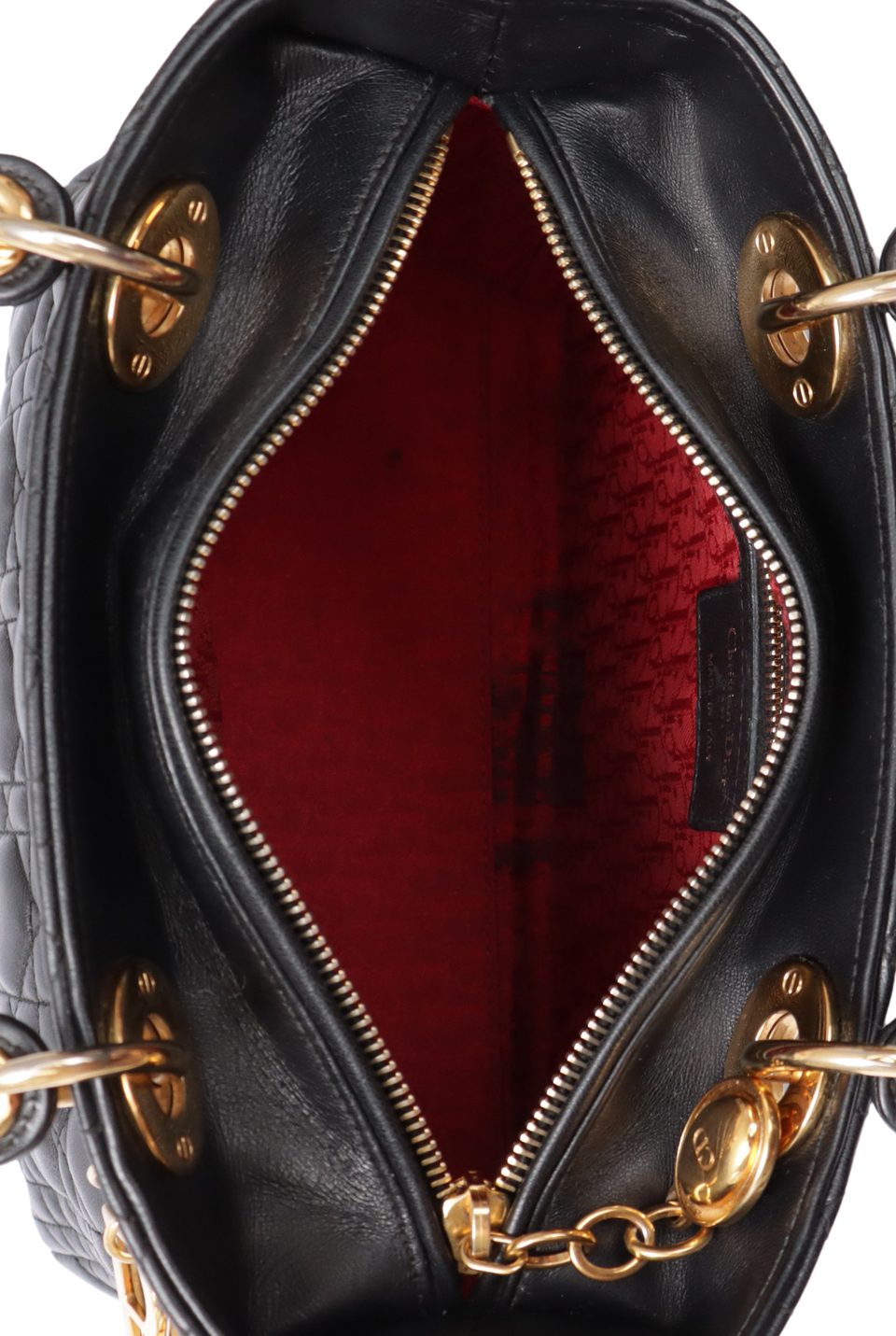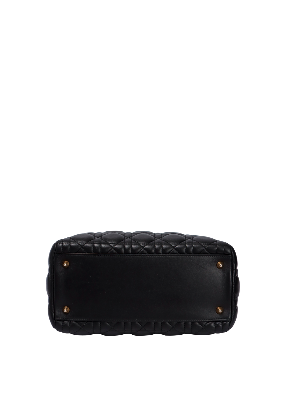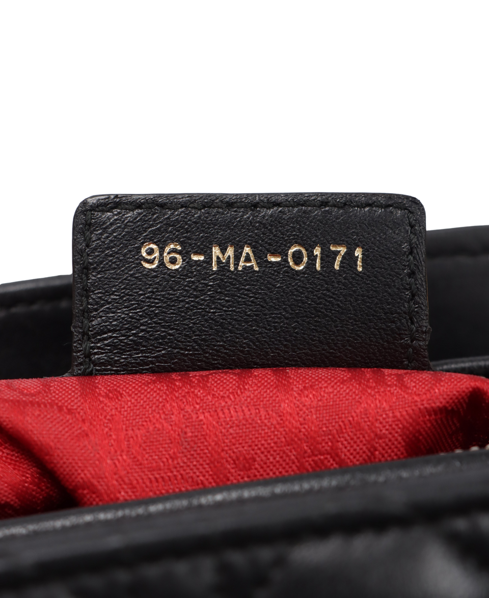 Descrição do Material: Couro lambskin preto com acabamento matelassê cannage