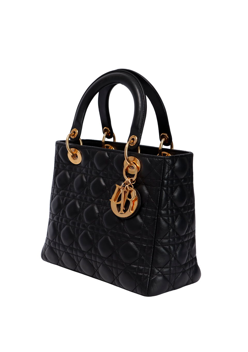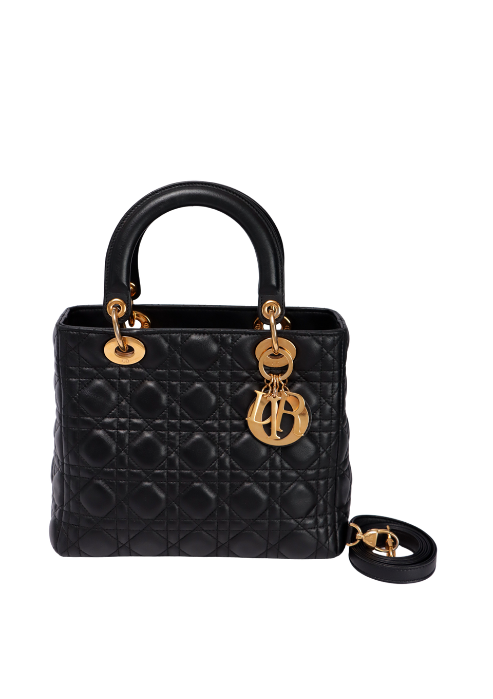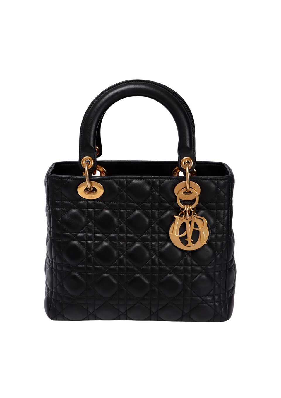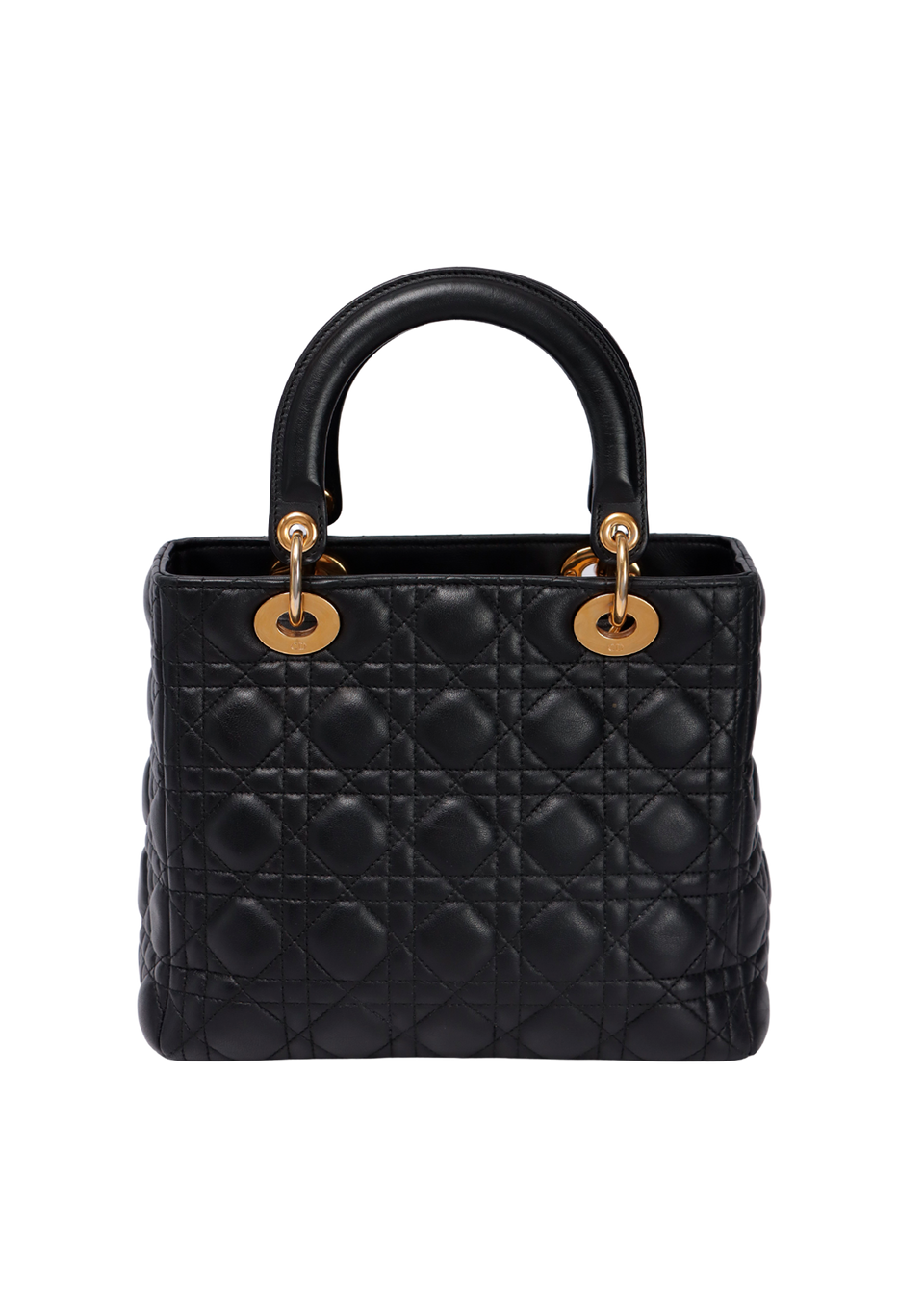 Descrição do Material: Couro lambskin preto com acabamento matelassê cannage