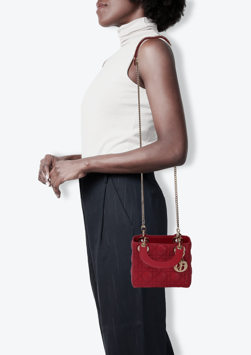 Descrição do Material: Couro calfskin vermelho com acabamento Cannage