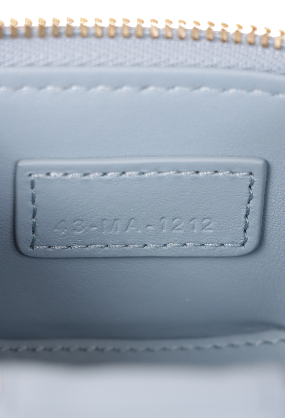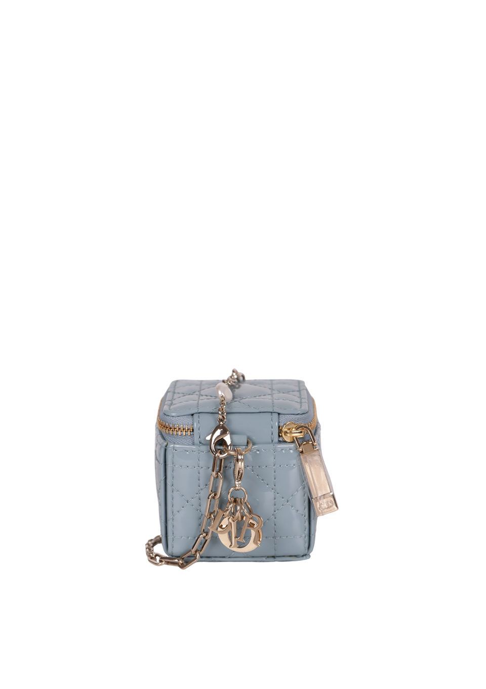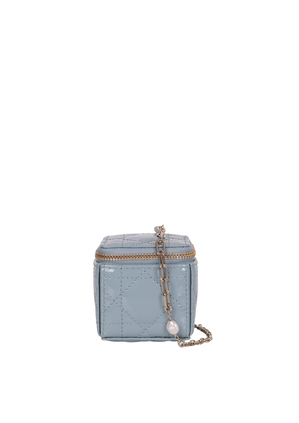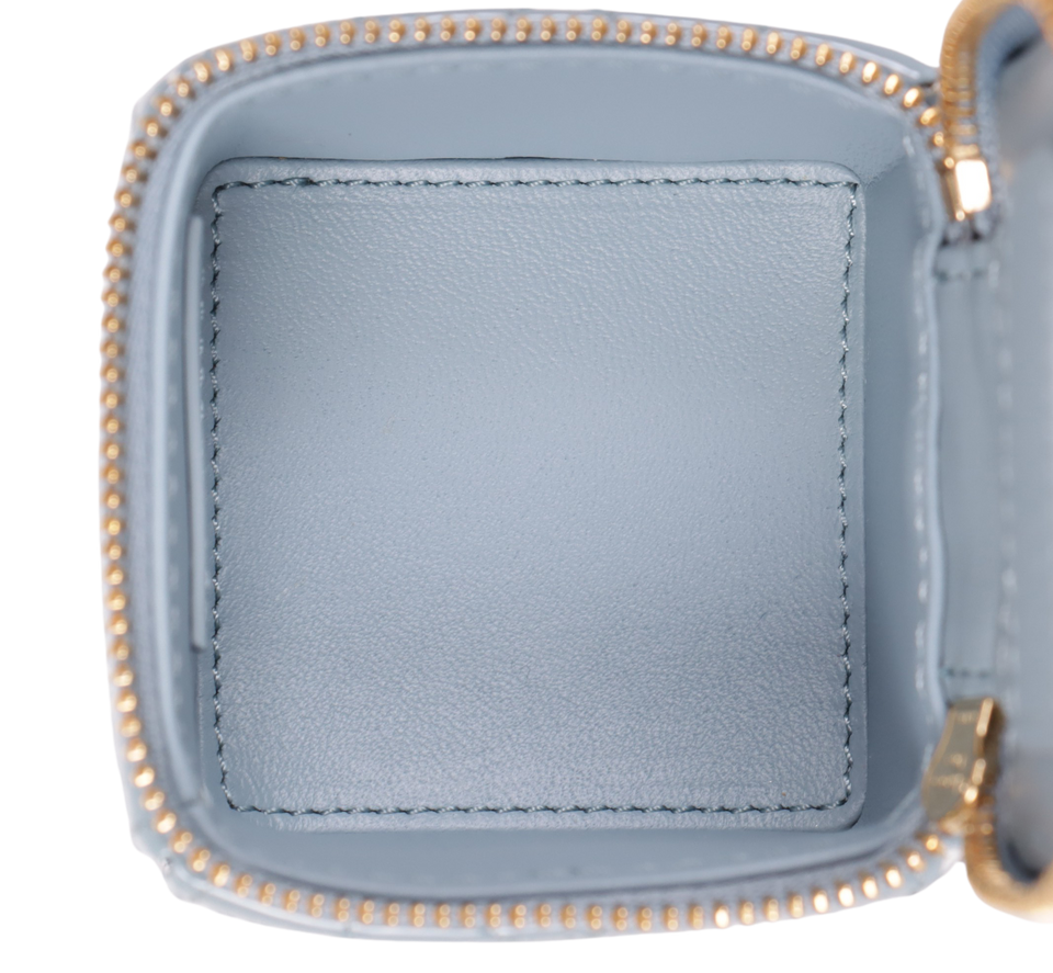 Descrição do Material: Couro calfskin azul com detalhes em matelassê e acabamento envernizado