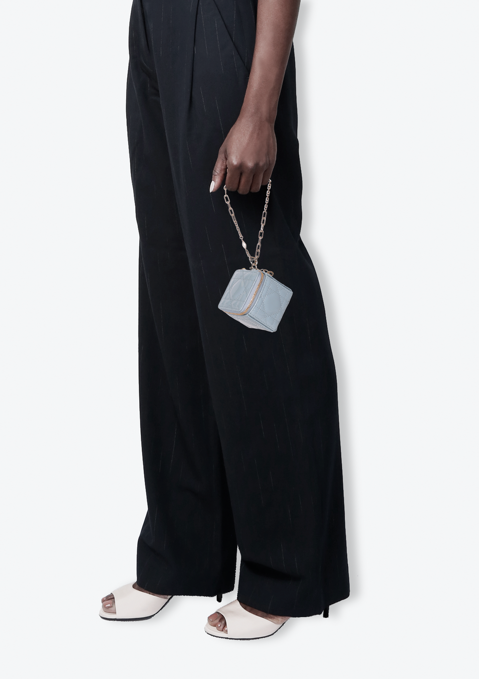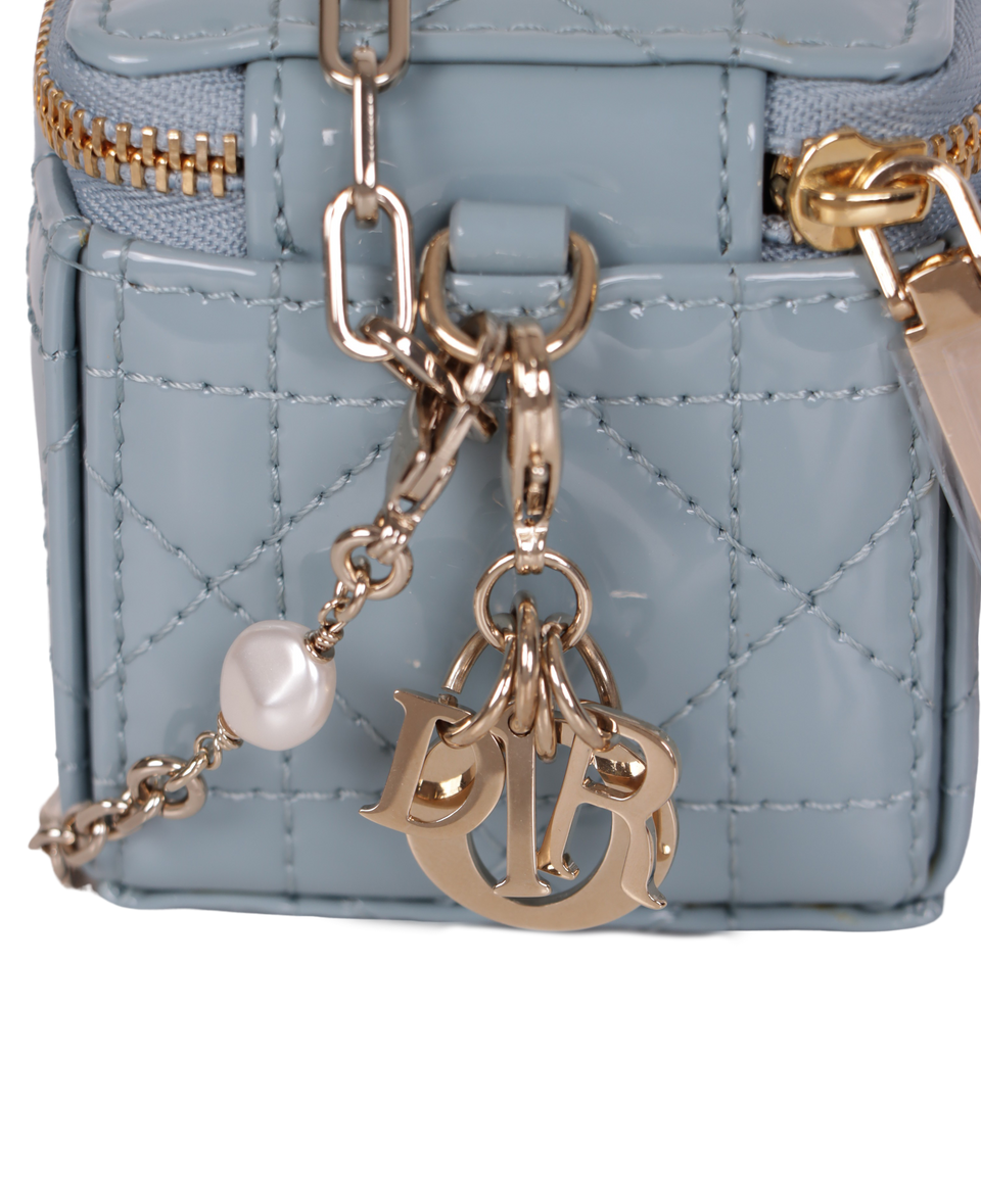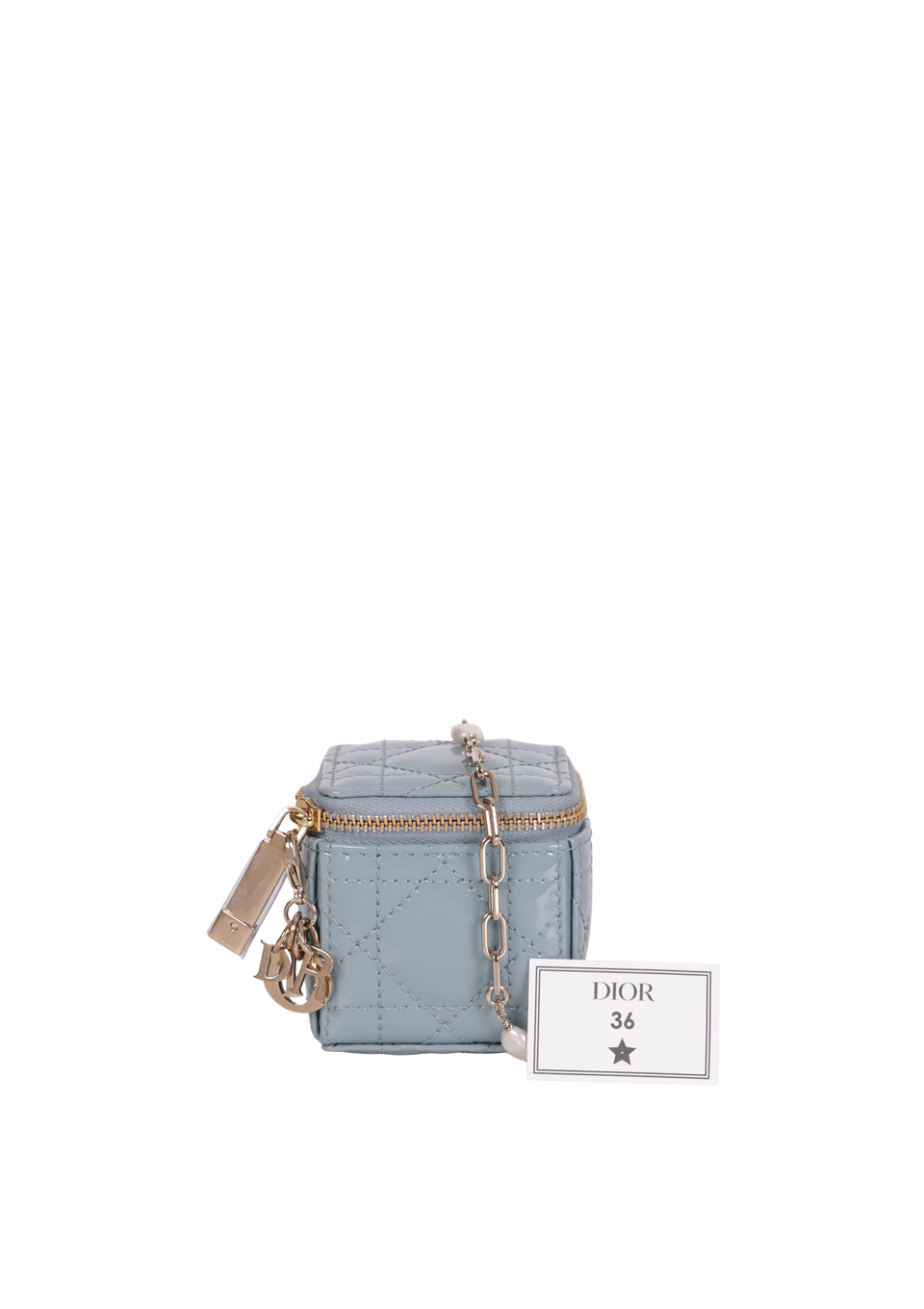 Descrição do Material: Couro calfskin azul com detalhes em matelassê e acabamento envernizado