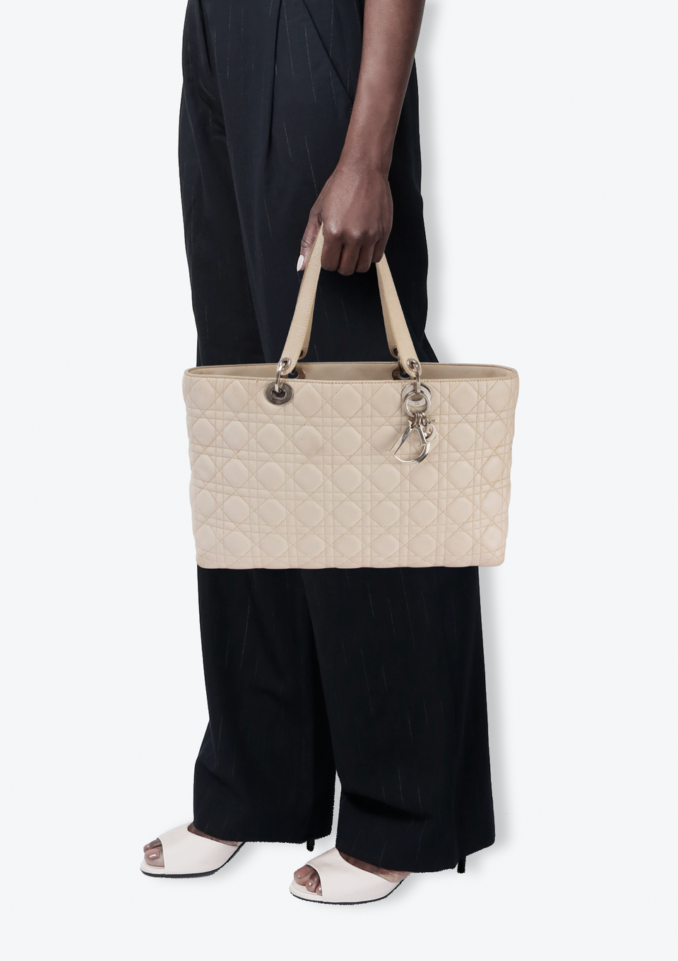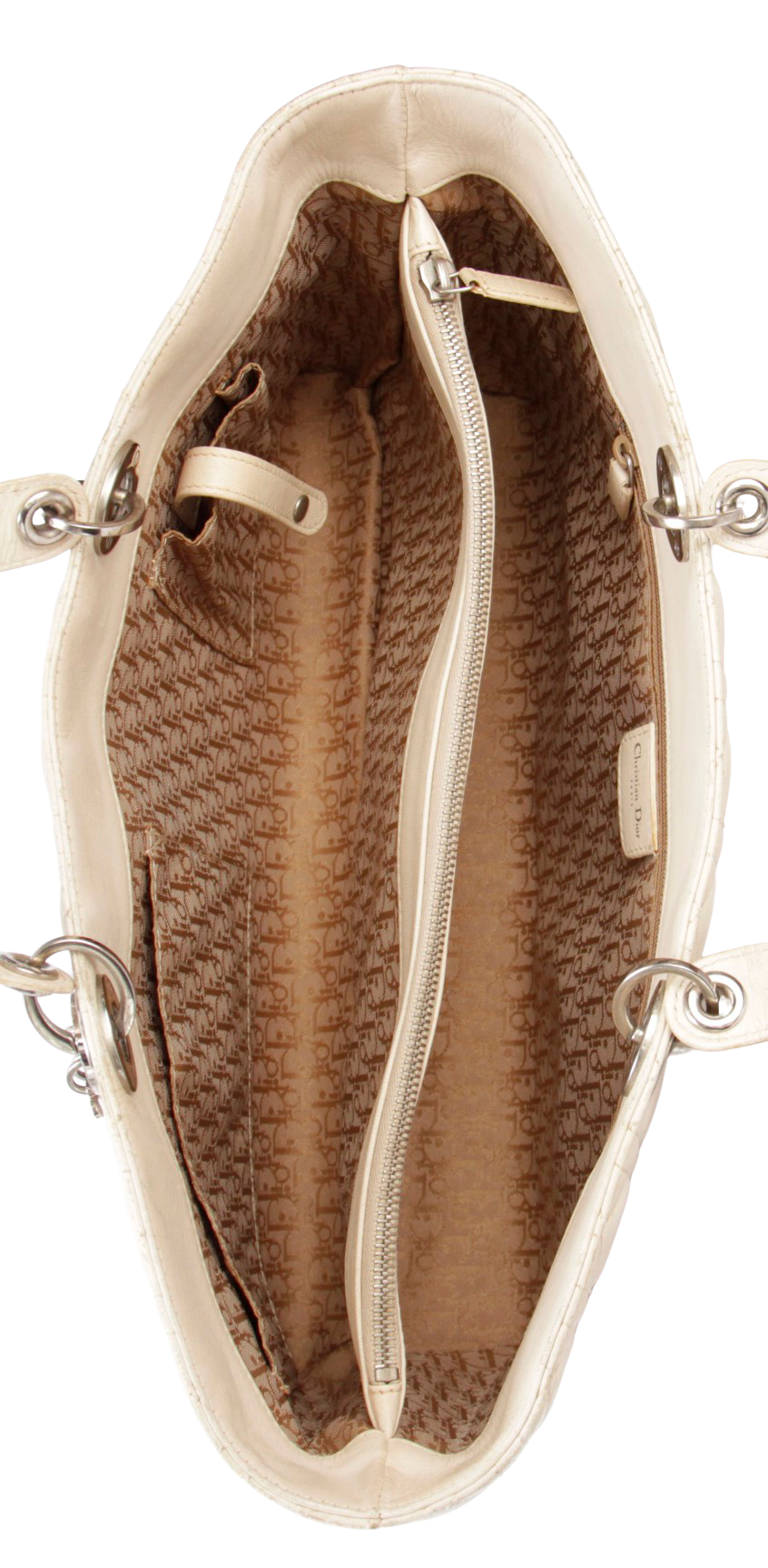 Descrição do Material: Couro lambskin off white com acabamento matelassê Cannage