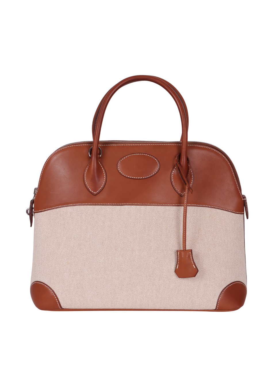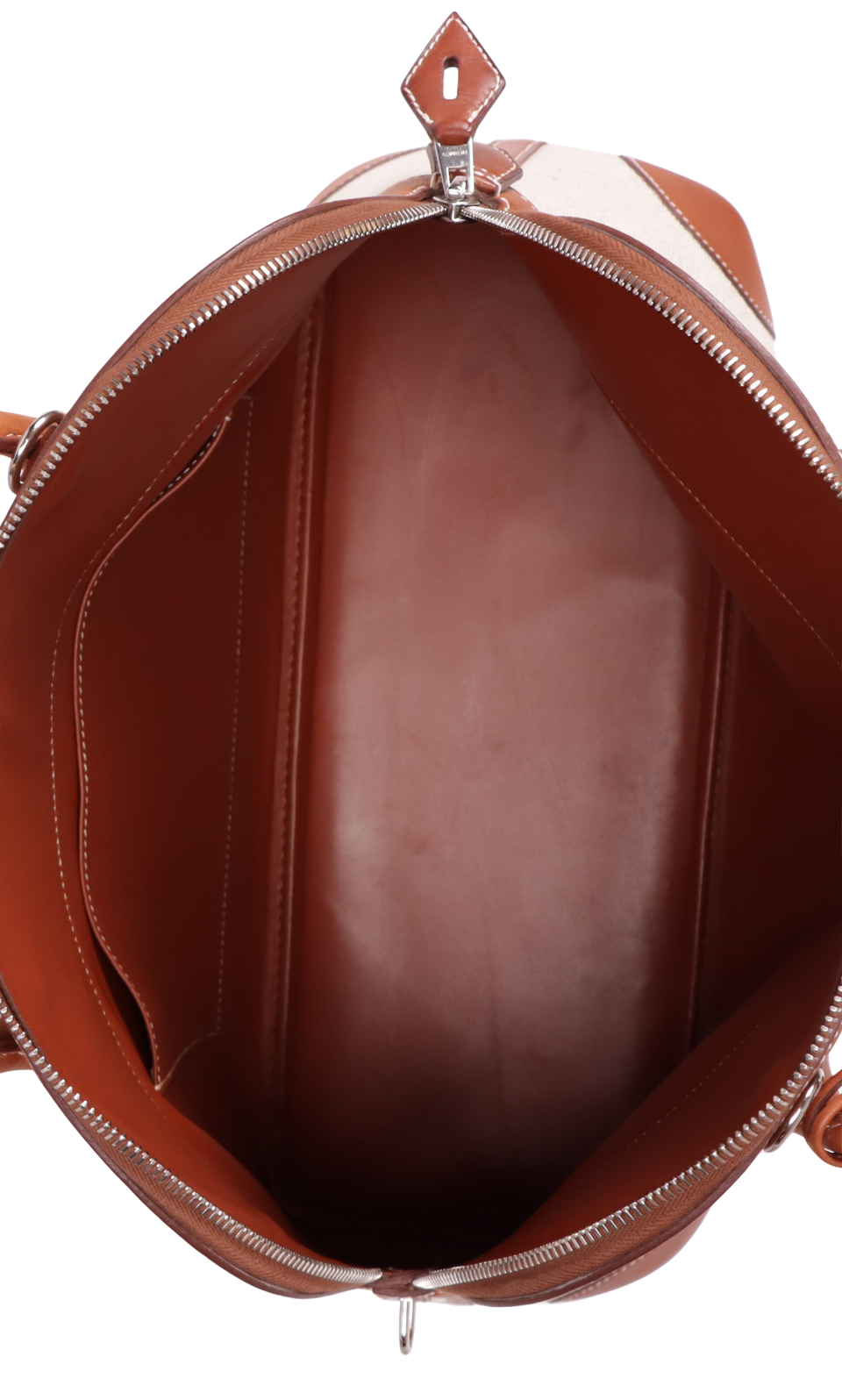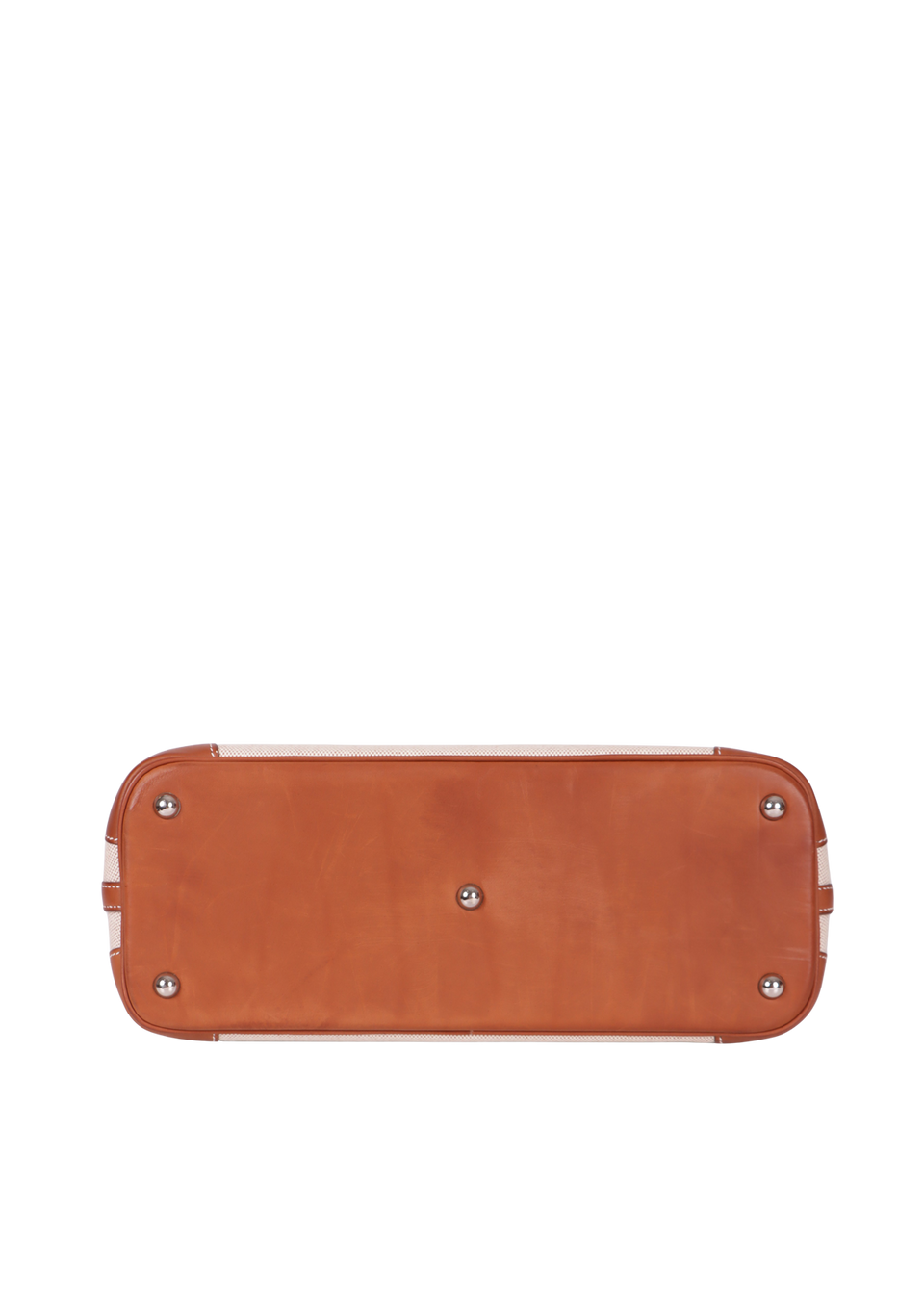 Descrição do Material: Canvas Toile bege com detalhes em couro Barenia marrom