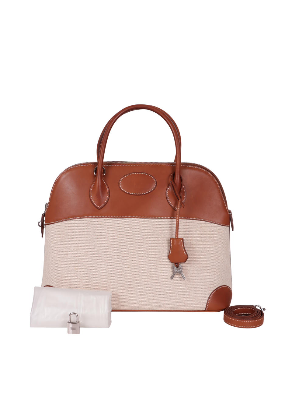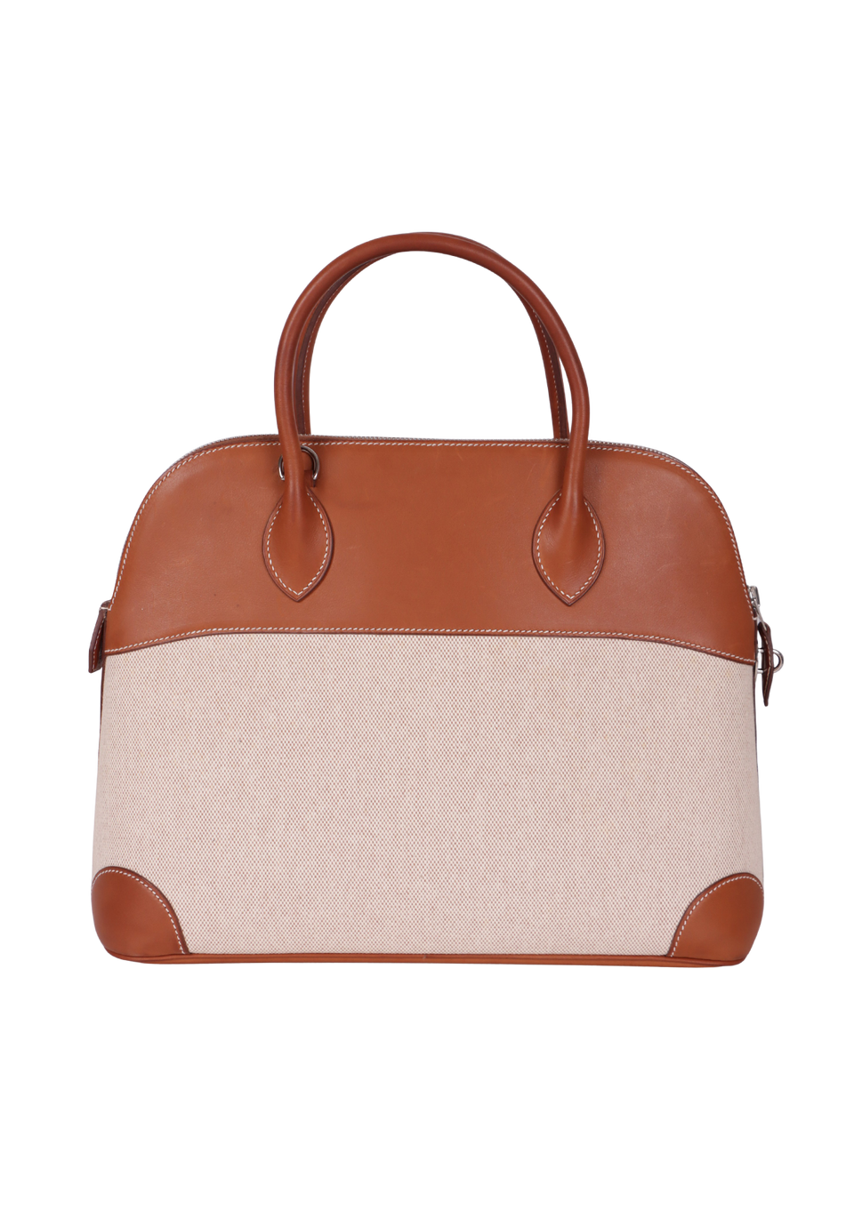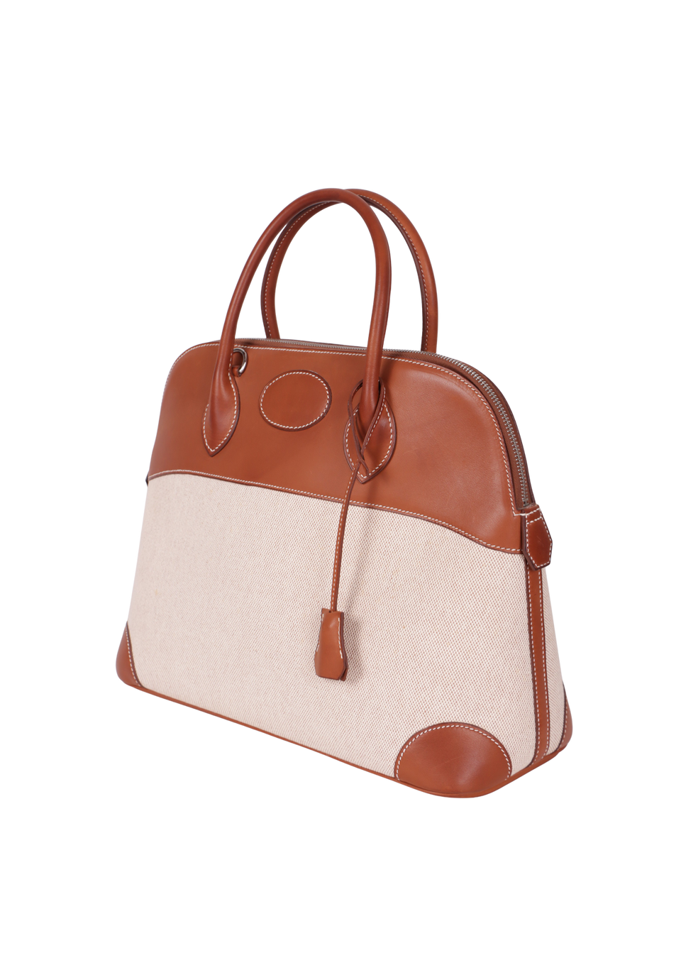 Descrição do Material: Canvas Toile bege com detalhes em couro Barenia marrom