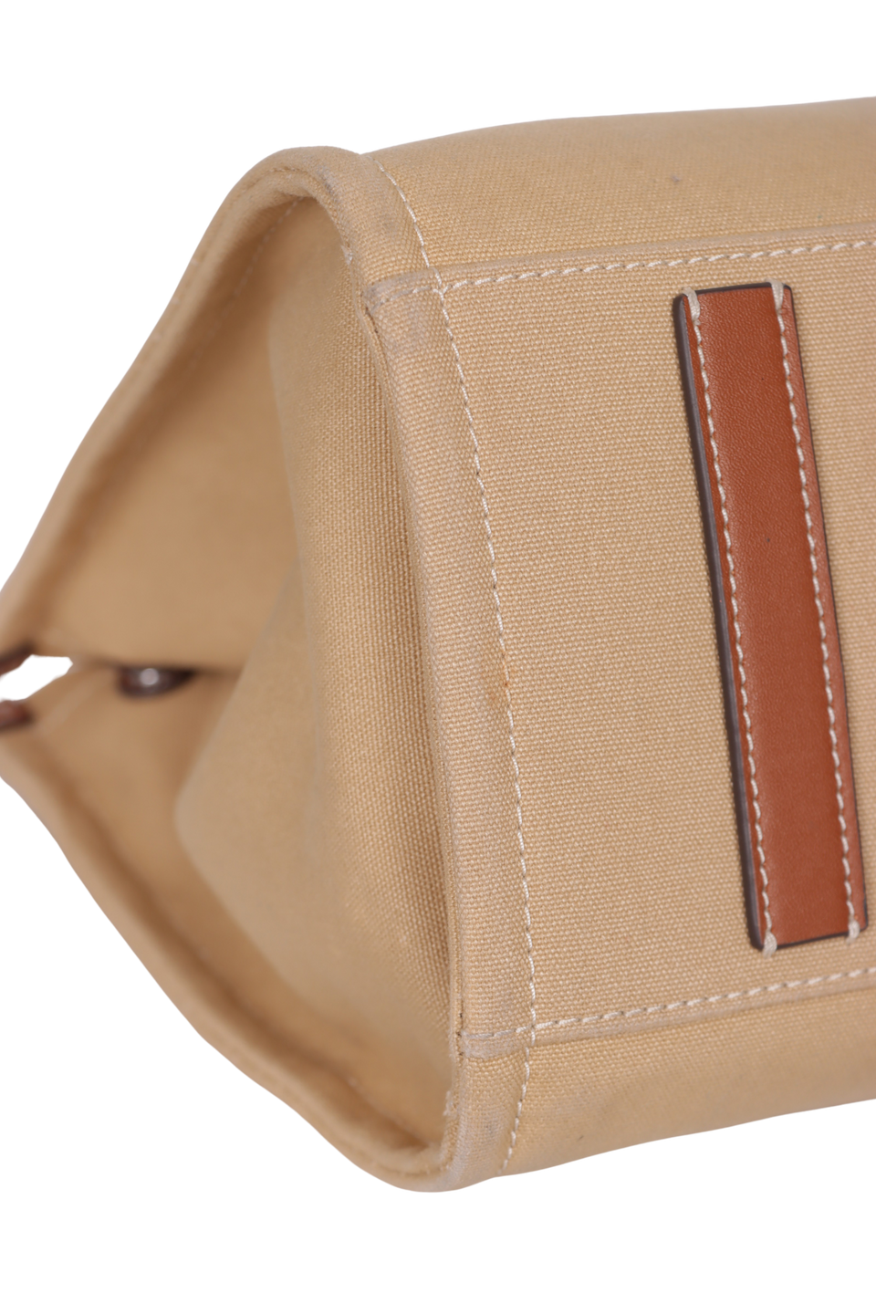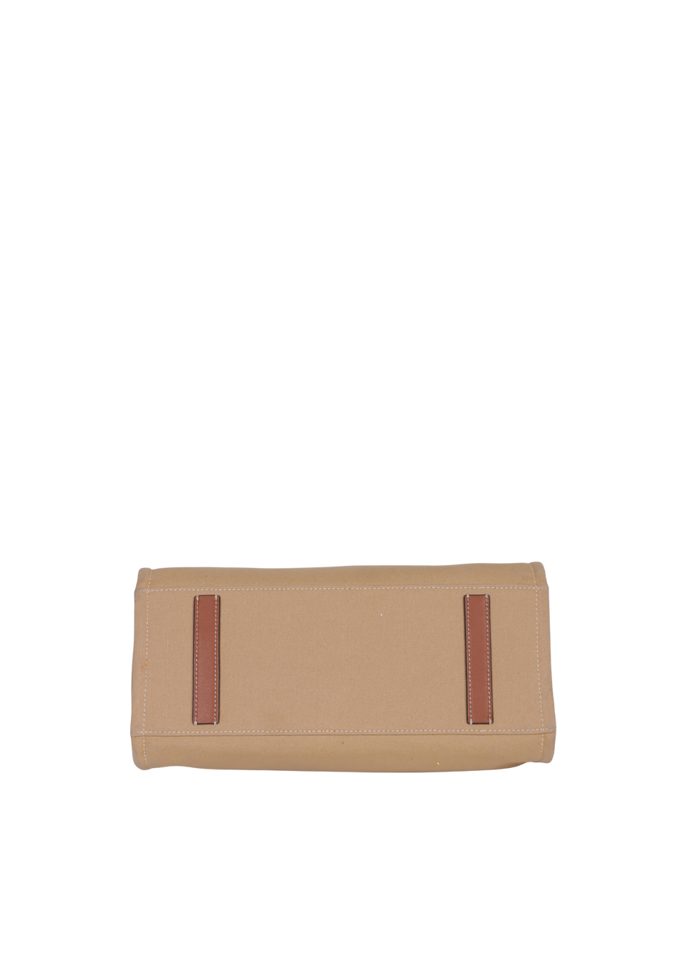 Bom, com aparência de usado. Apresenta leves manchas de uso e desgastes pelo canvas, especialmente nos cantos da base, nas extremidades laterais e nas alças, pequenas marcas de uso nas ferragens dos puxadores dos cursores, leves deformidades pela estrutura na parte inferior frontal e nas partes inferiores das laterais, pequenos desgastes nos acabamentos em couro dos cantos superiores e leves manchas de uso e puídos pelo canvas interno.