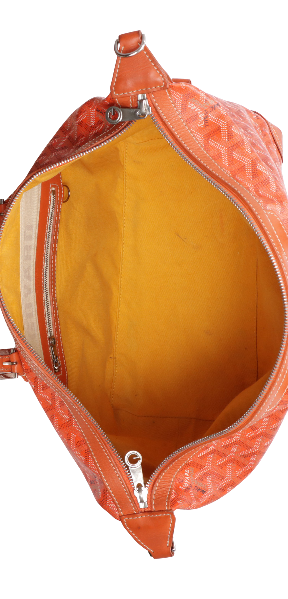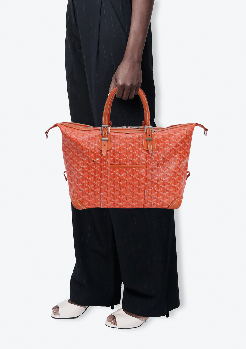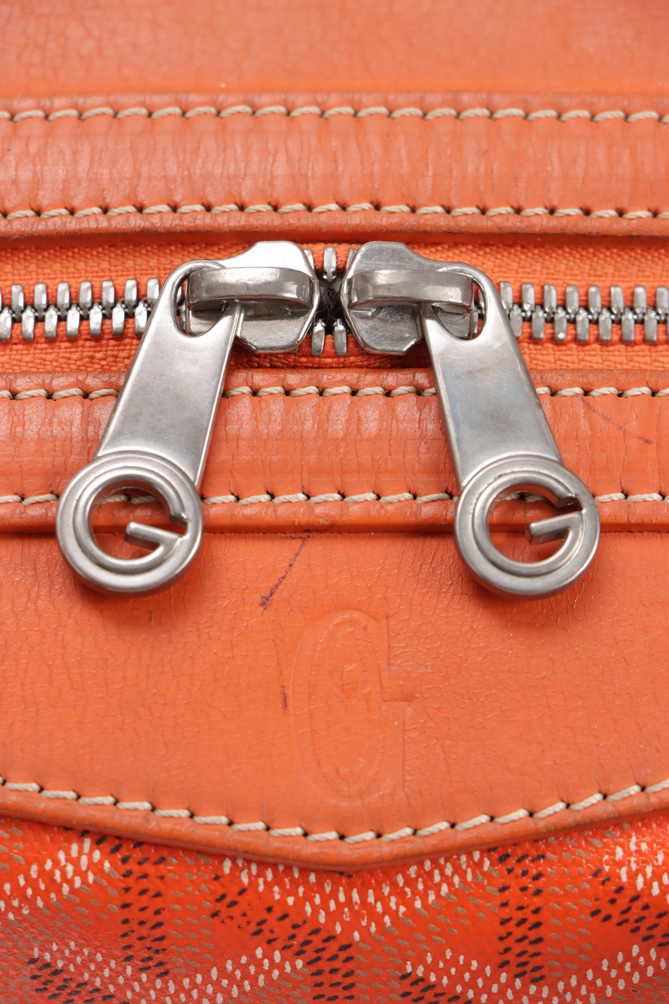 Descrição do Material: Canvas Goyardine laranja com detalhes em couro calfskin laranja