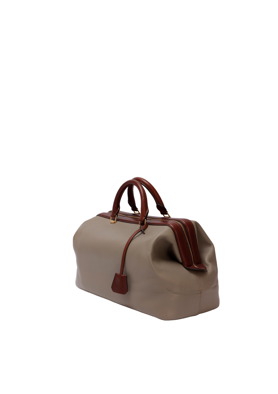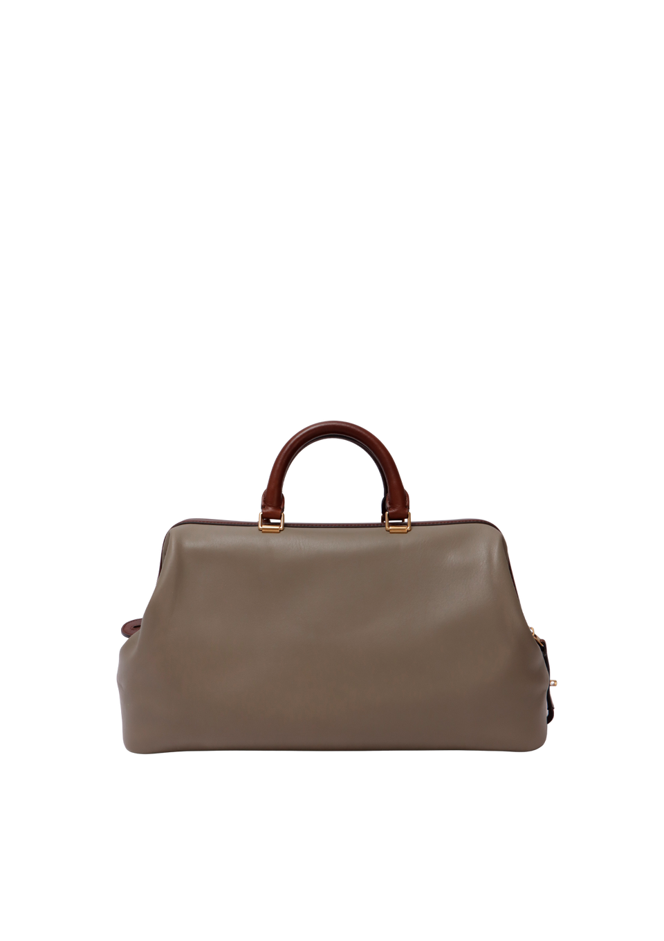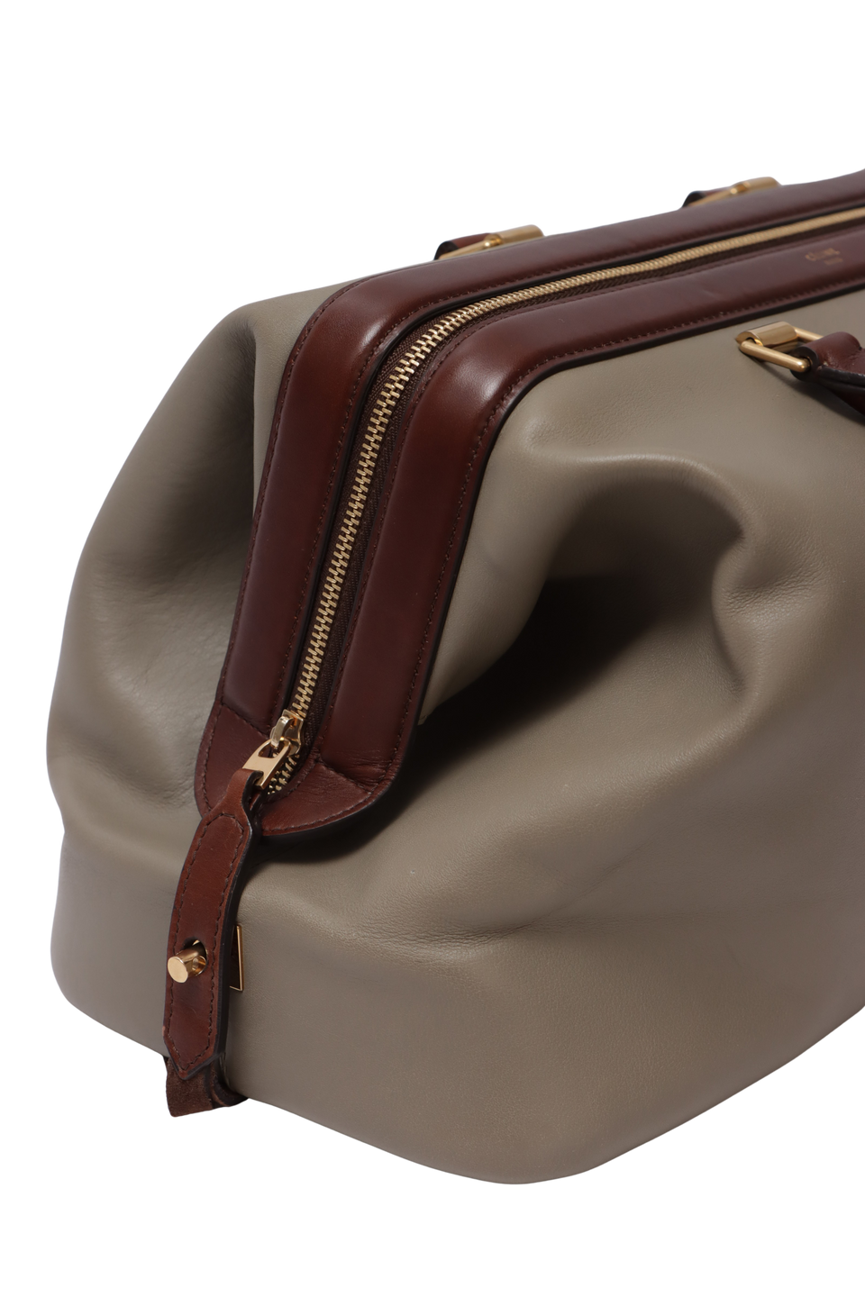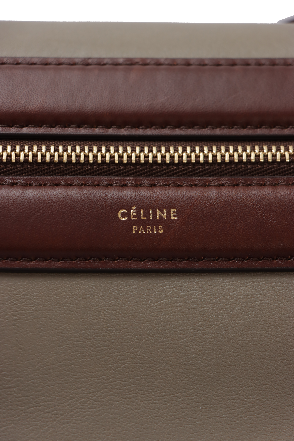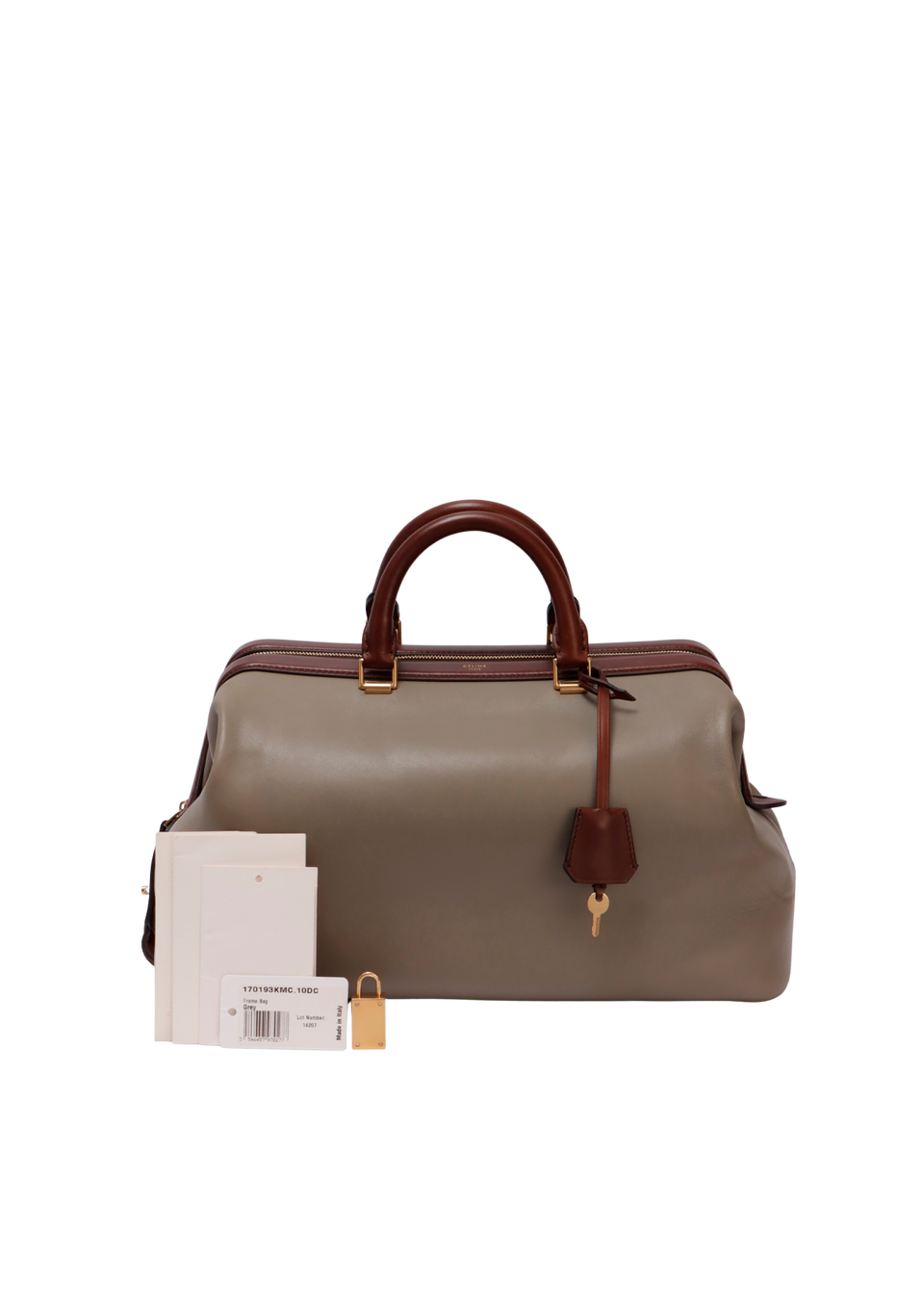 Descrição do Material: Couro calfskin cinza com detalhes em marrom