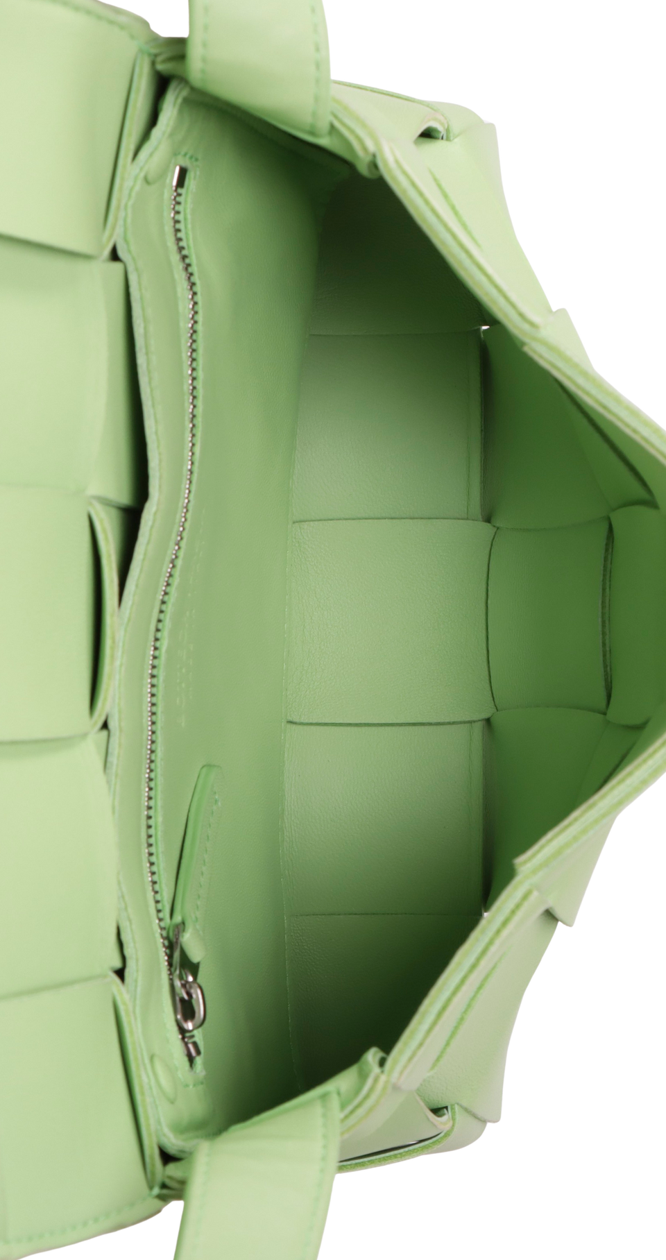 Descrição do Material: Couro lambskin verde com acabamento Intreccio