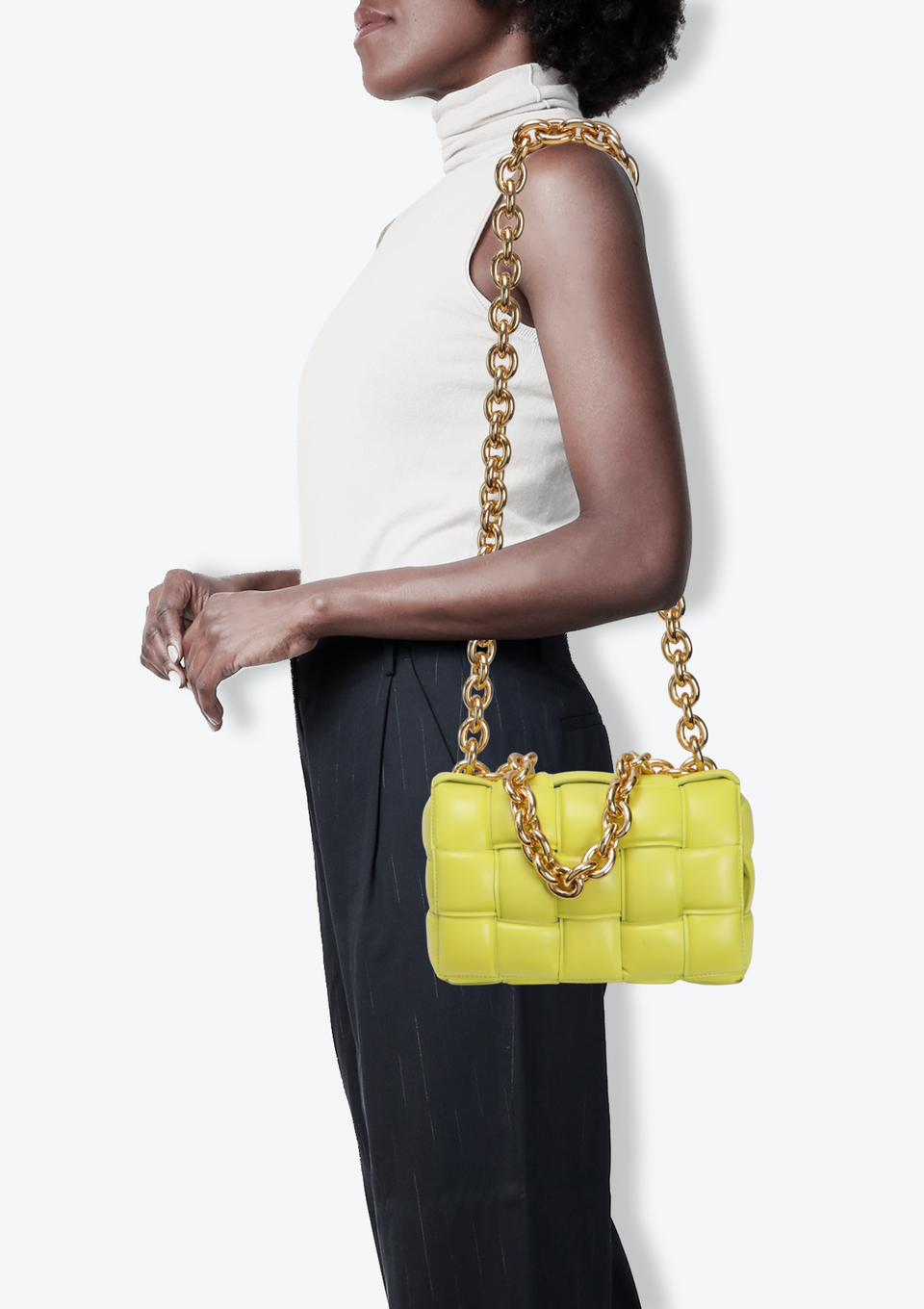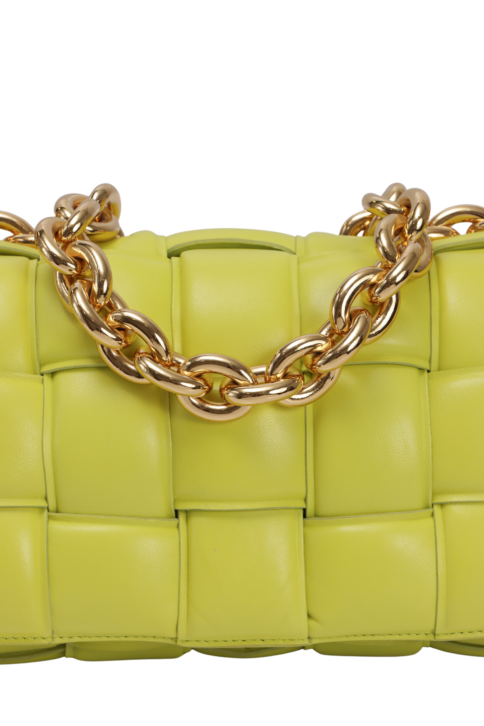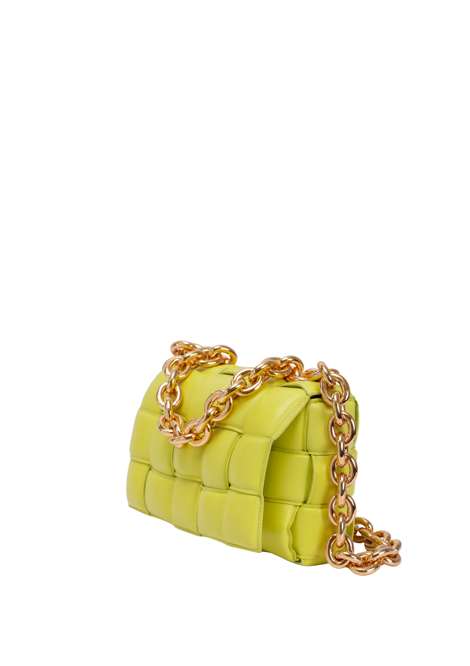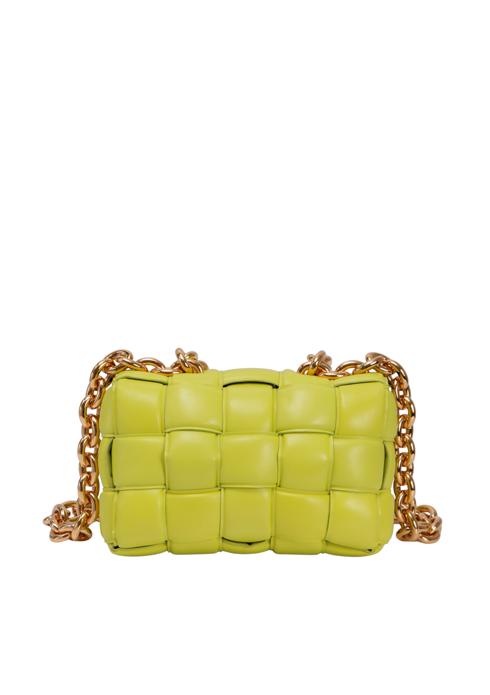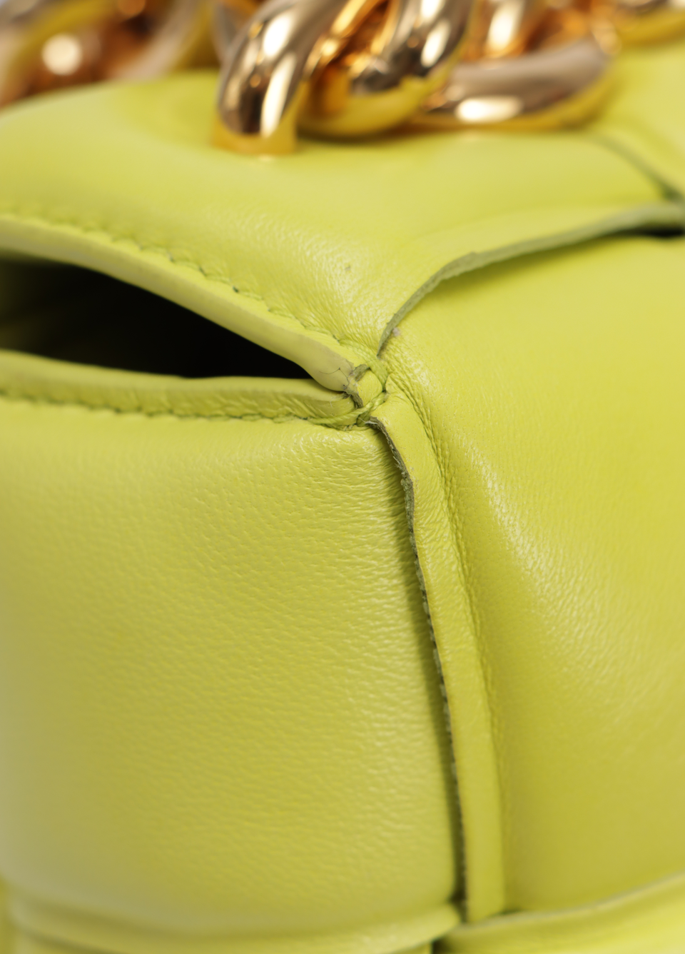 Descrição do Material: Couro lambskin verde com acabamento Intreccio