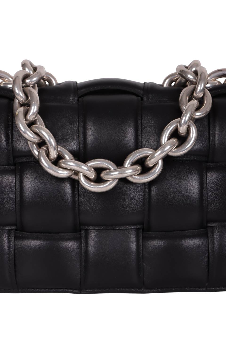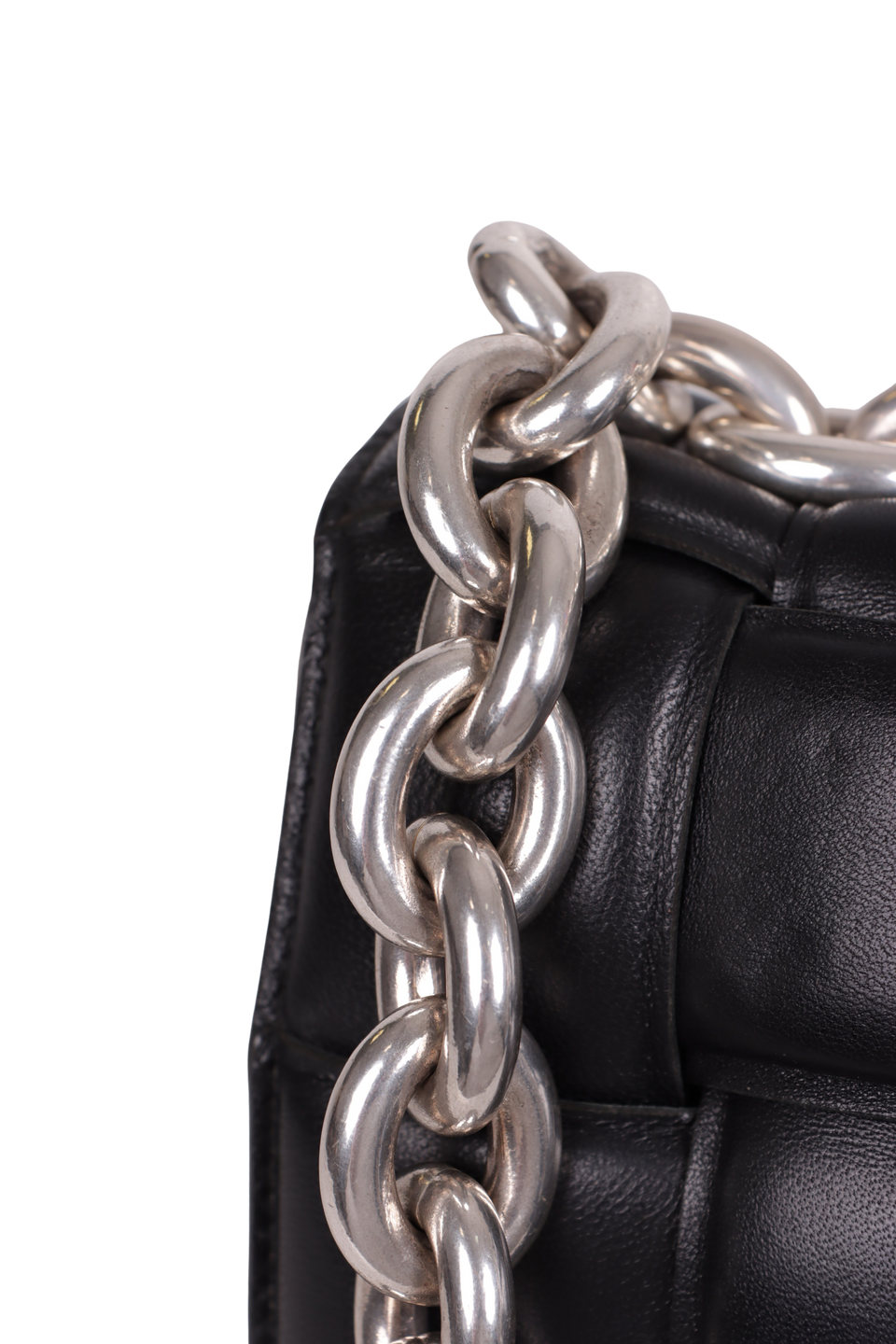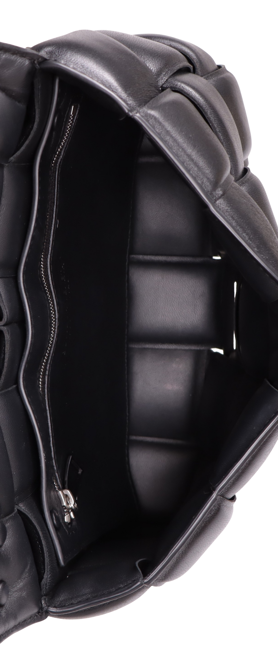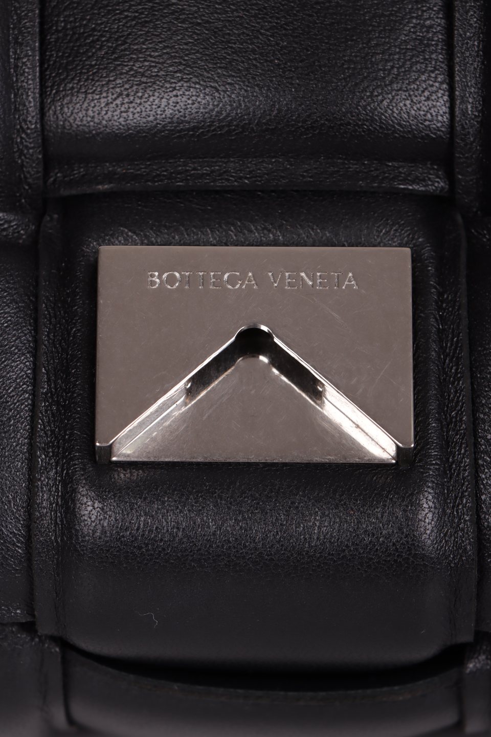 Descrição do Material: Couro calfskin preto com acabamento Intreccio