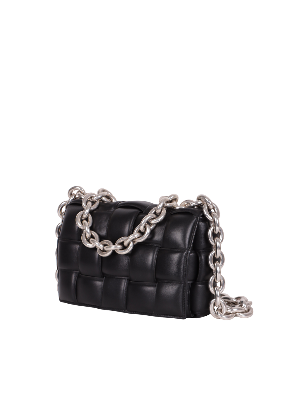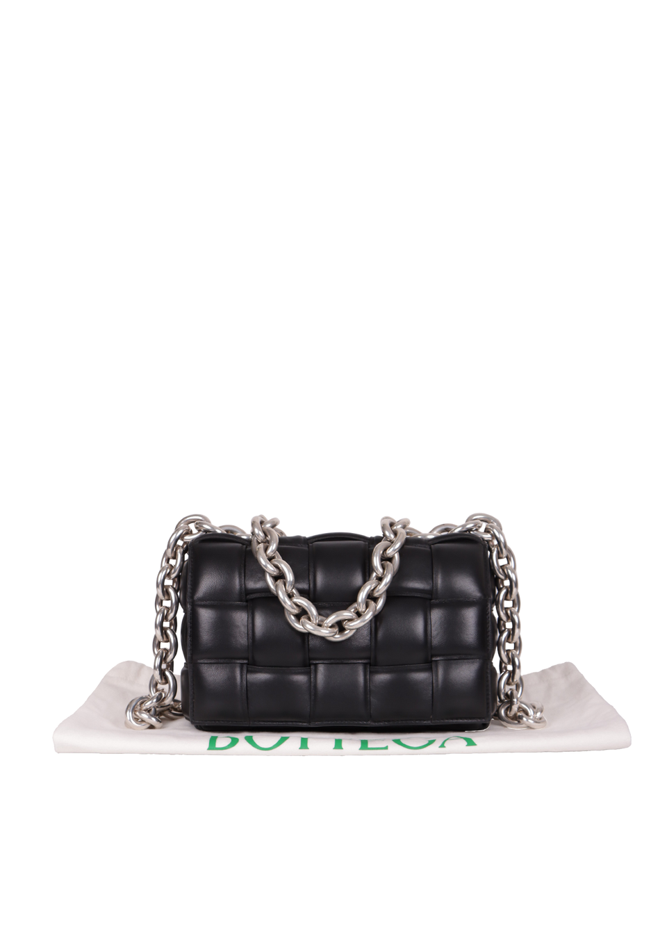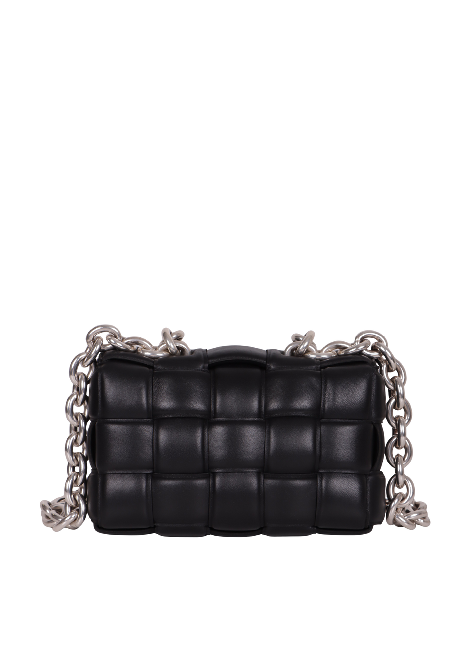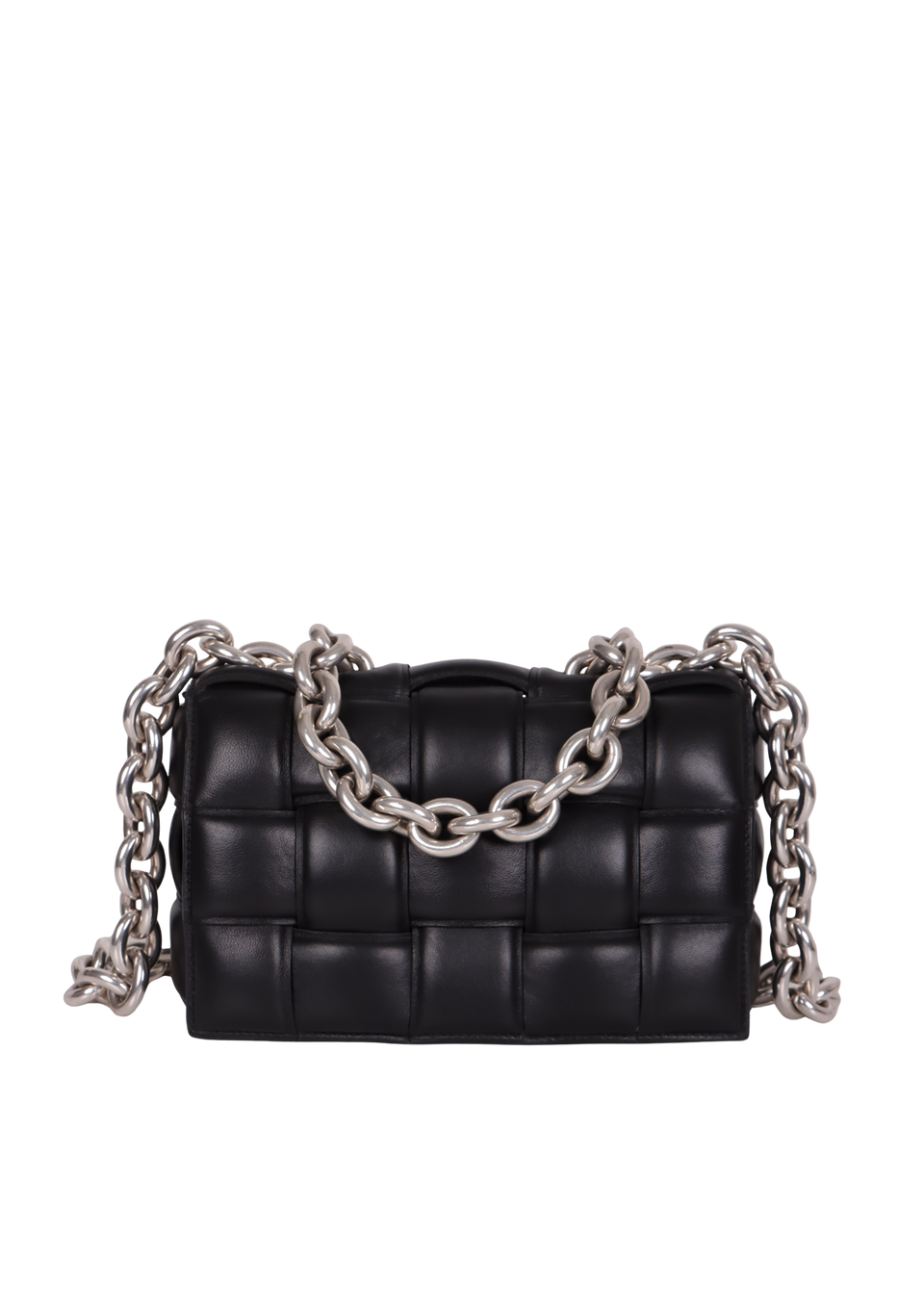 Descrição do Material: Couro calfskin preto com acabamento Intreccio