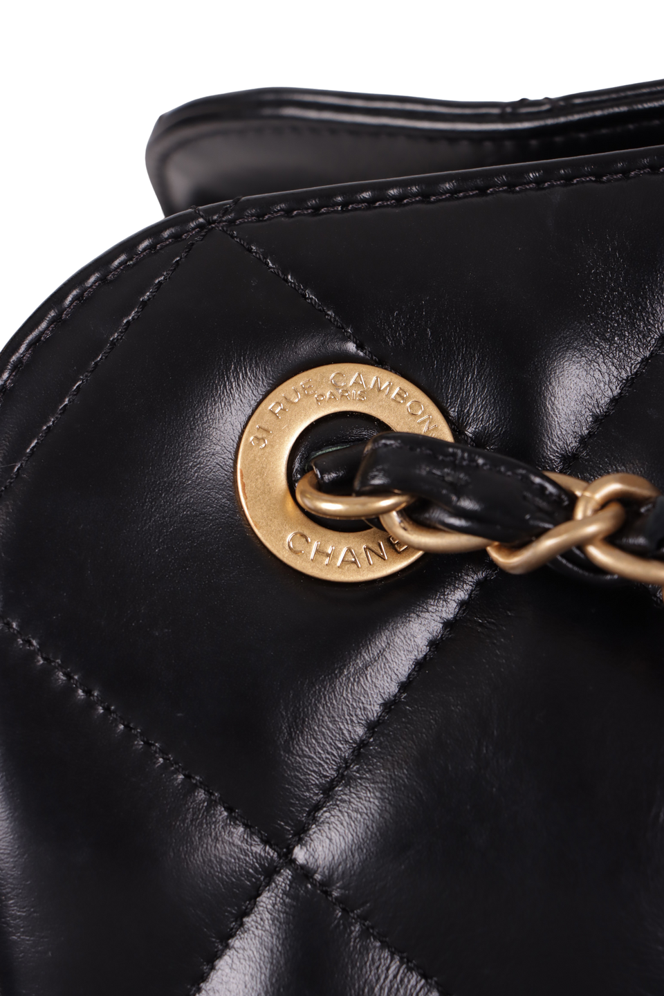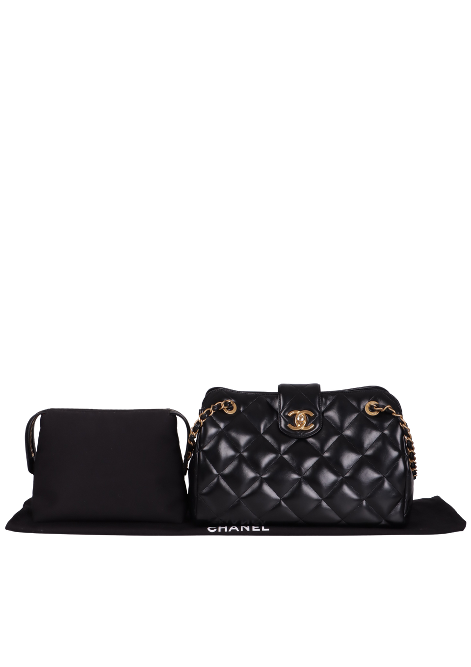 Descrição do Material: Couro calfskin preto com acabamento matelassê