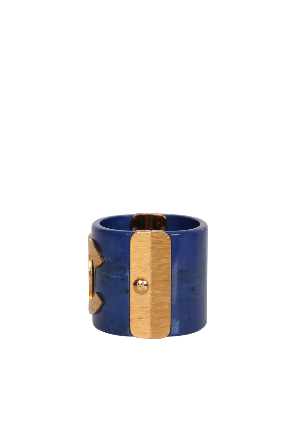 Descrição do Material: Resina azul com detalhes em metal dourado