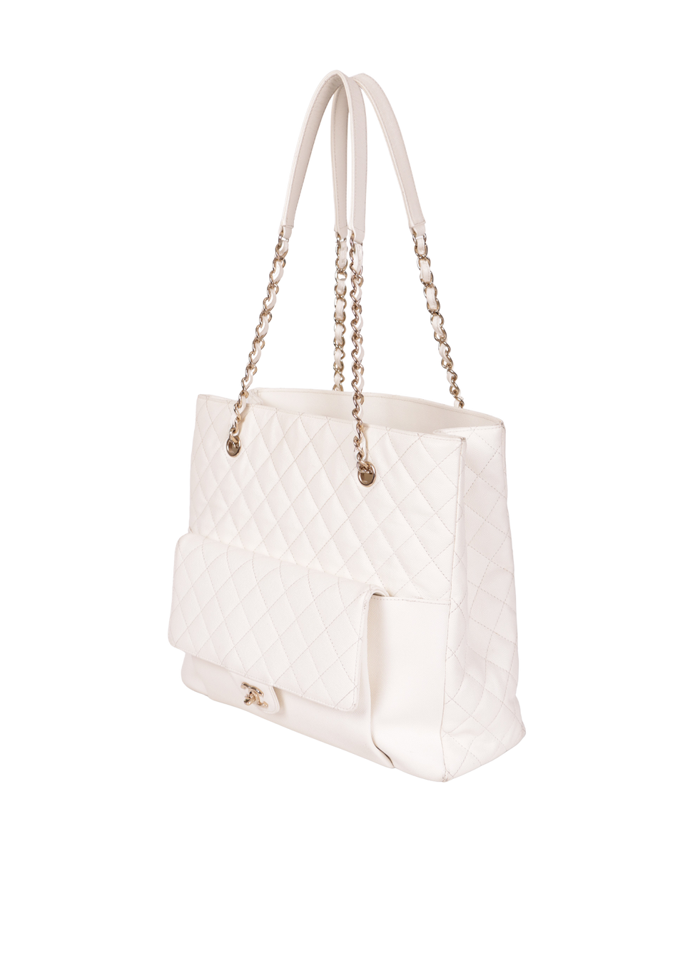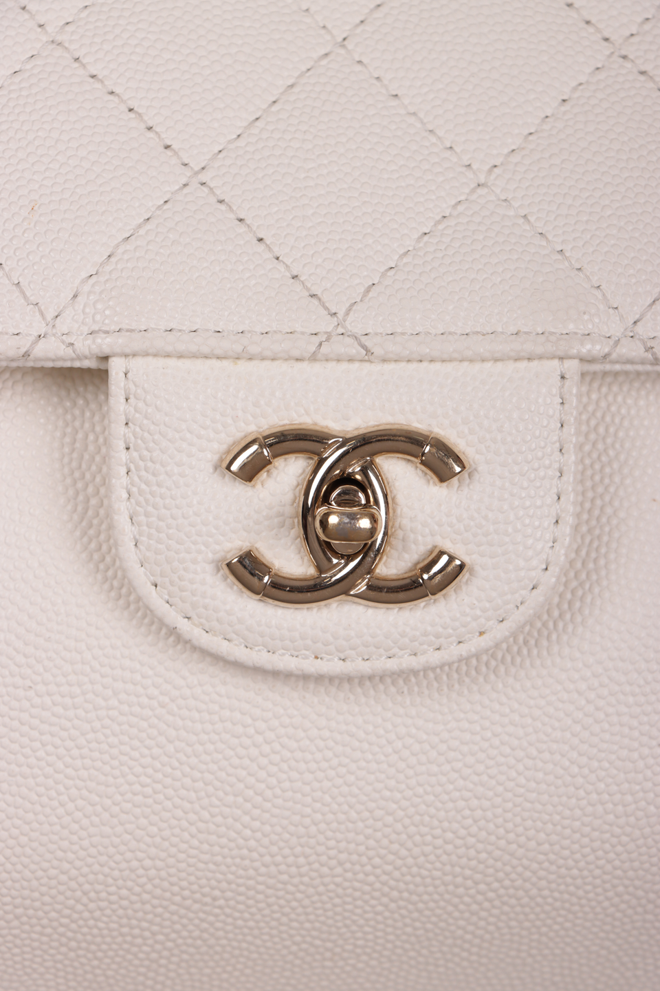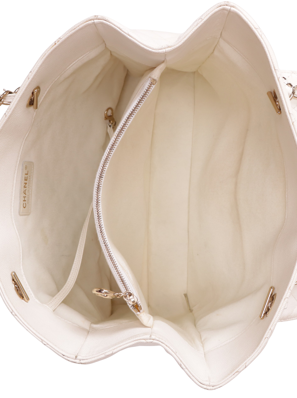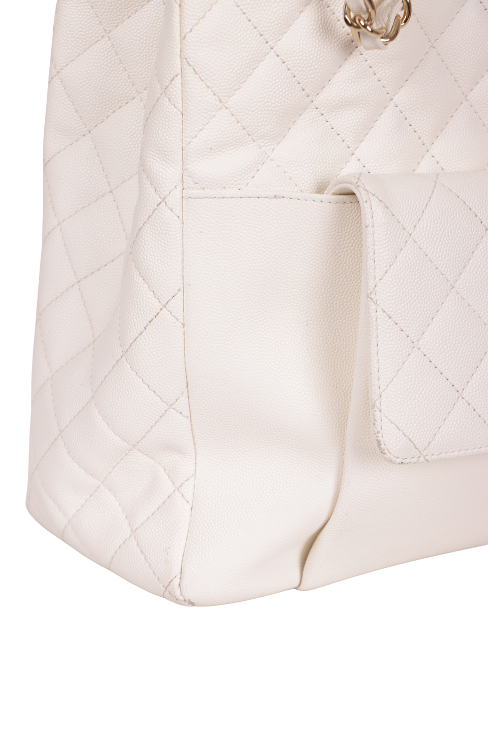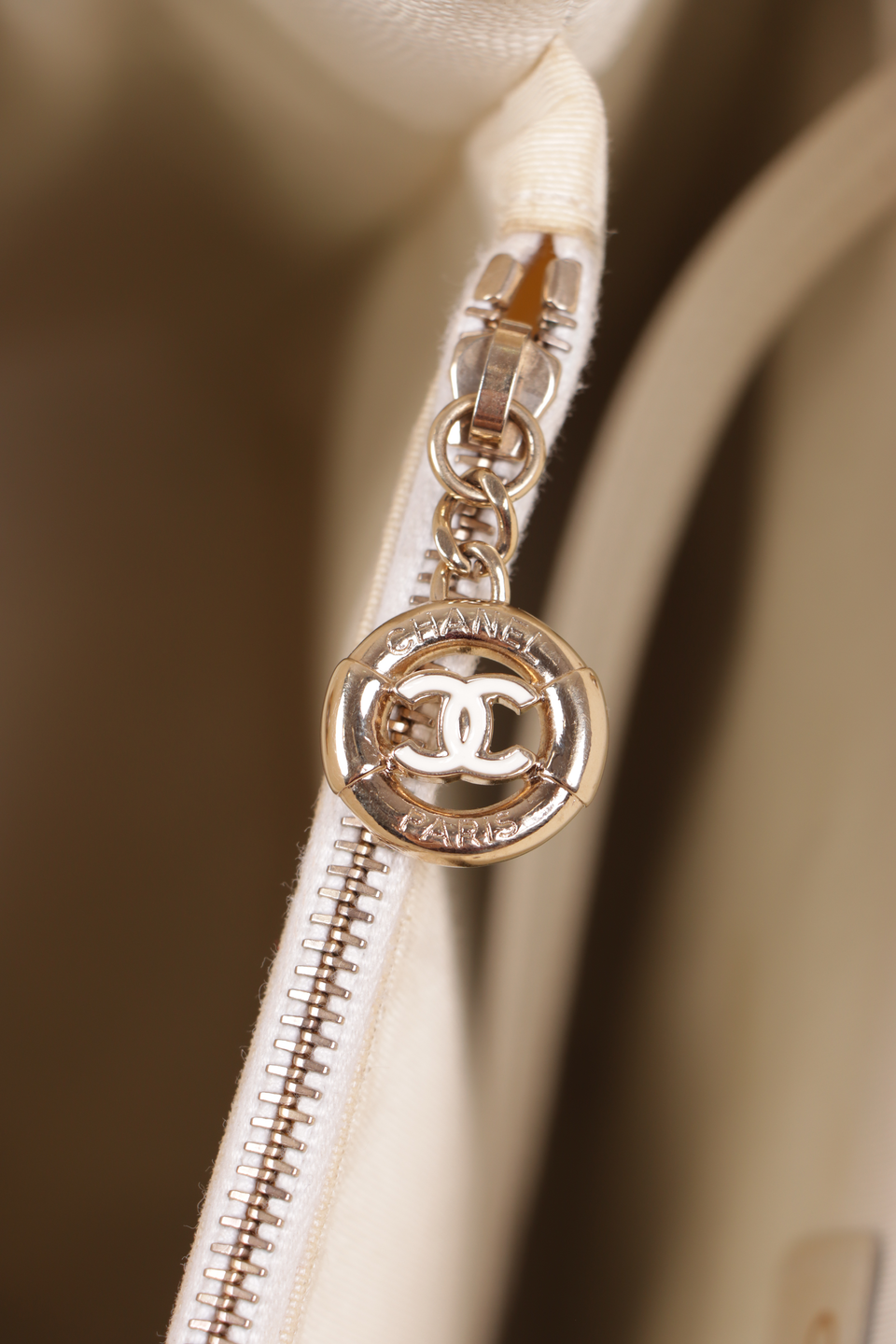 Descrição do Material: Couro calfskin off-white com acabamento matelassê e Caviar